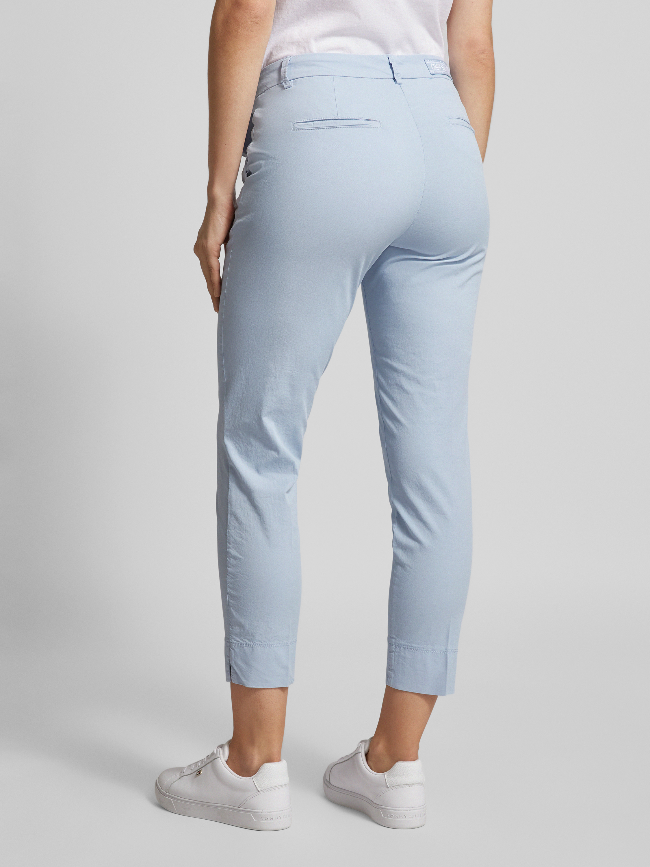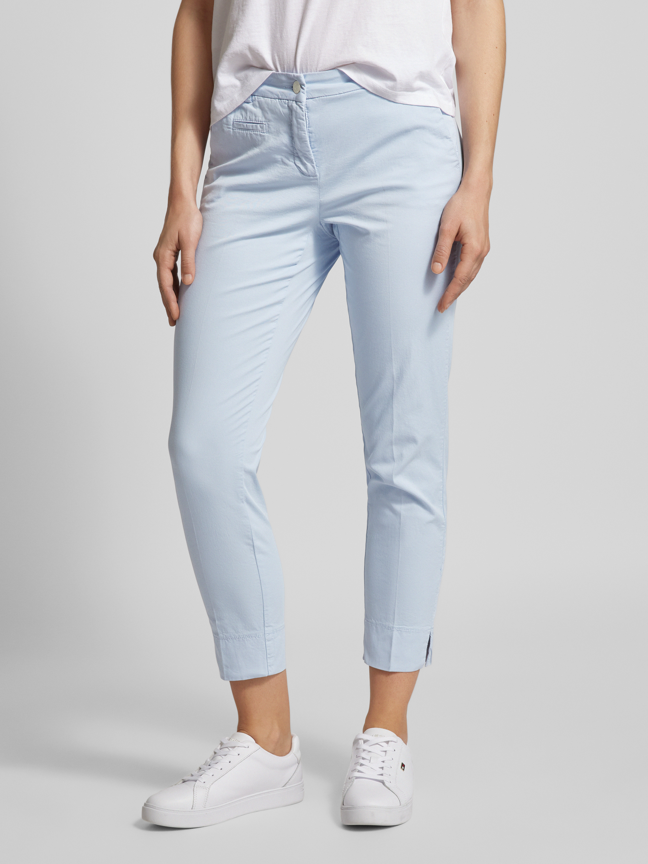 Spodnie materiałowe o kroju regular fit z kieszenią z wypustką model ‘Stella’ - błękitny