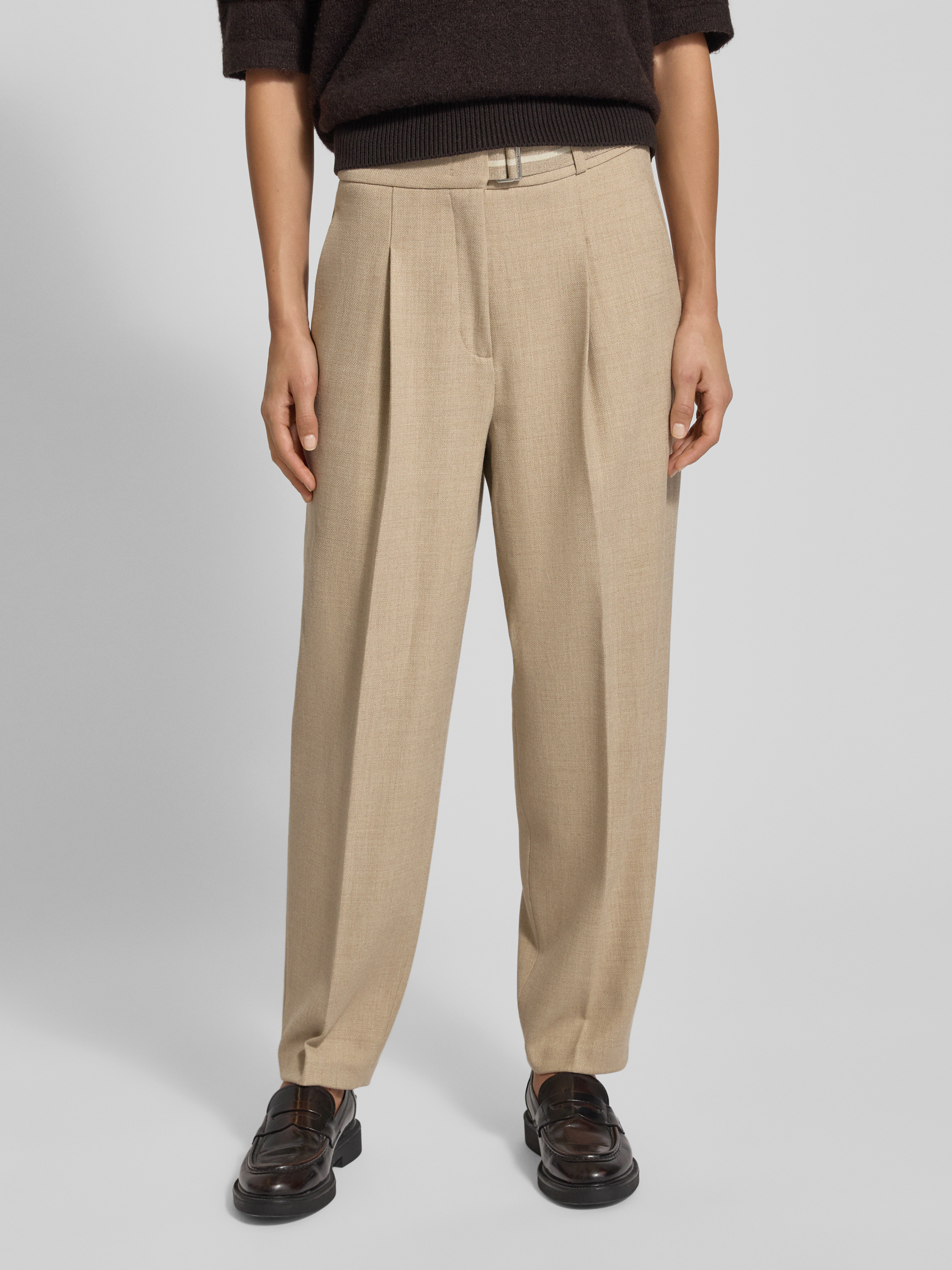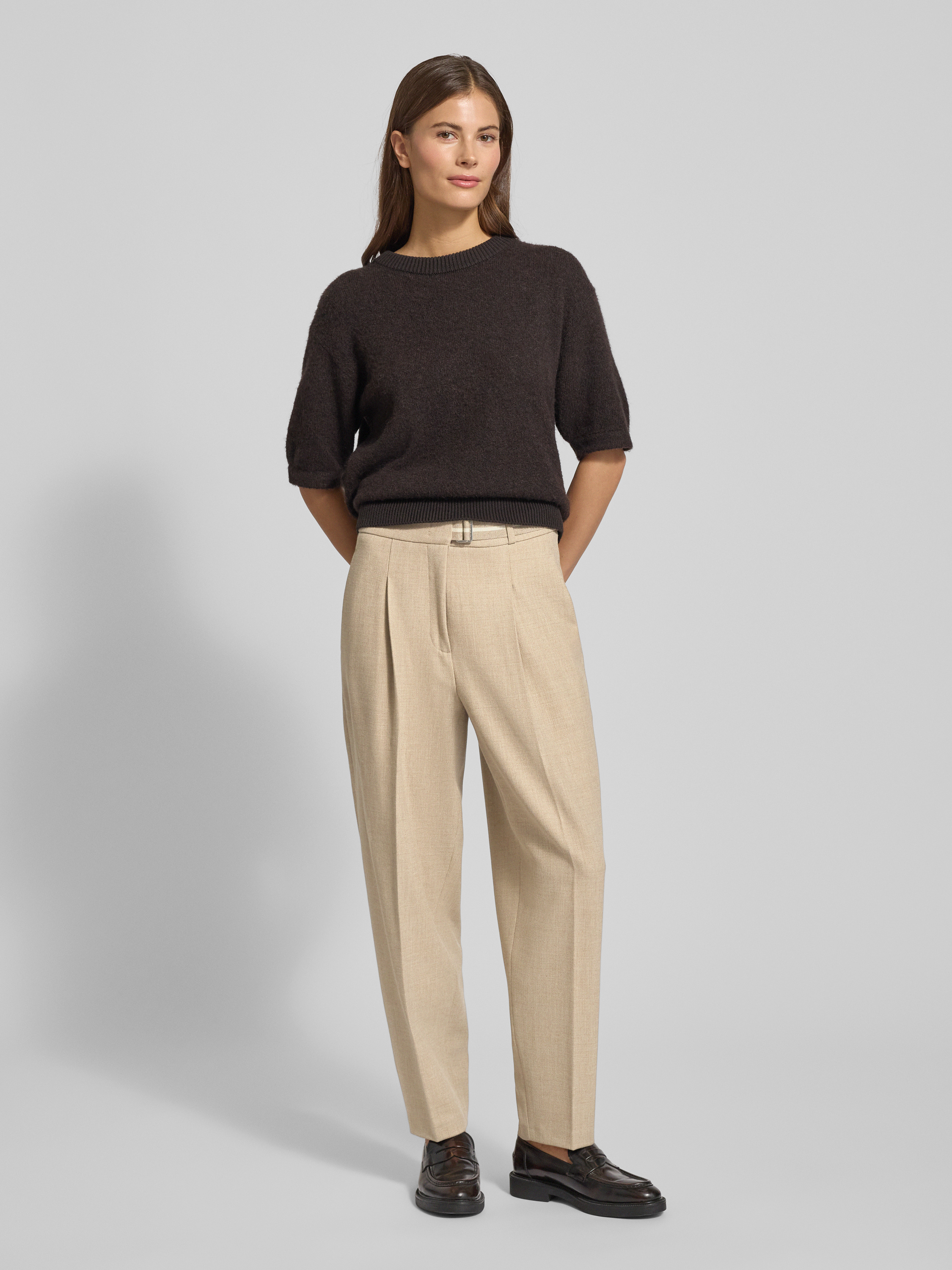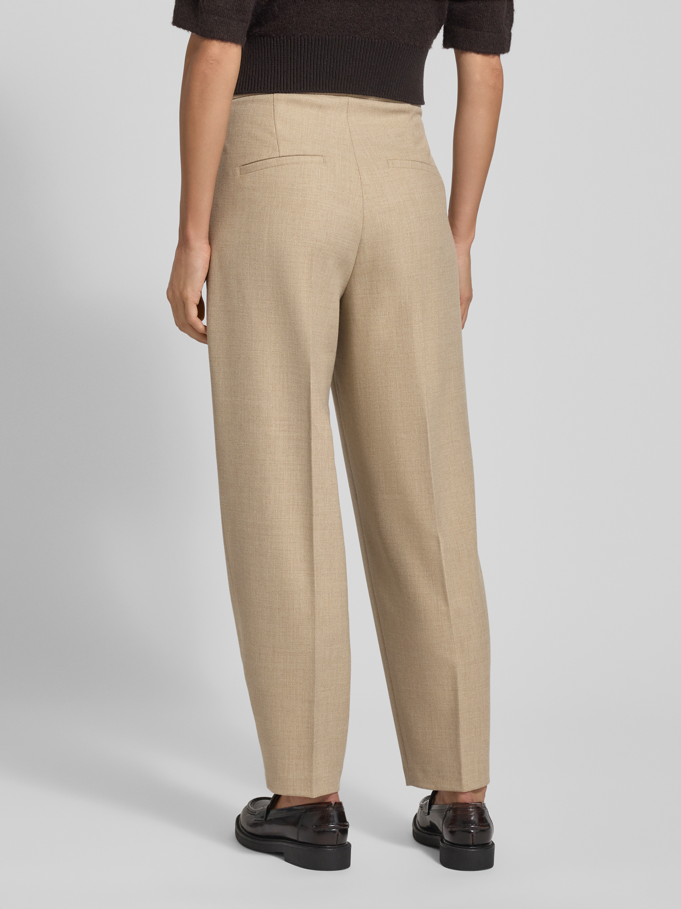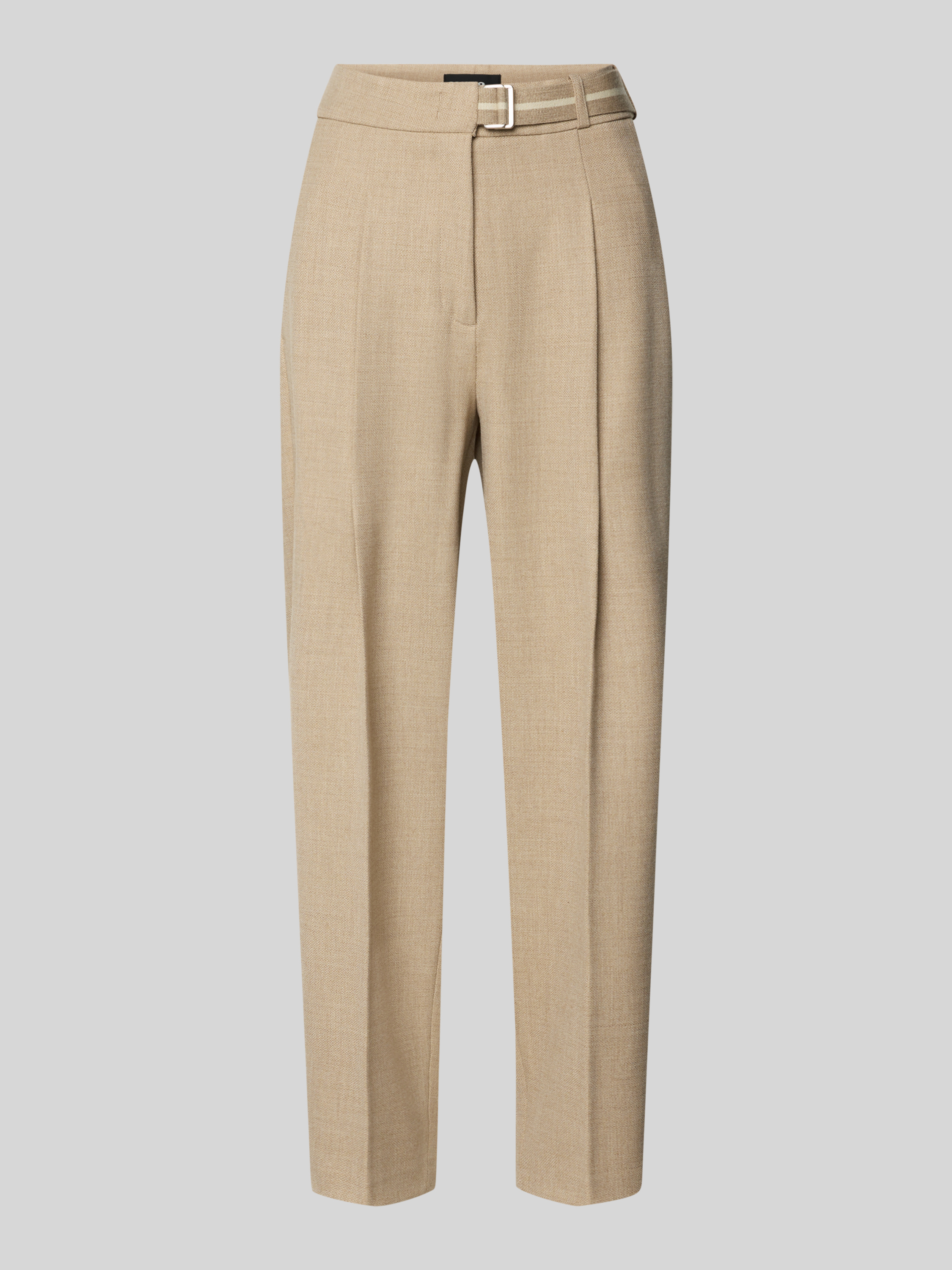 Spodnie materiałowe o szerokim kroju z dodatkiem wiskozy model ‘Elaine’ - beżowy melanż