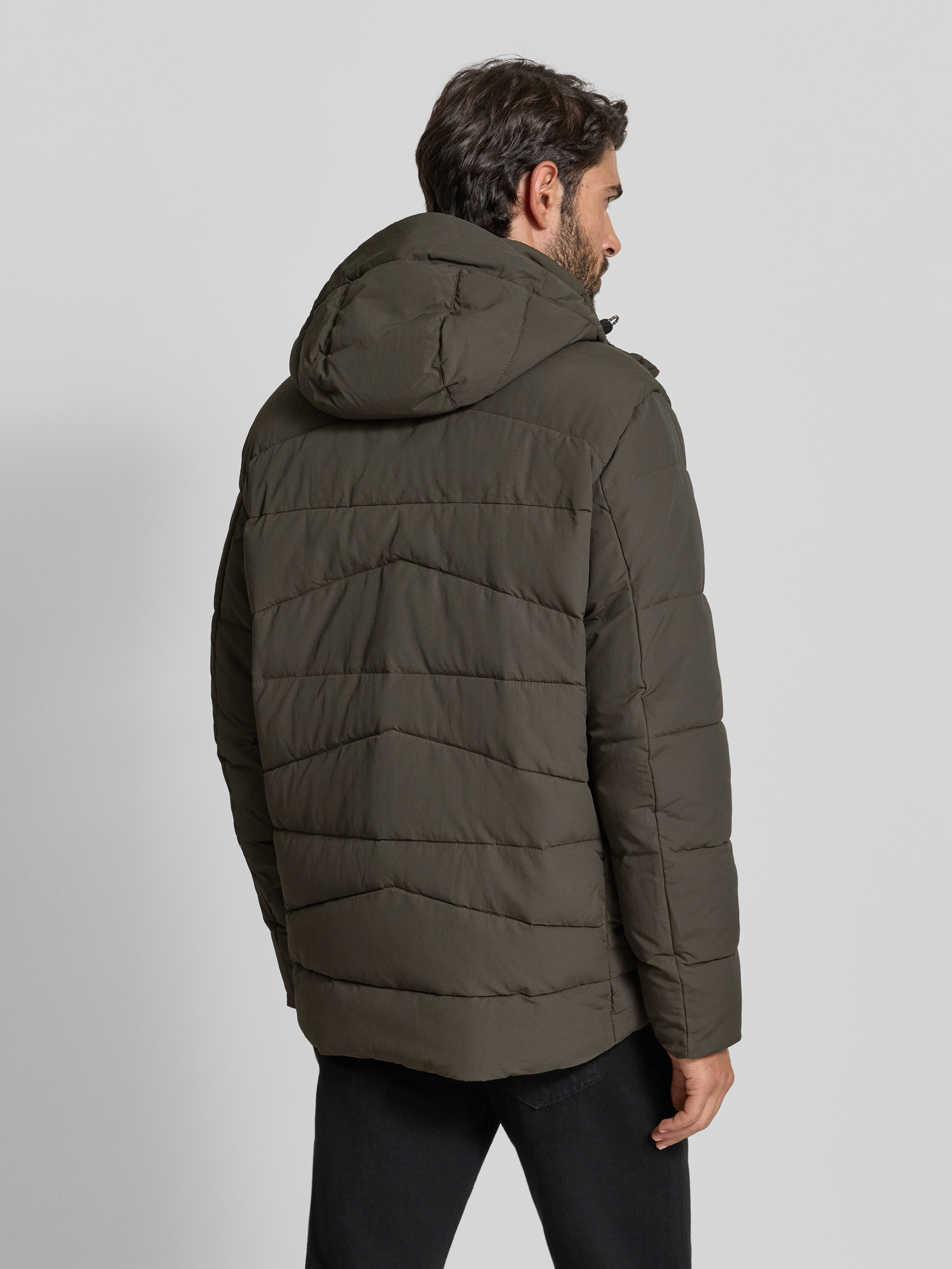 Kurtka pikowana z kapturem - ciemnobrązowy