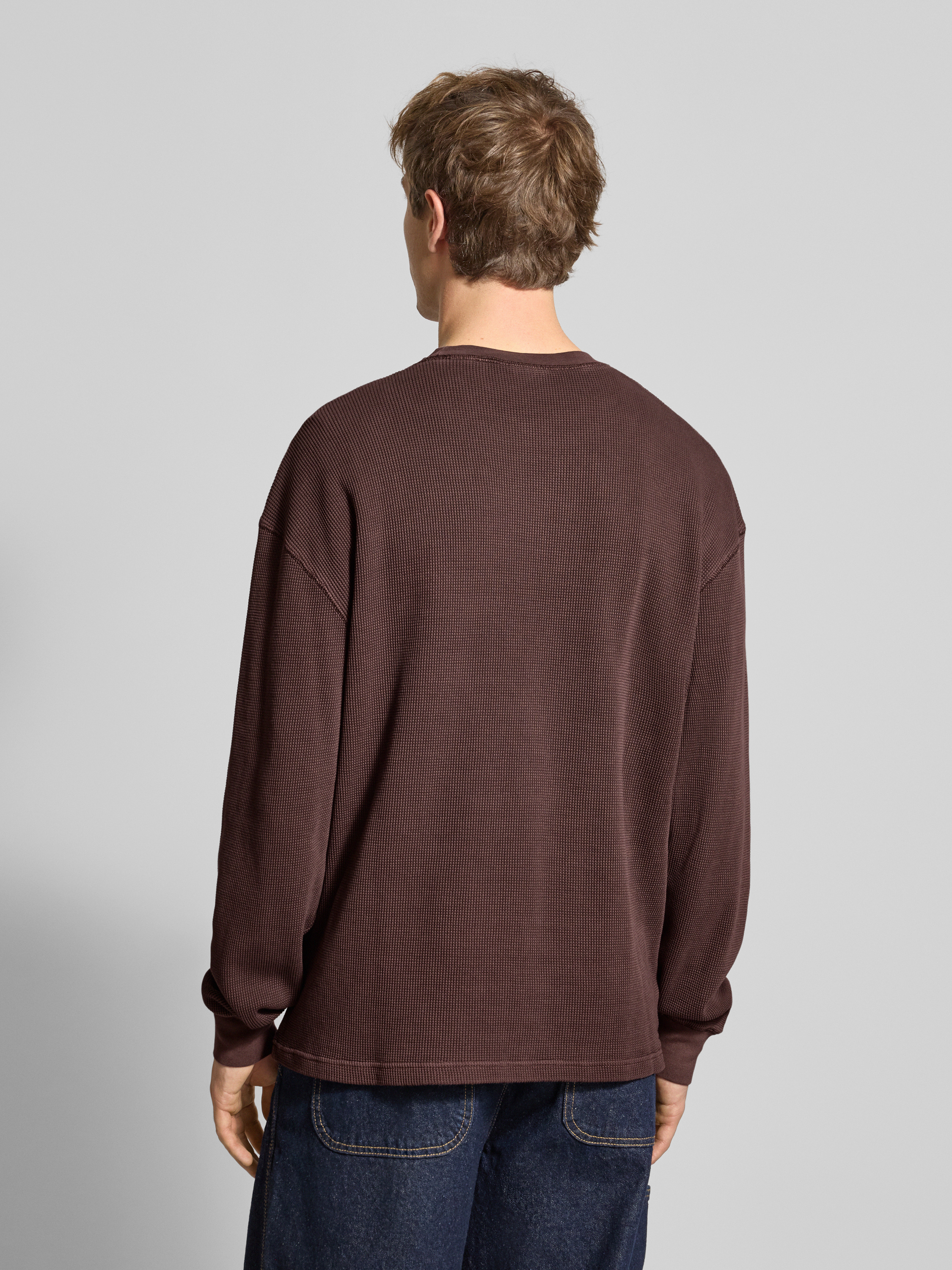 Bluzka z długim rękawem, fakturowanym wzorem i okrągłym dekoltem - ciemnoczerwony