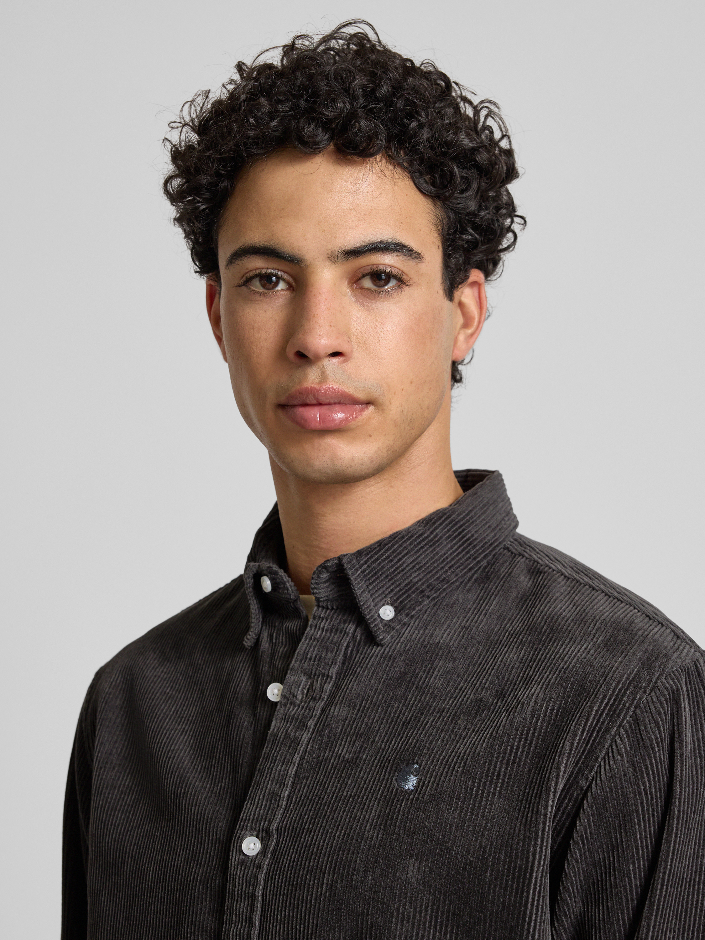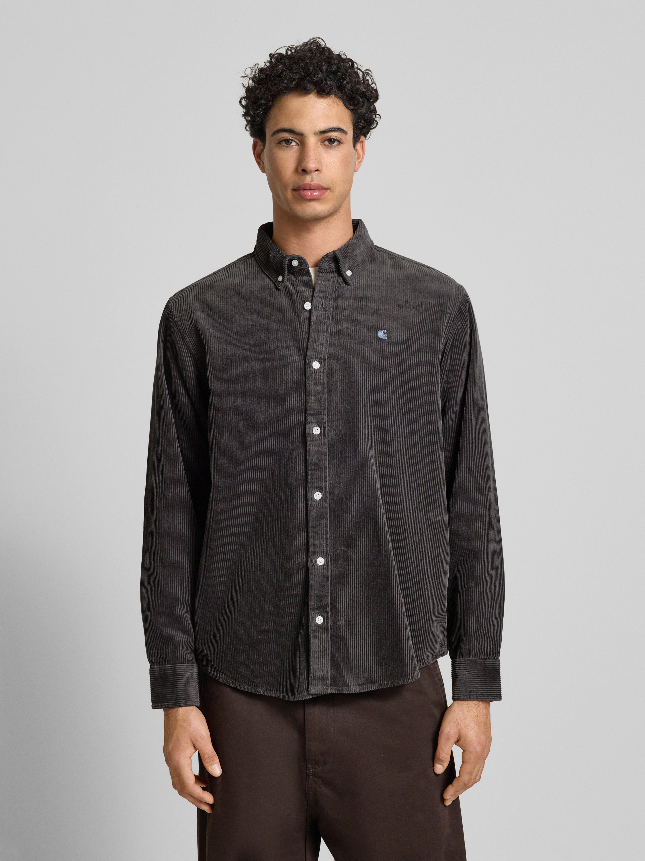 Koszula casualowa o kroju regular fit z imitacji sztruksu model ‘Madison’ - antracytowy