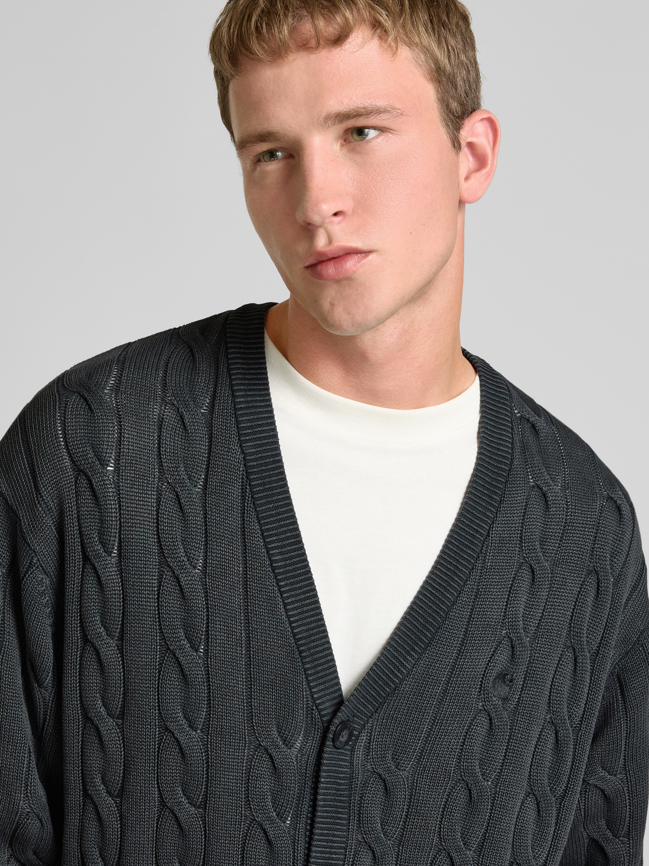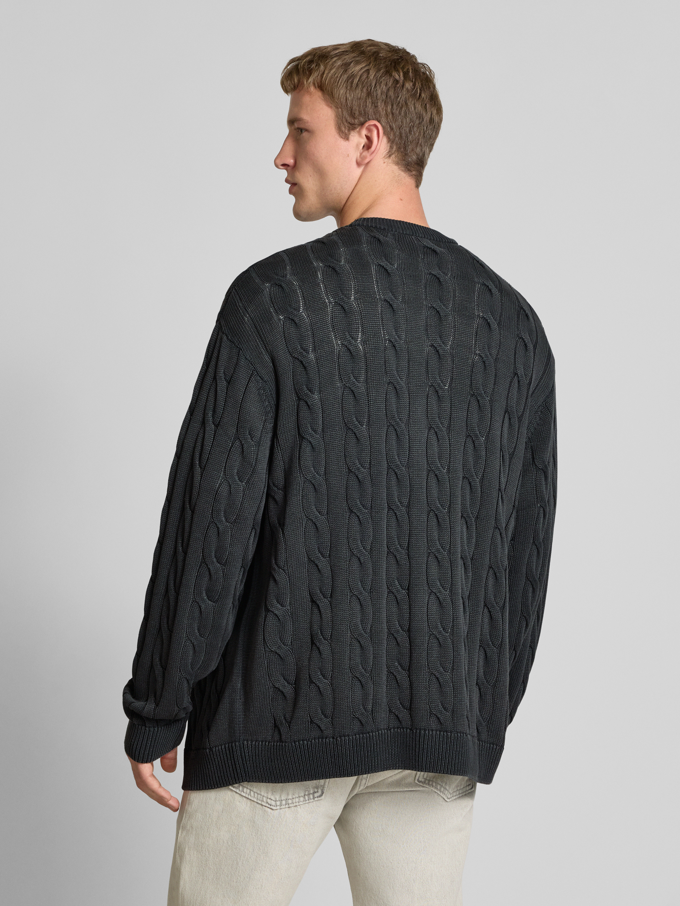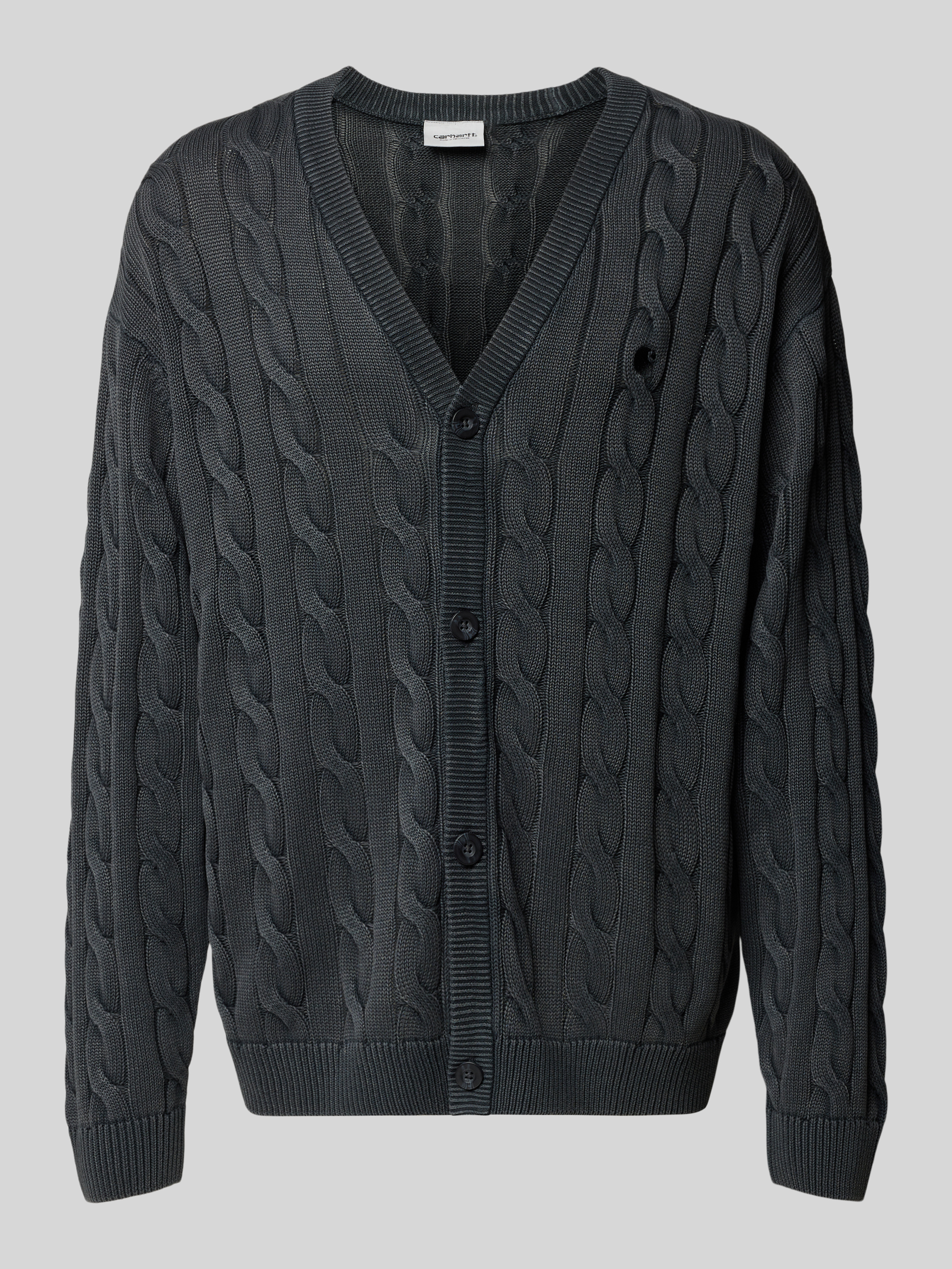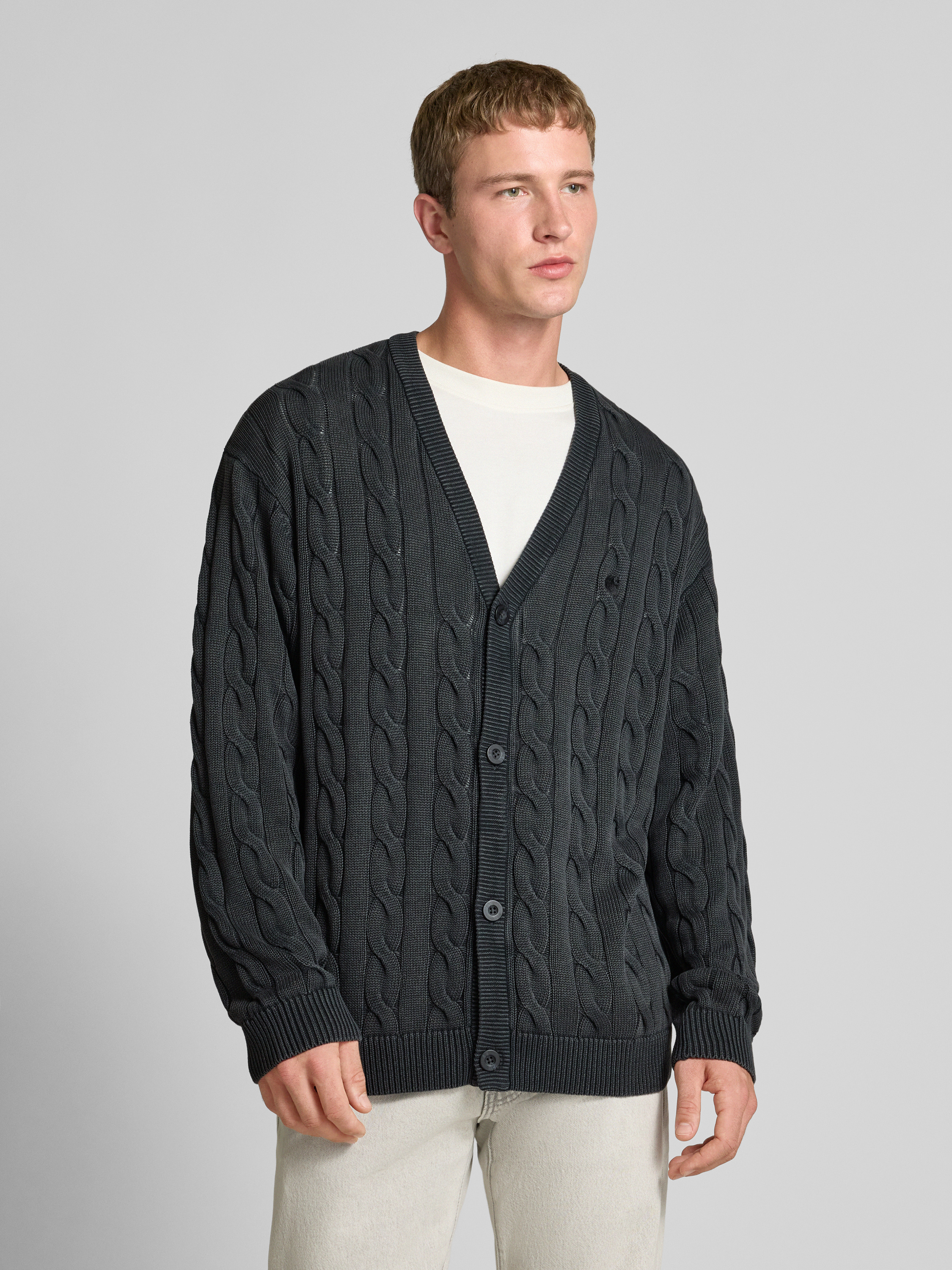 Kurtka z dzianiny ze ściegiem warkoczowym i dekoltem w serek - czarny