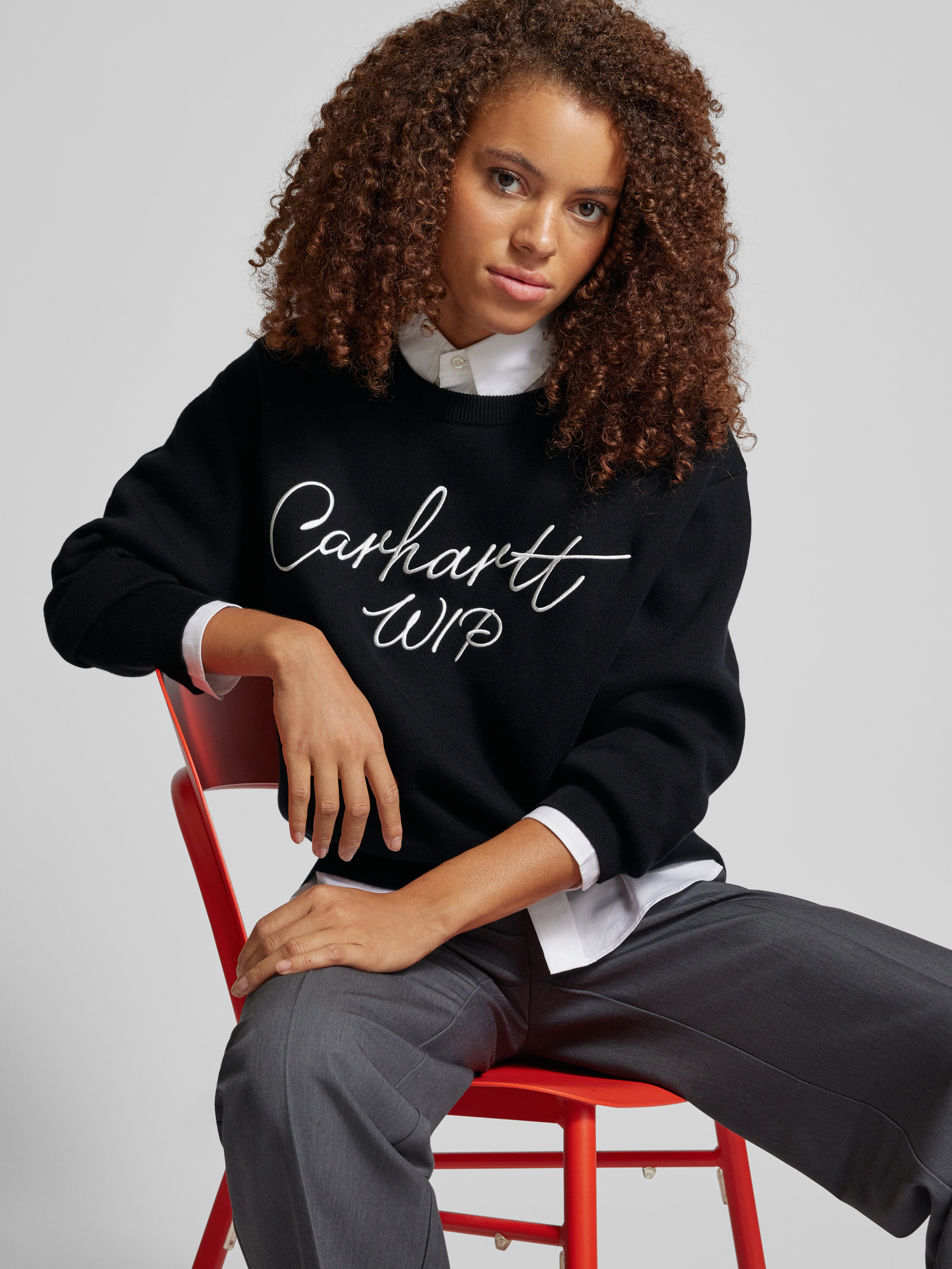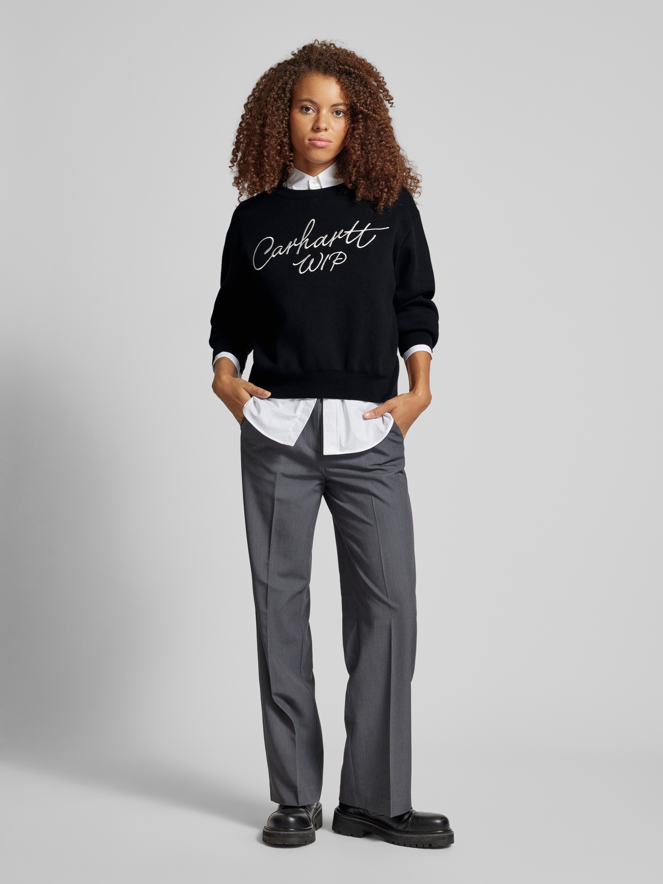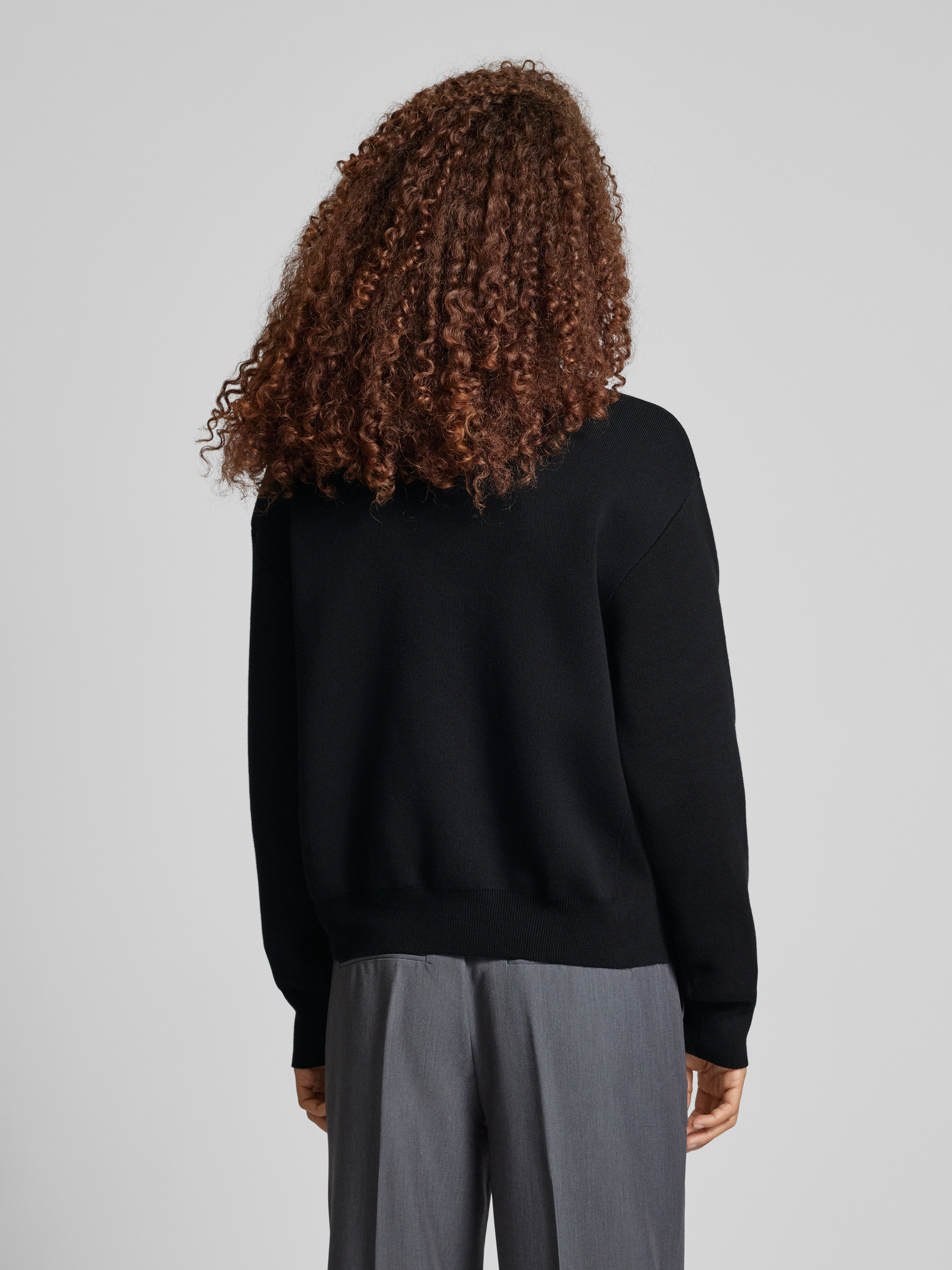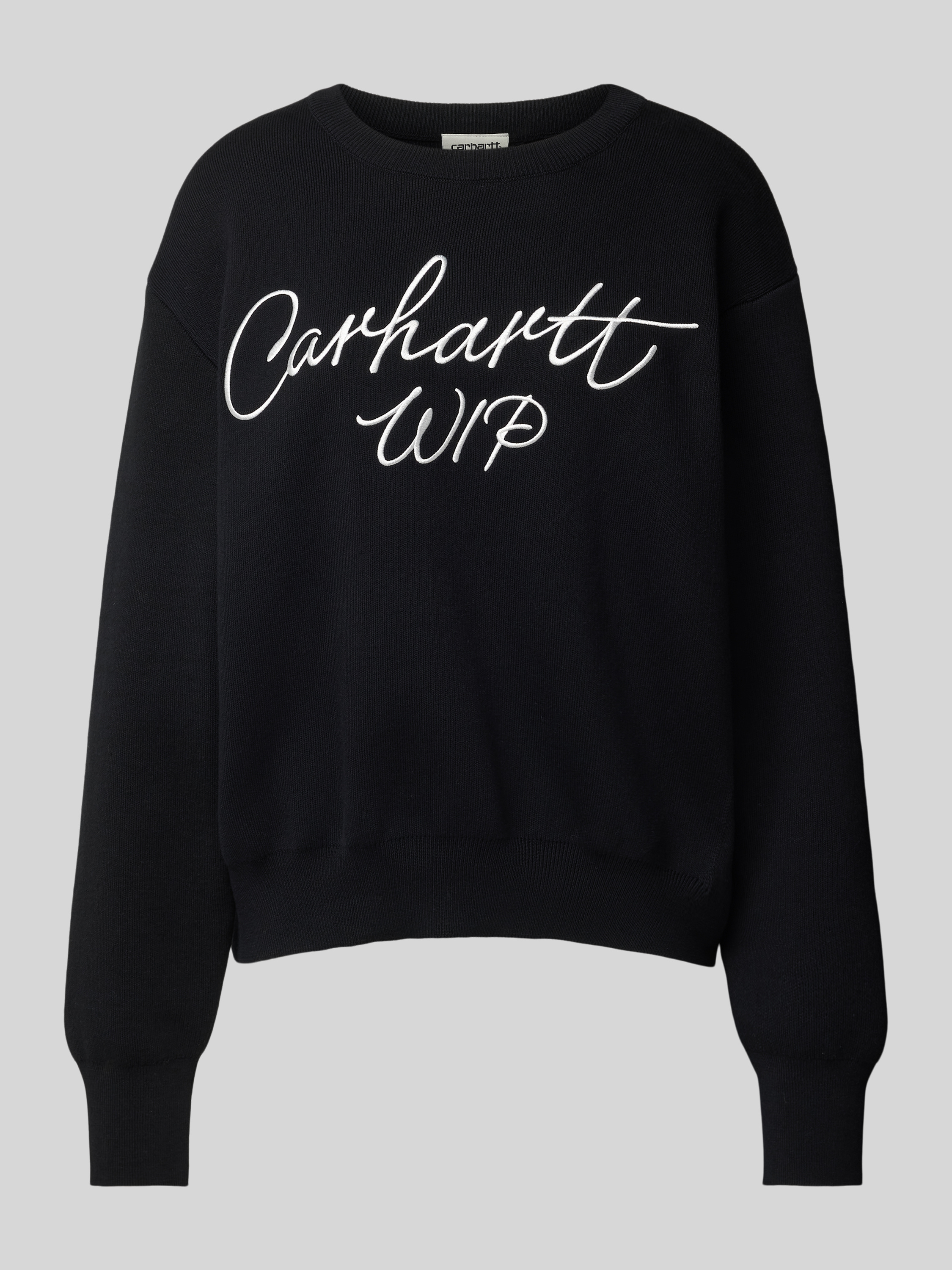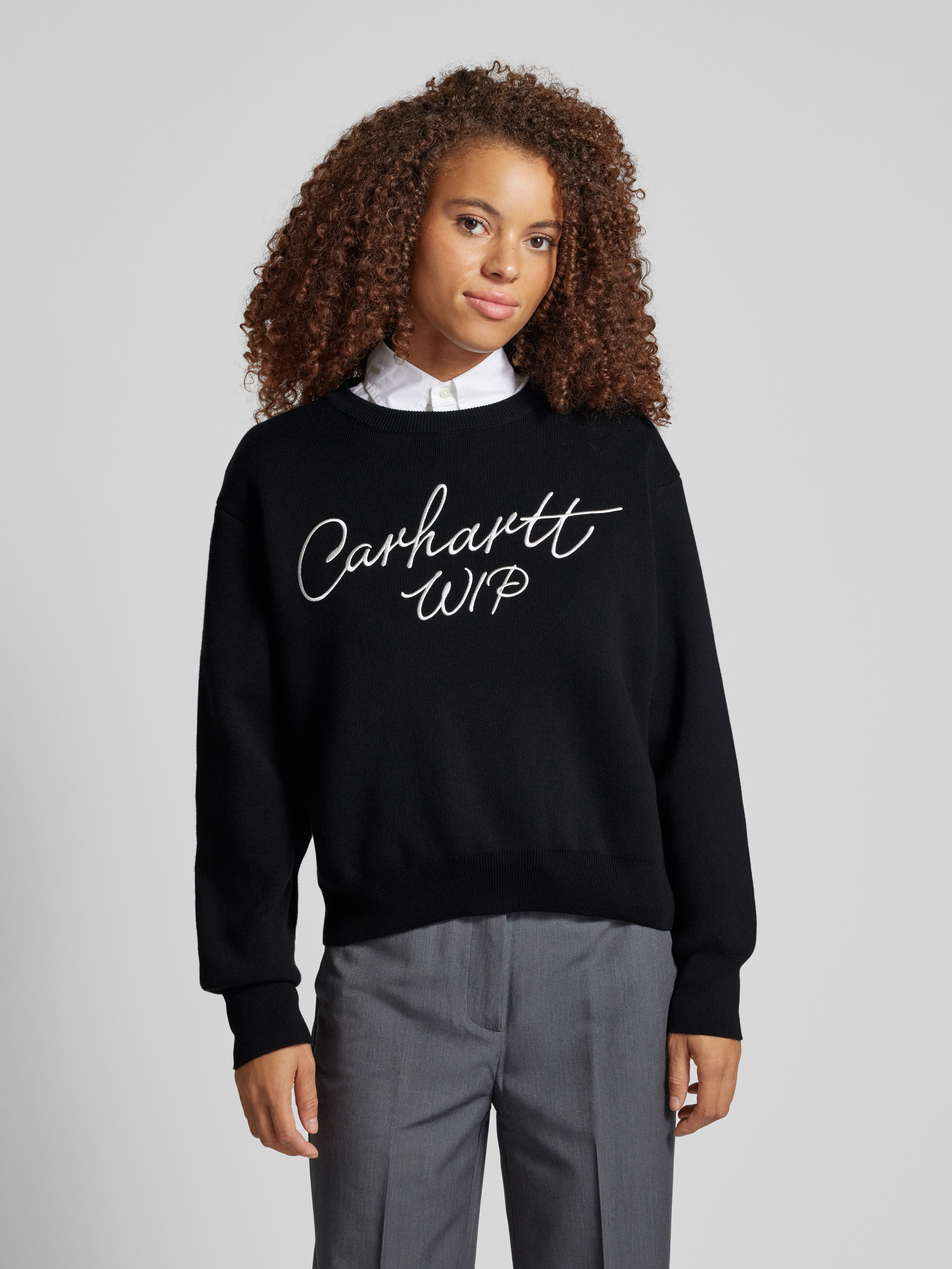 Sweter z dzianiny z wyhaftowanym logo - czarny