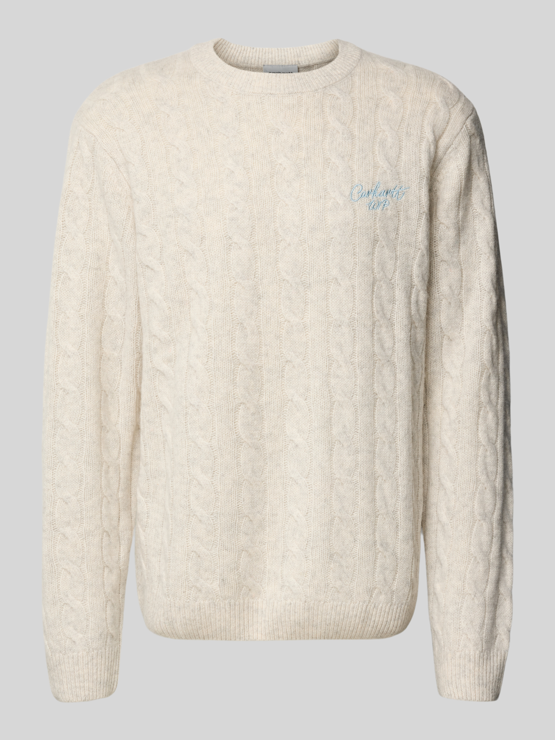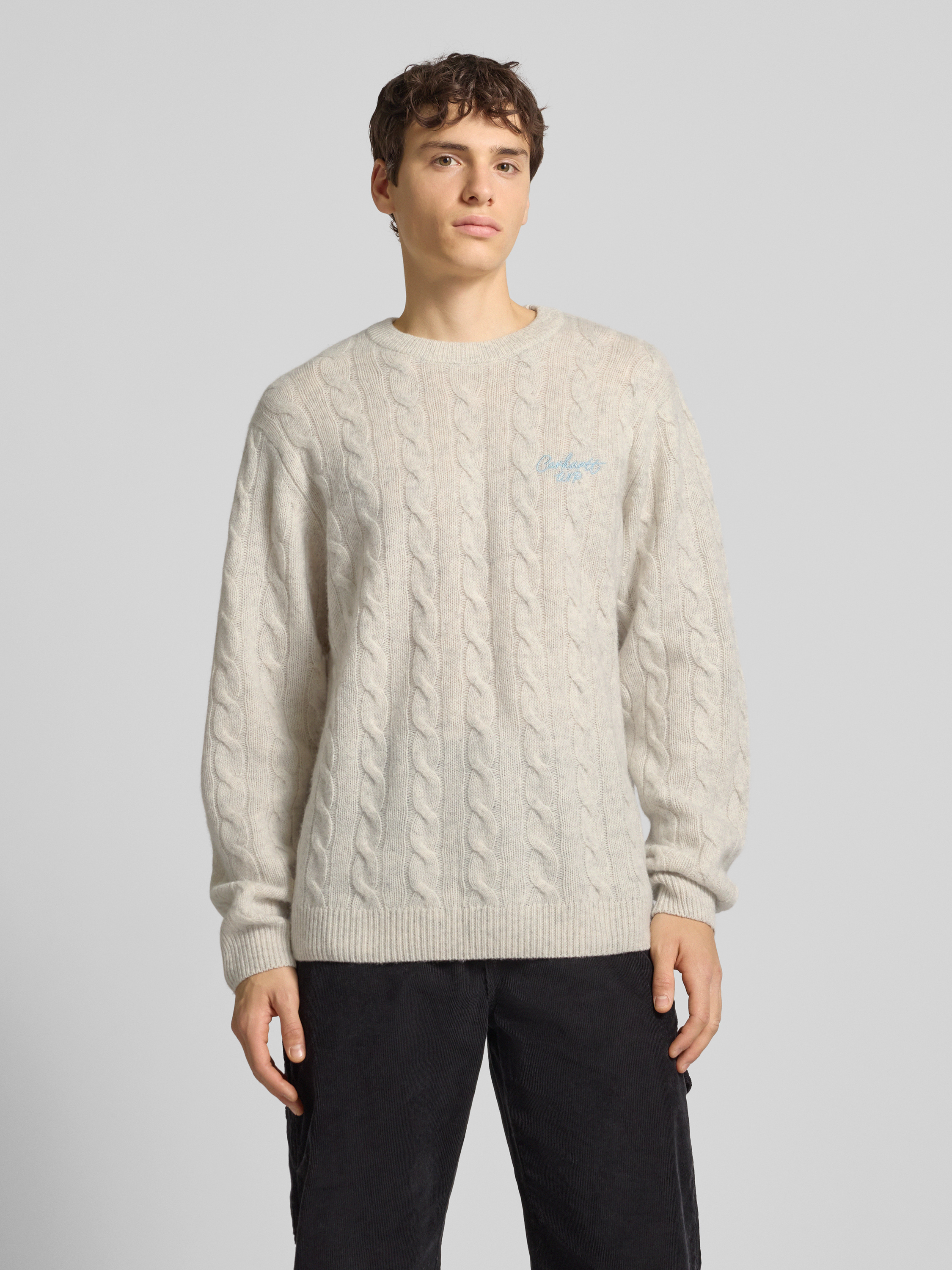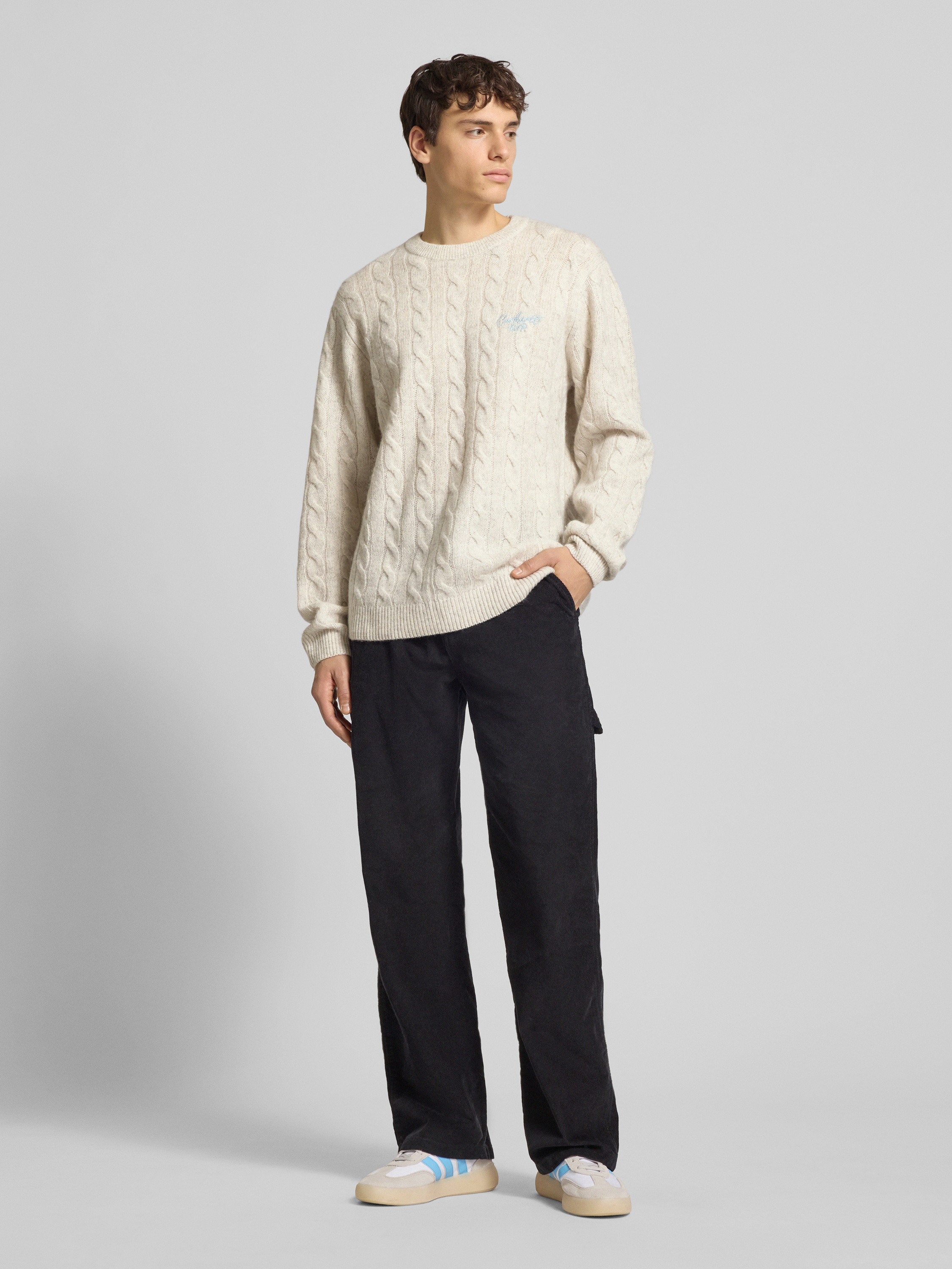Sweter z dzianiny z wyhaftowanym logo - złamany biały