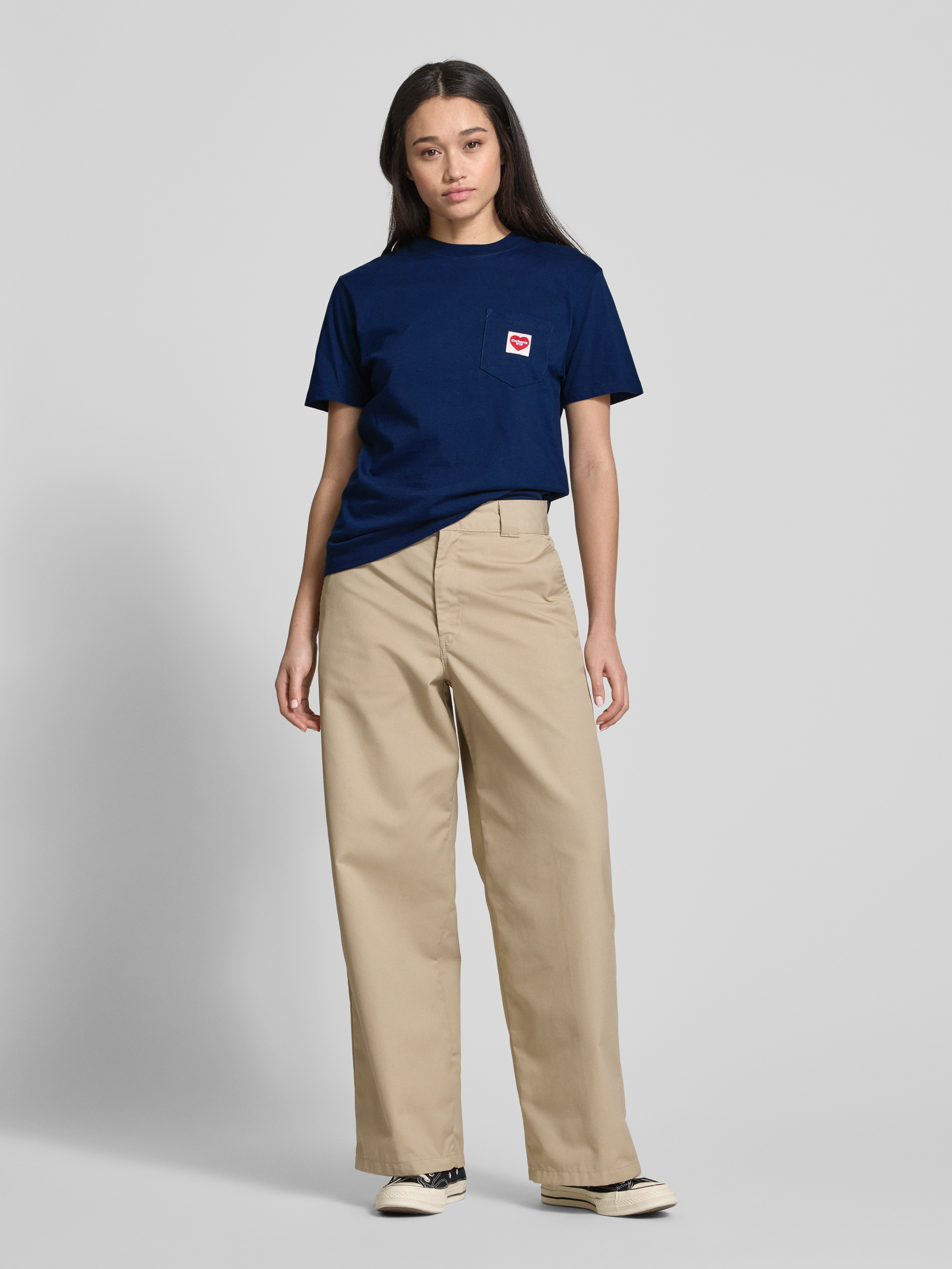 Carhartt Work In ProgressT-shirt z czystej bawełny ekologicznej z naszywką z logo - ciemnoniebieski