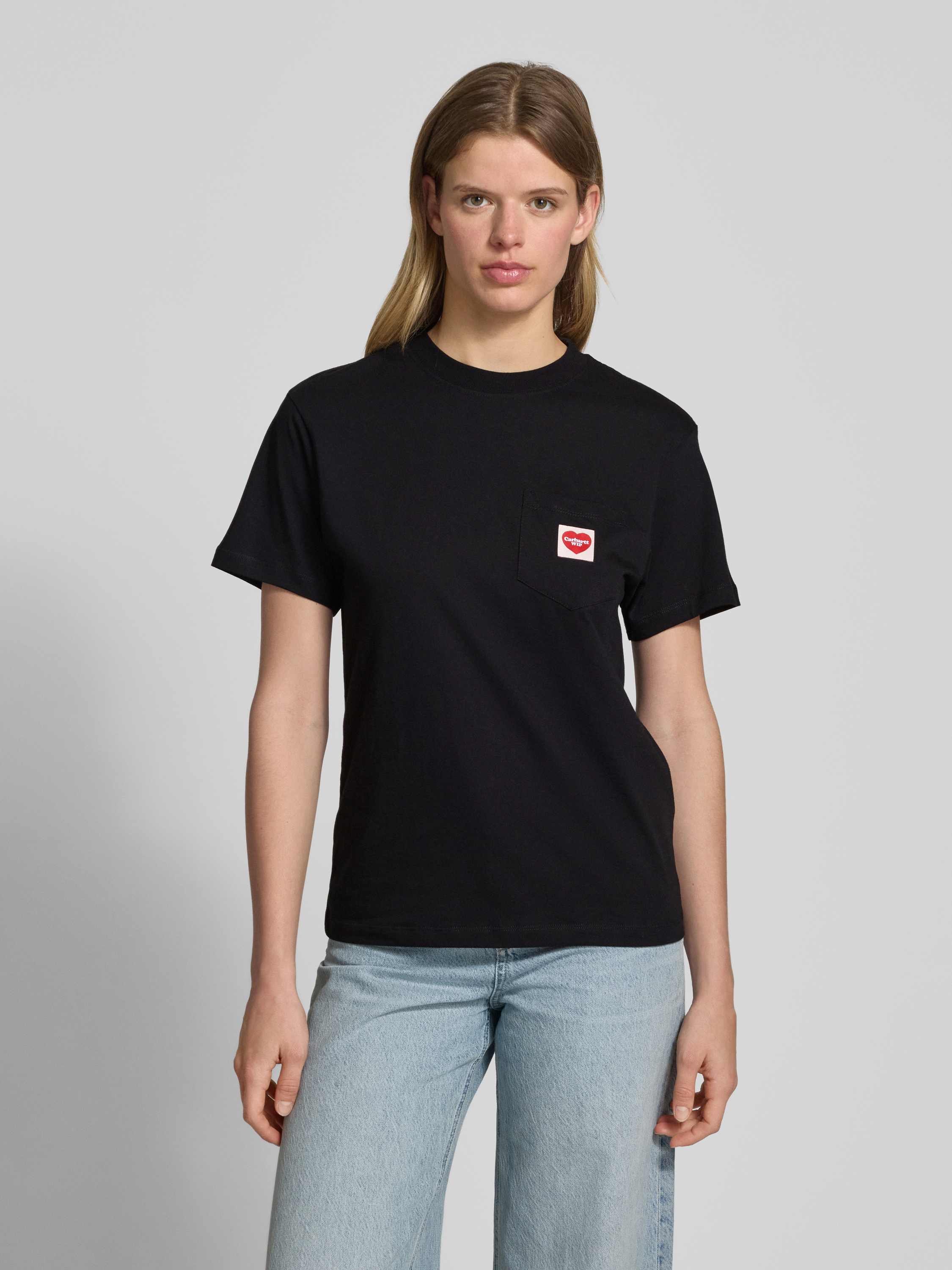 T-shirt z czystej bawełny ekologicznej z naszywką z logo - czarny