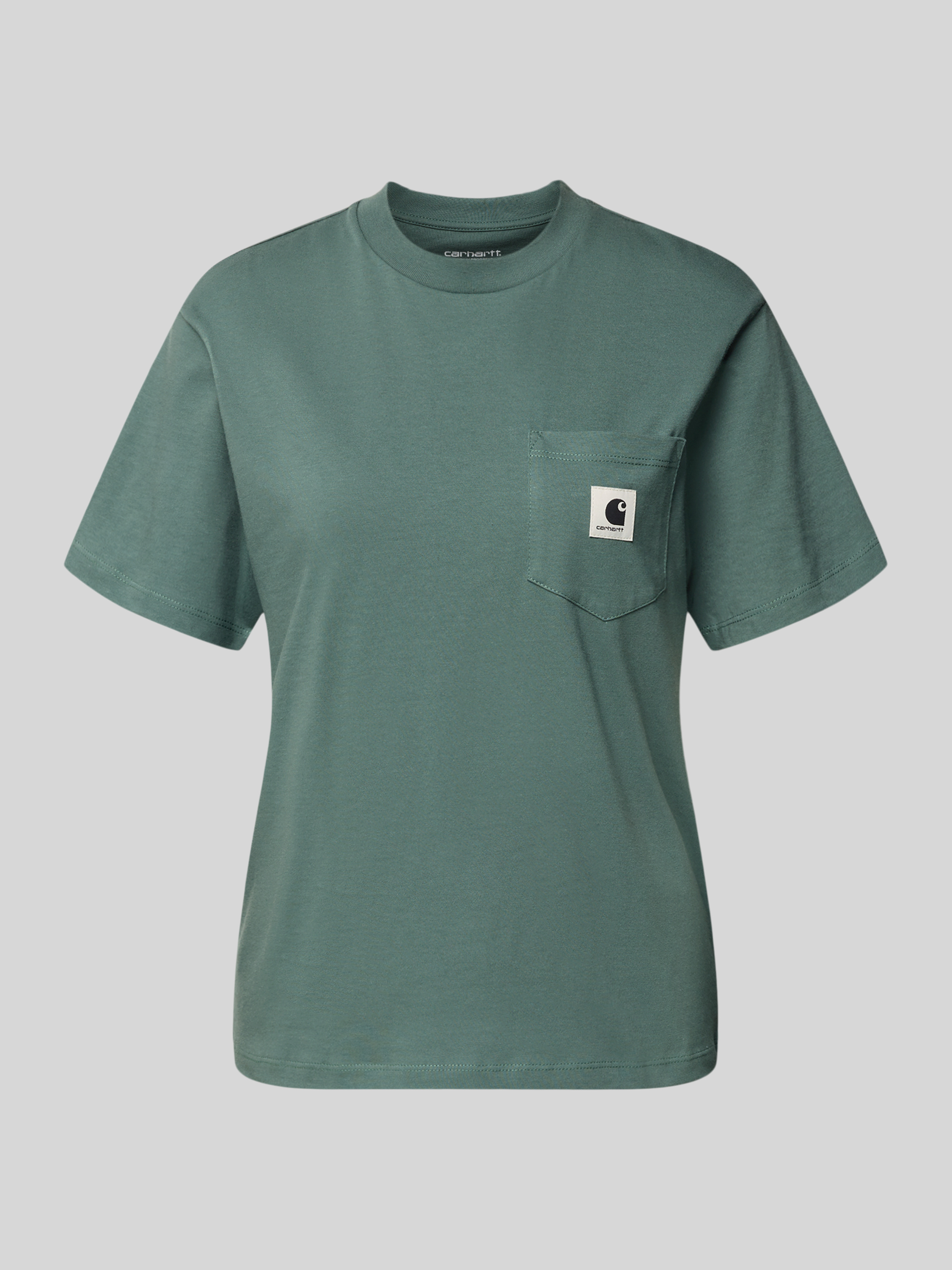 T-shirt z kieszenią na piersi i detalem z logo - limonkowy