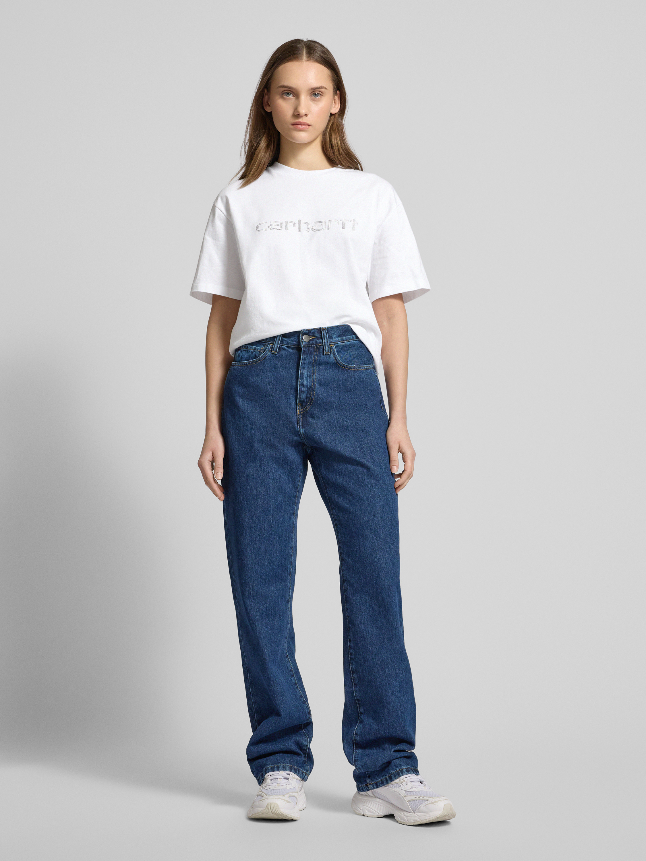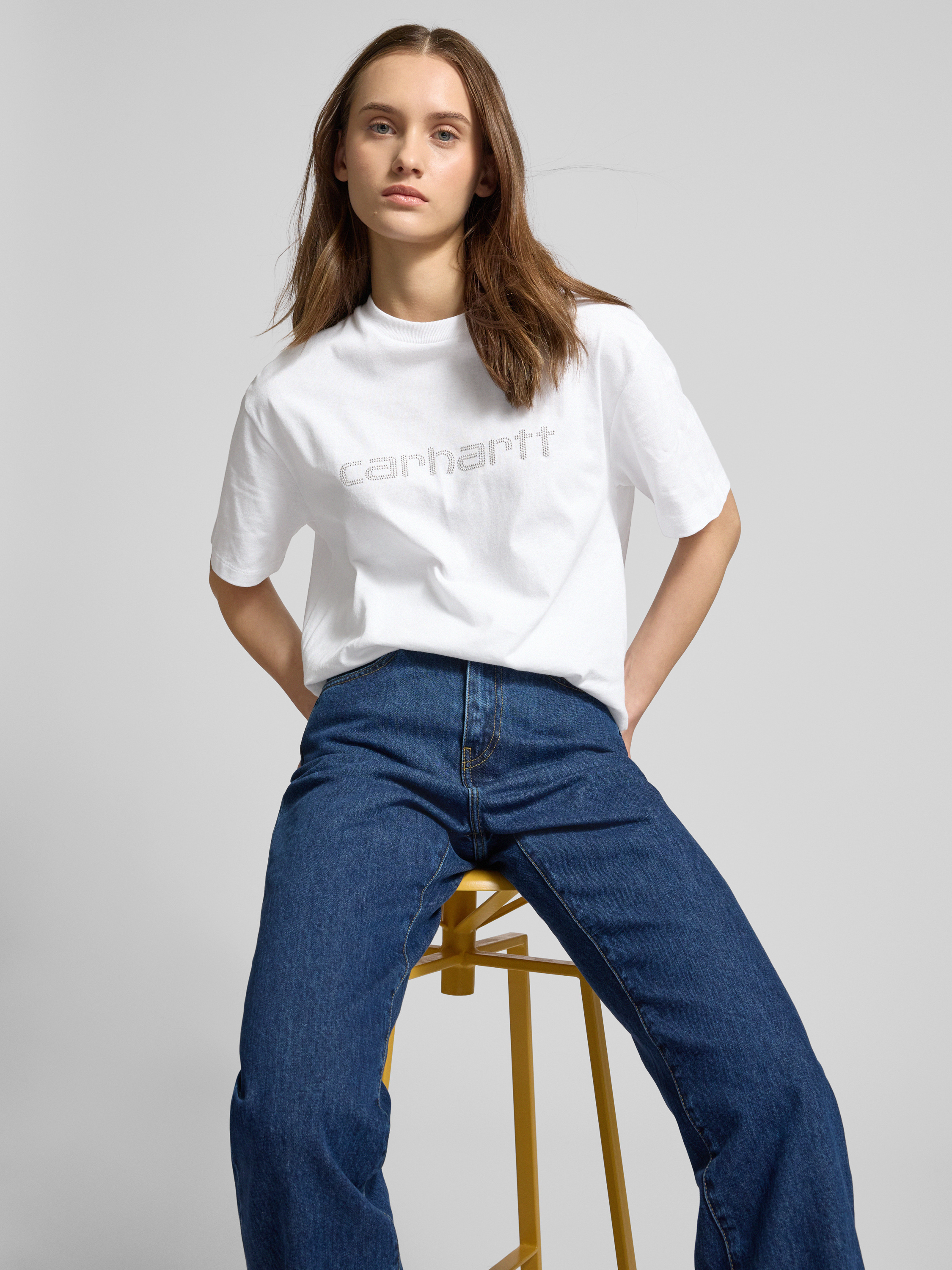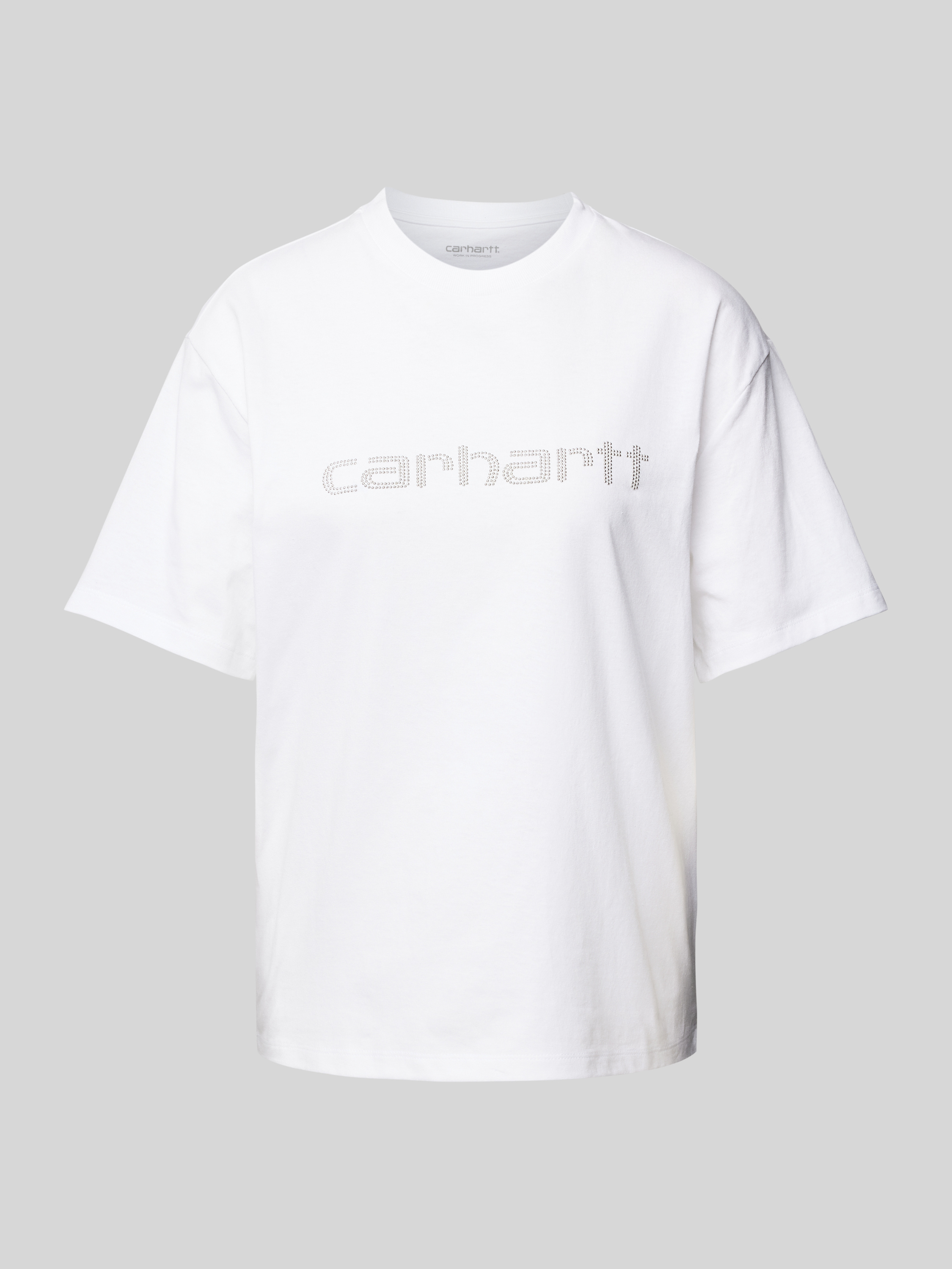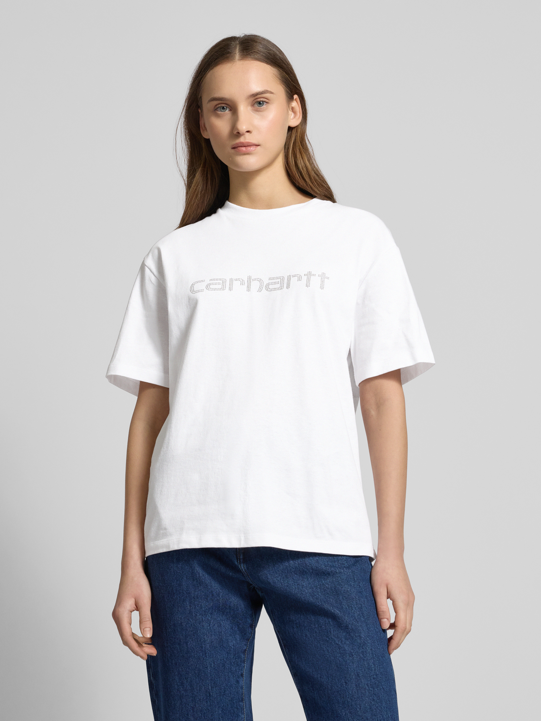 T-shirt z obszyciem kamieniami stras model ‘Rivet’ - biały