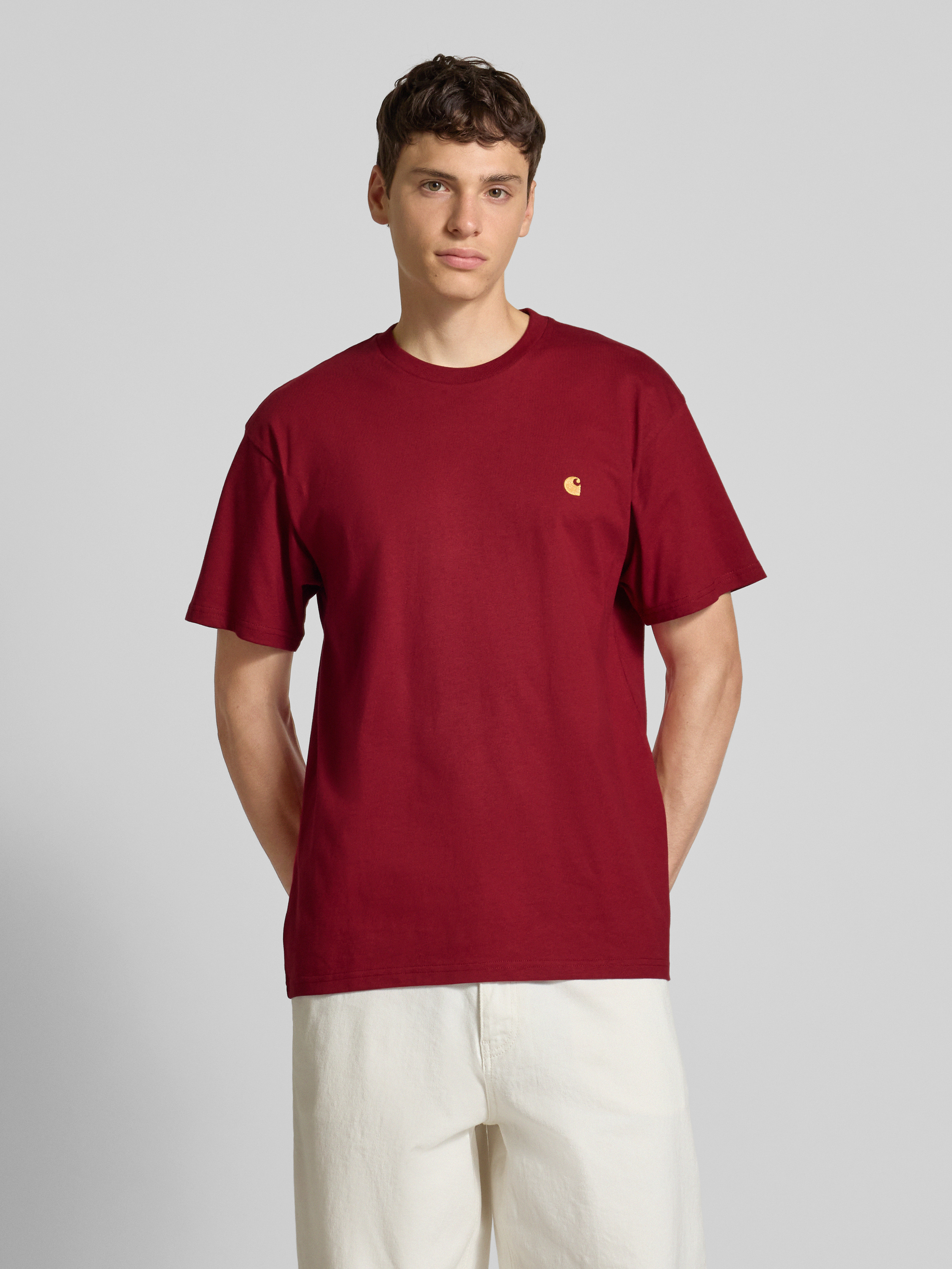 T-shirt z wyhaftowanym logo i okrągłym dekoltem - bordowy