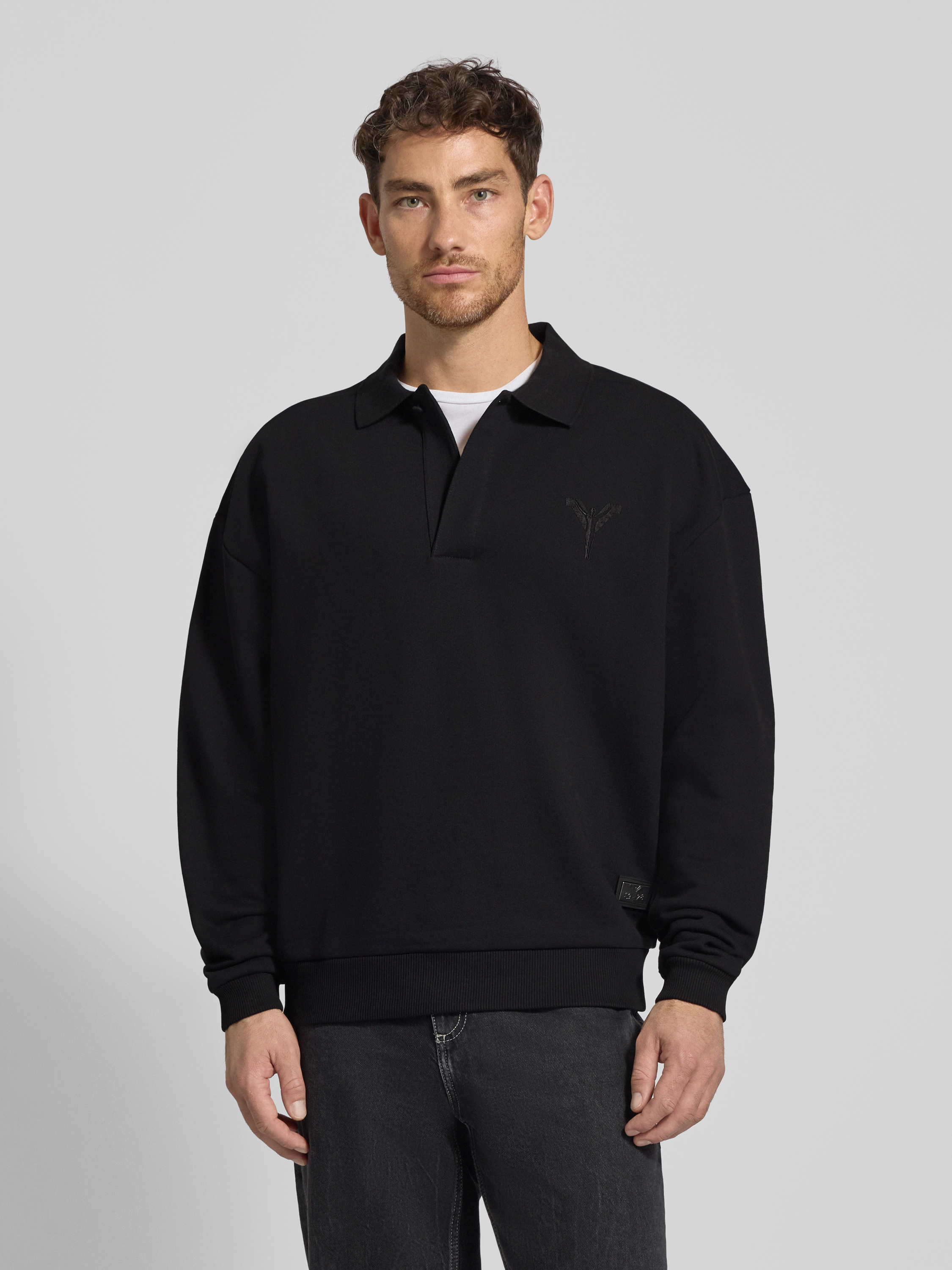 Bluza o kroju oversized z kołnierzykiem polo - czarny
