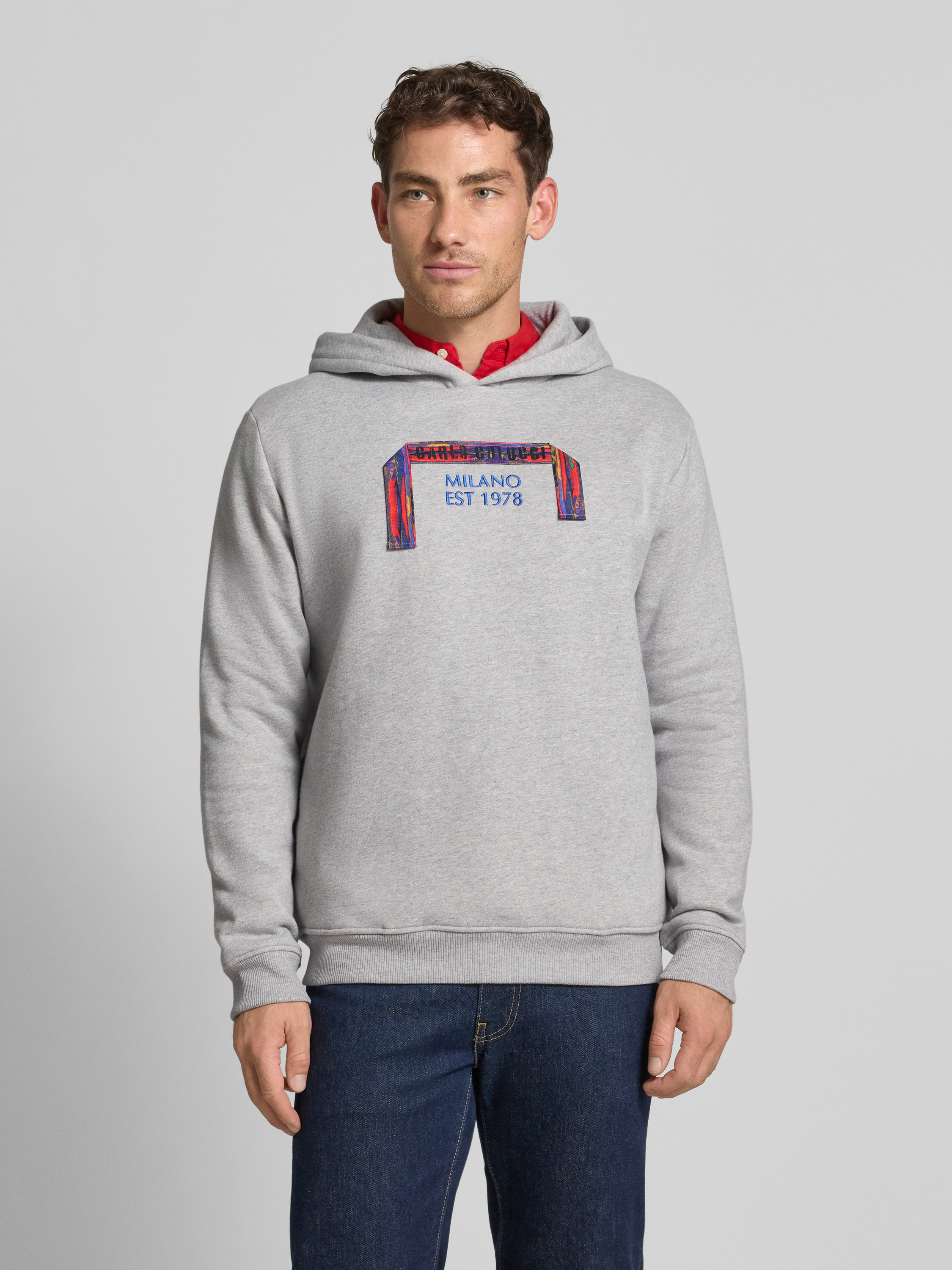 Bluza o kroju regular fit z kapturem i haftem - jasnoszary melanż
