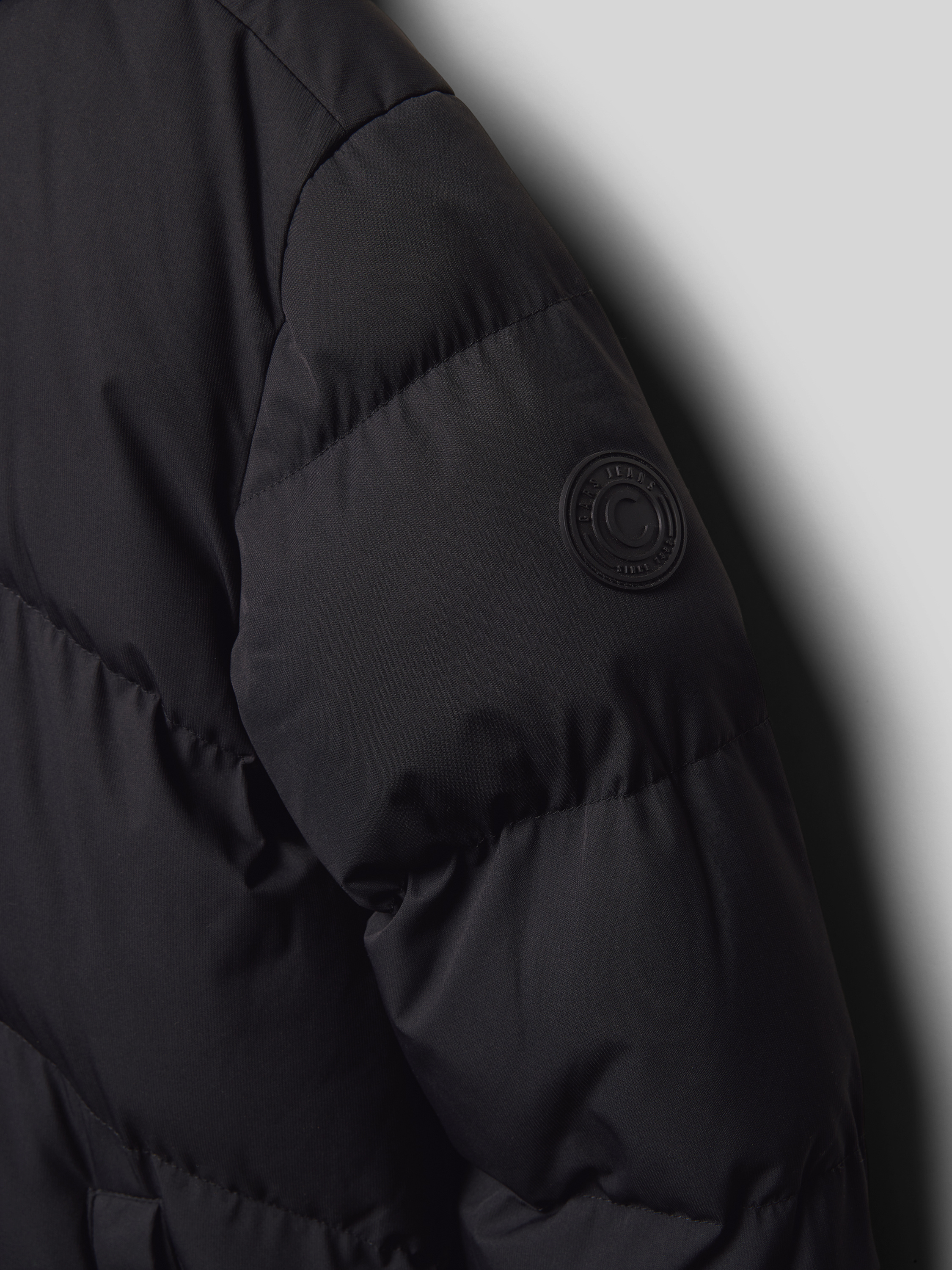 Płaszcz pikowany o kroju regular fit z aplikacją z logo model ‘Hessya’ - czarny