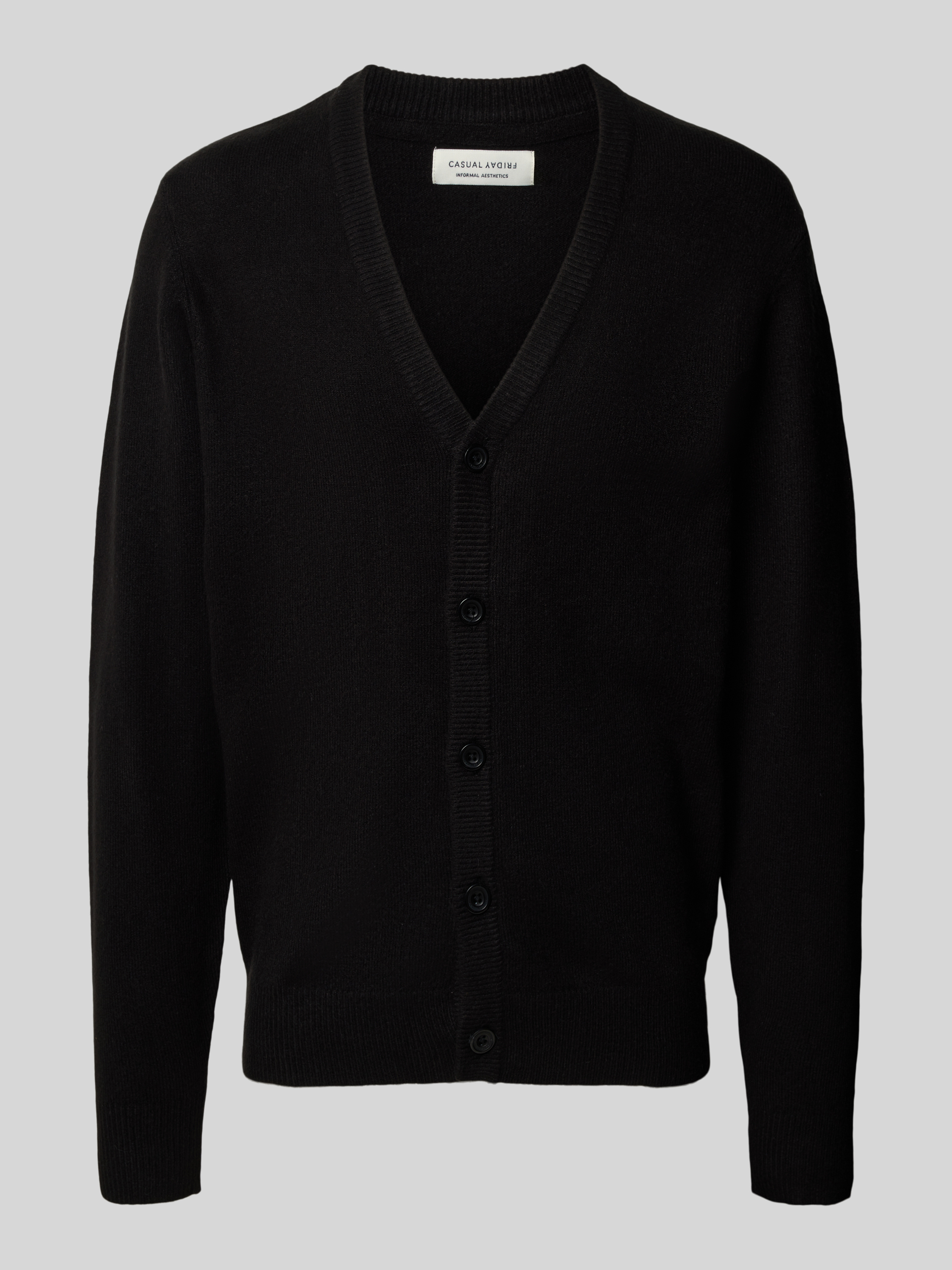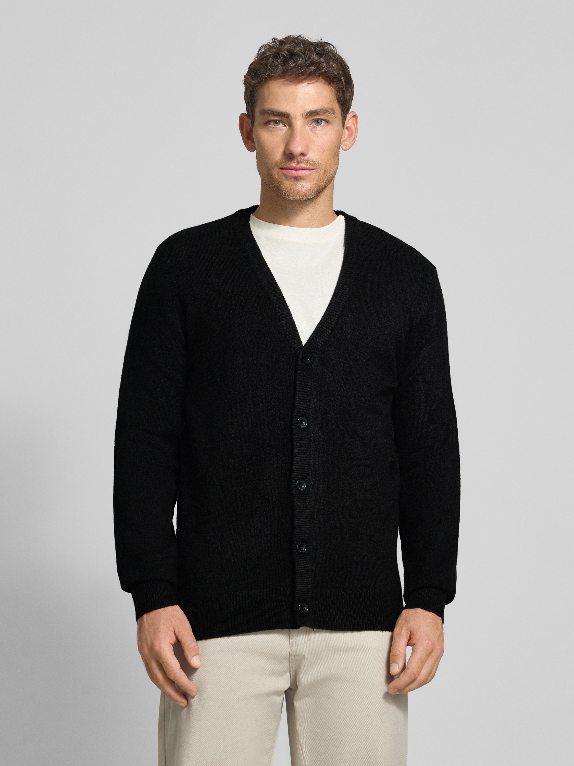 Kurtka z dzianiny o kroju slim fit z dekoltem w serek model ‘Heine’ - czarny
