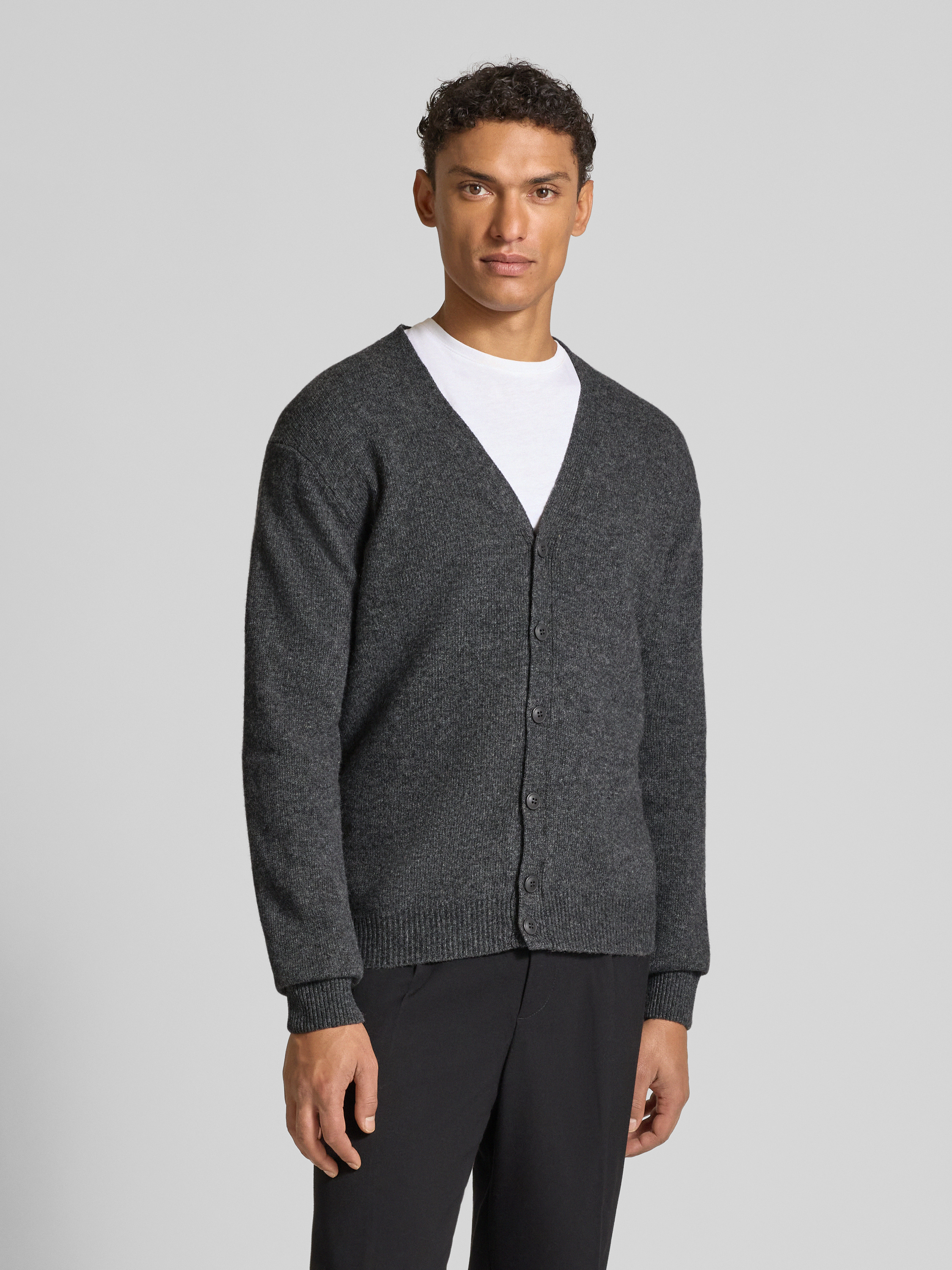 Kurtka z dzianiny z dekoltem w serek model ‘KARL’ - średnioszary