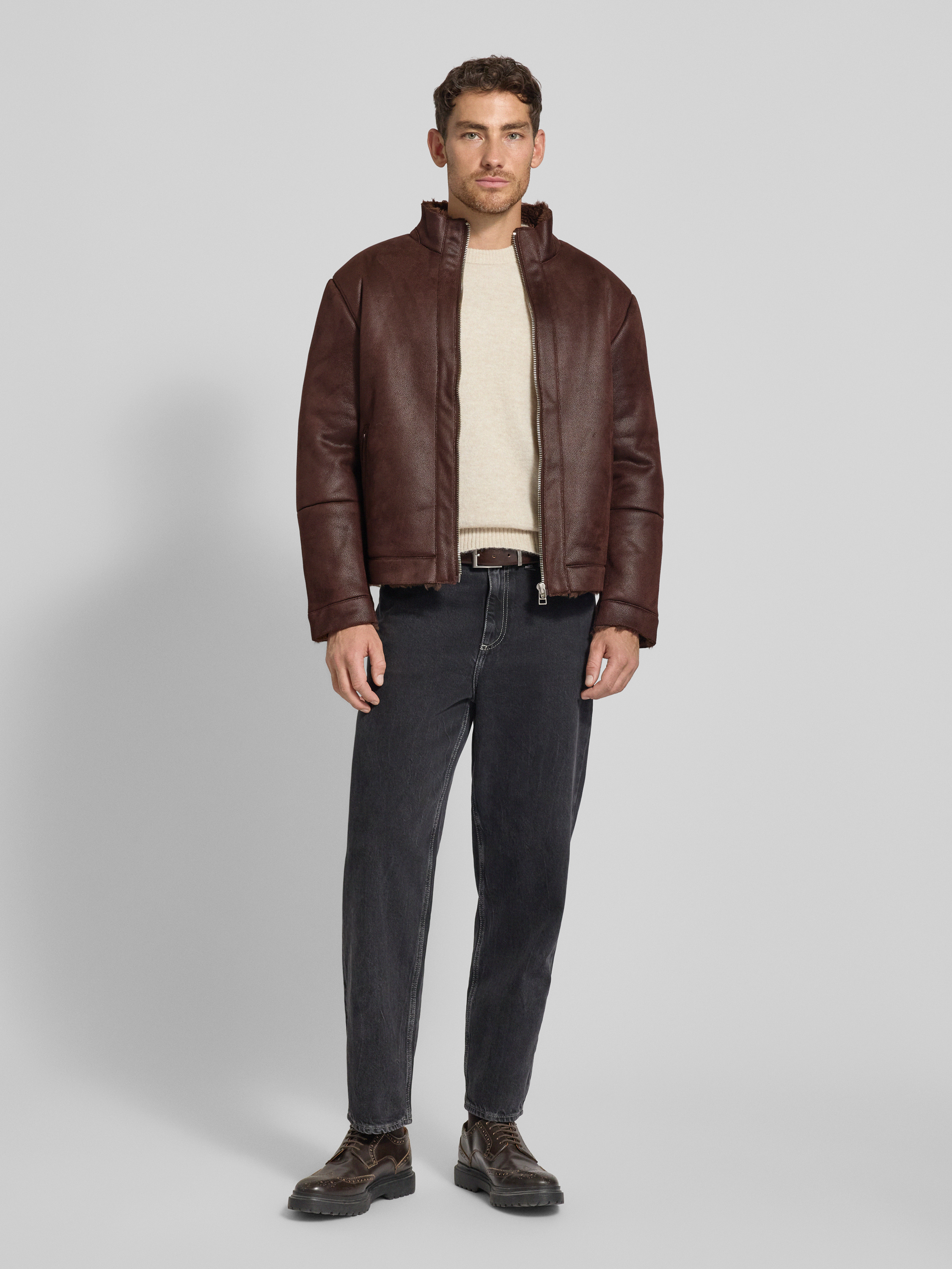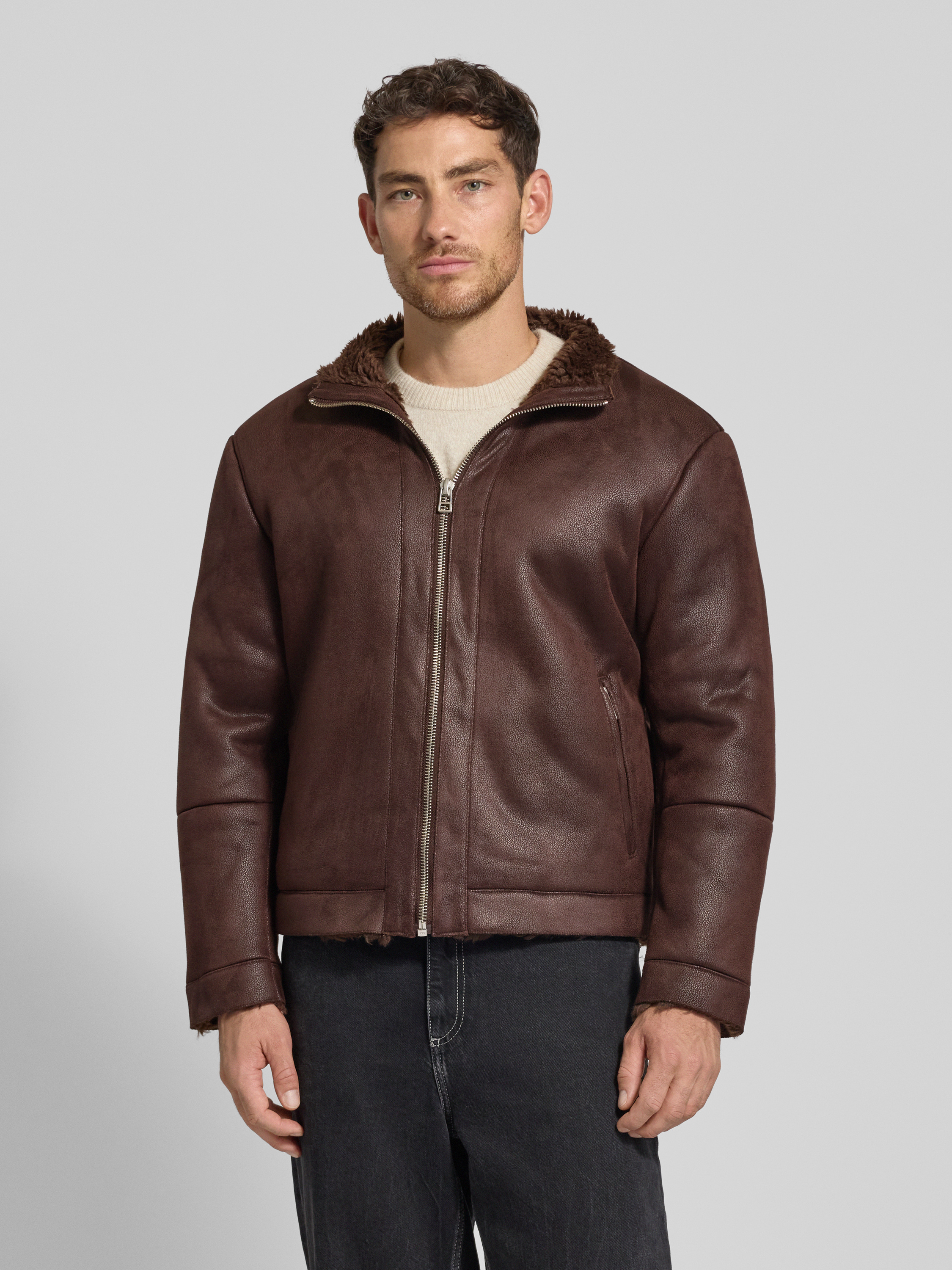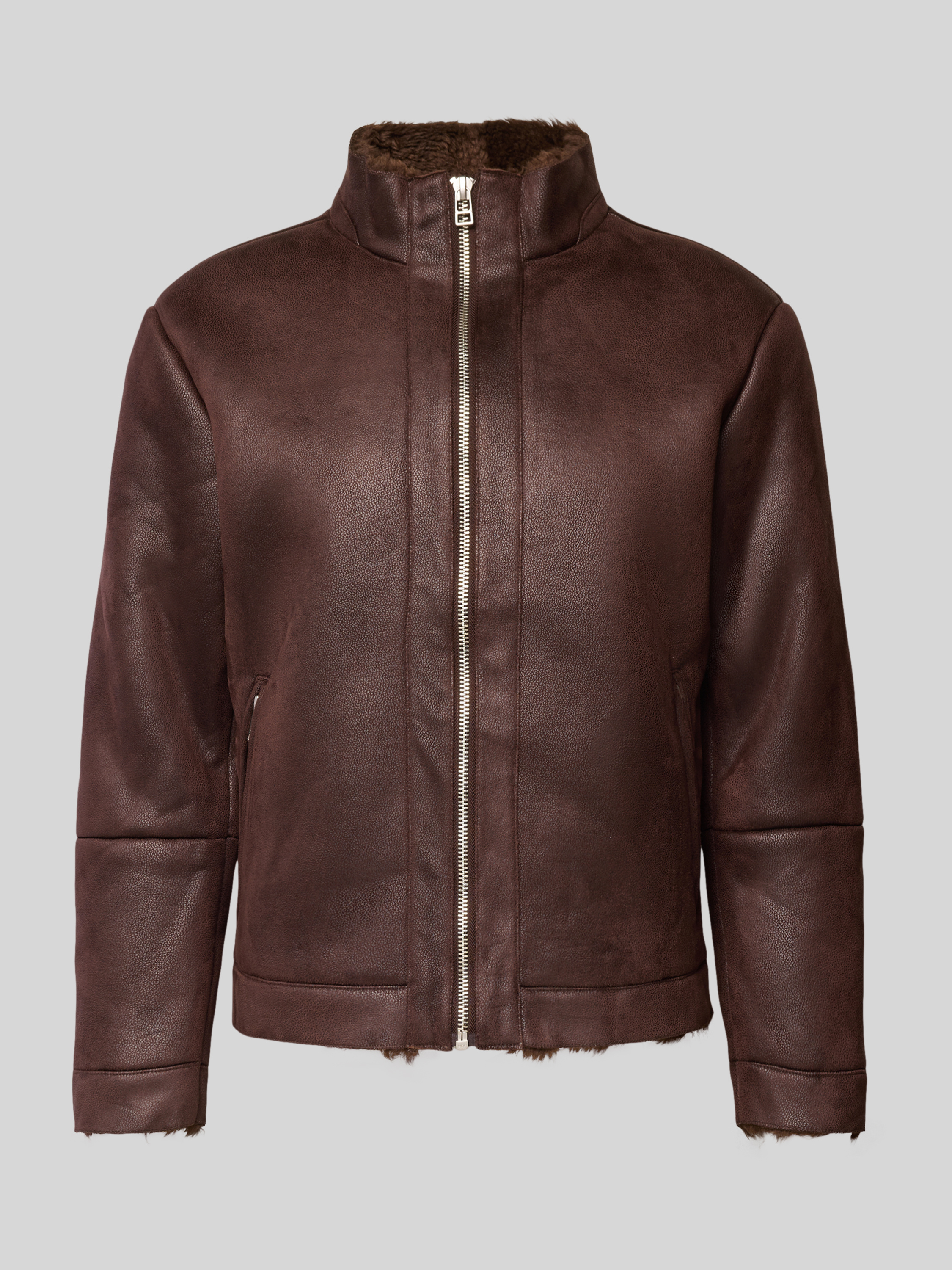 Kurtka z imitacji skóry ze stójką model ‘MACKSEN’ - czekoladowy