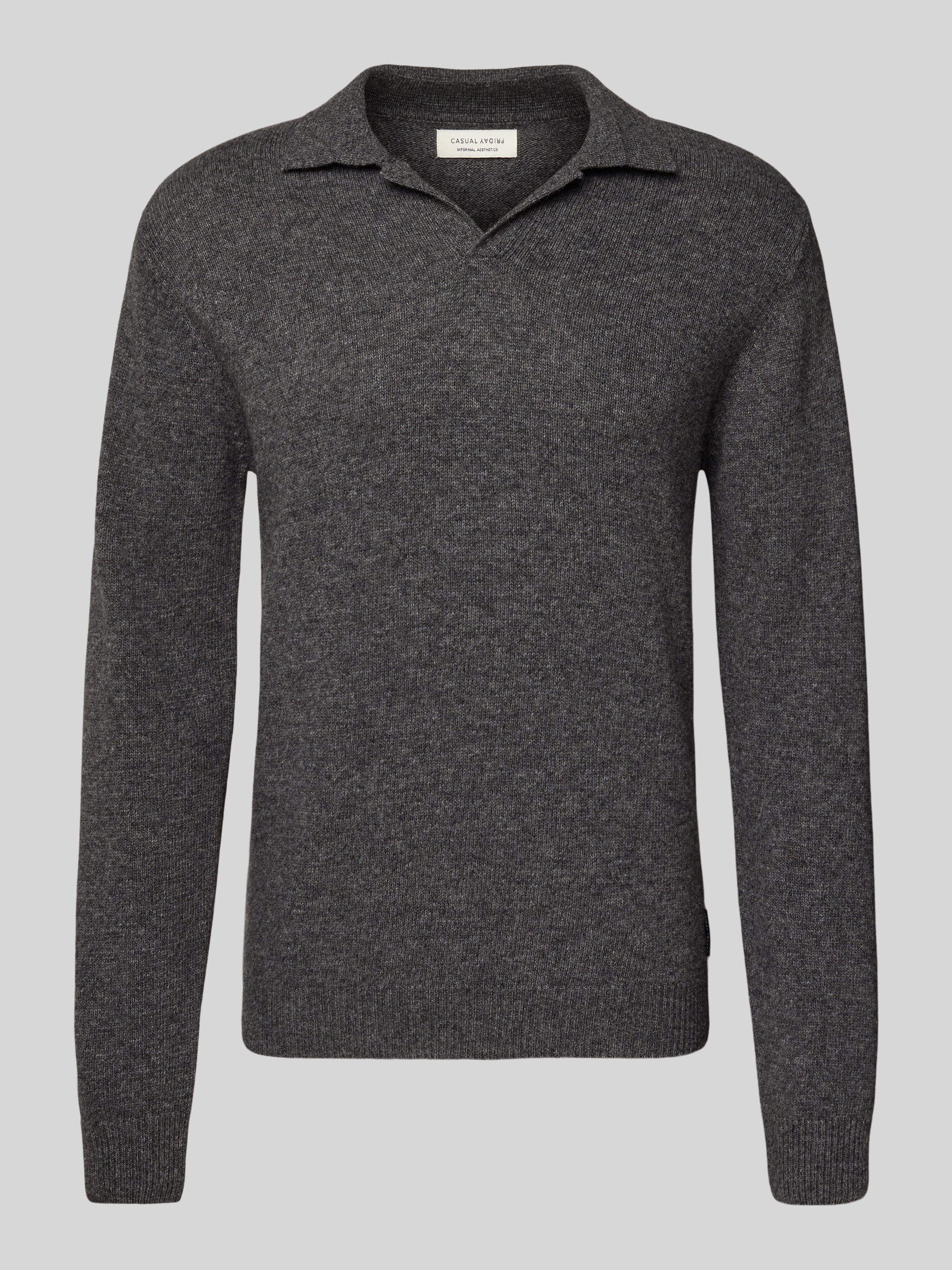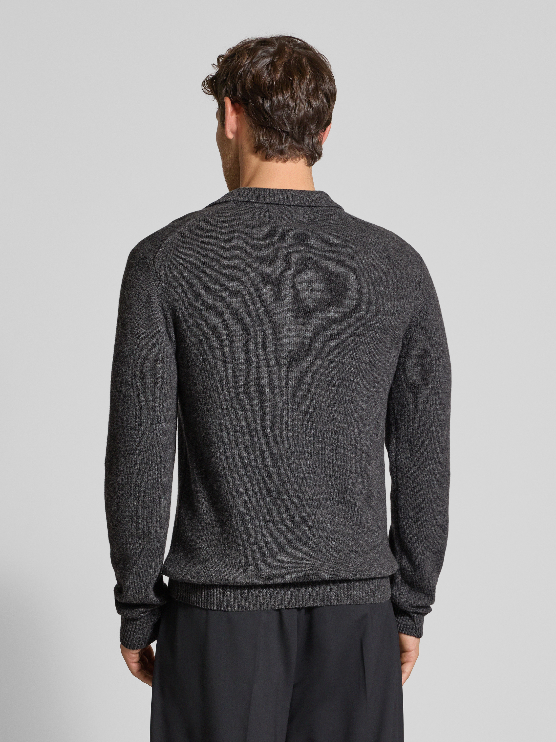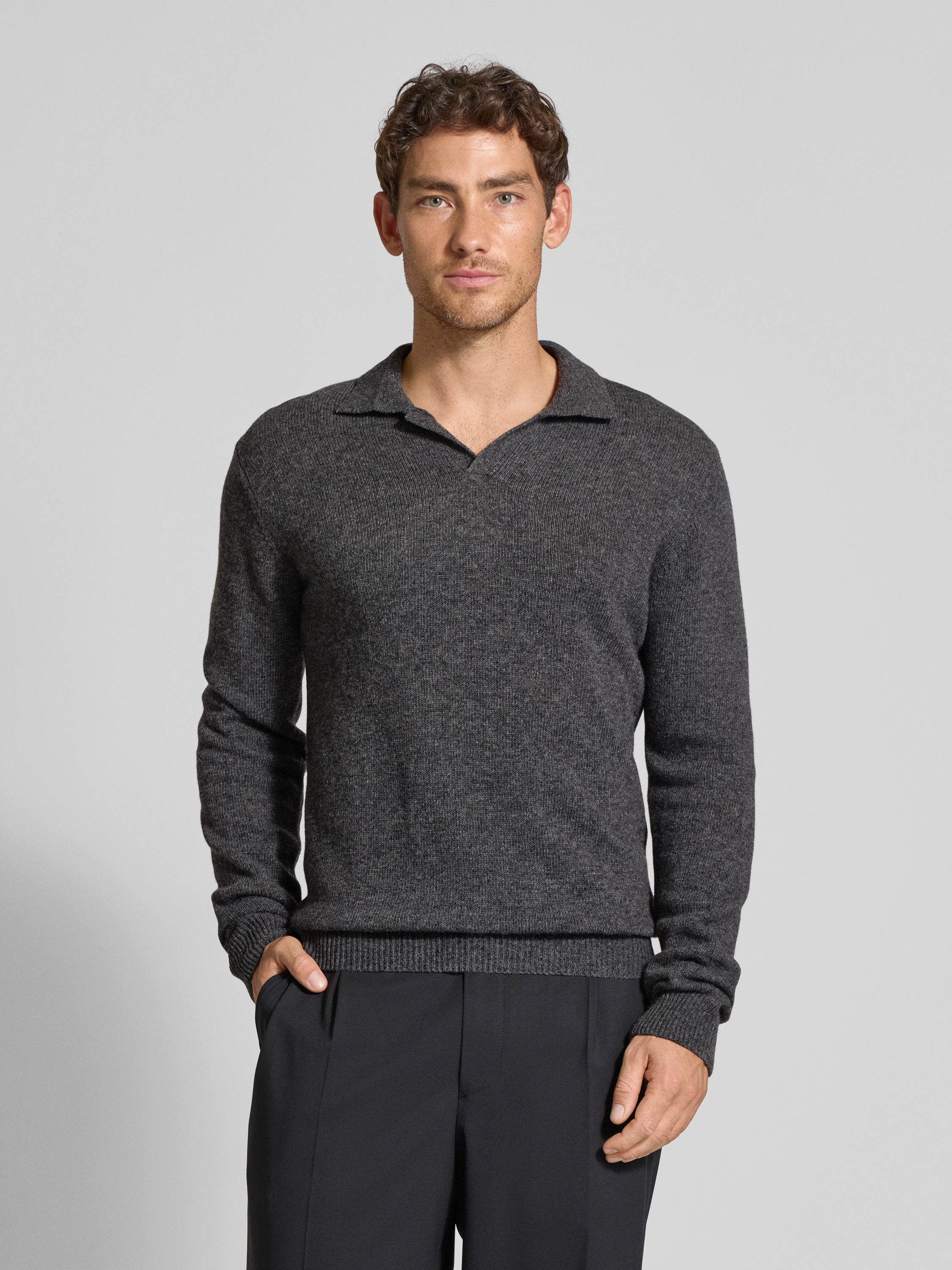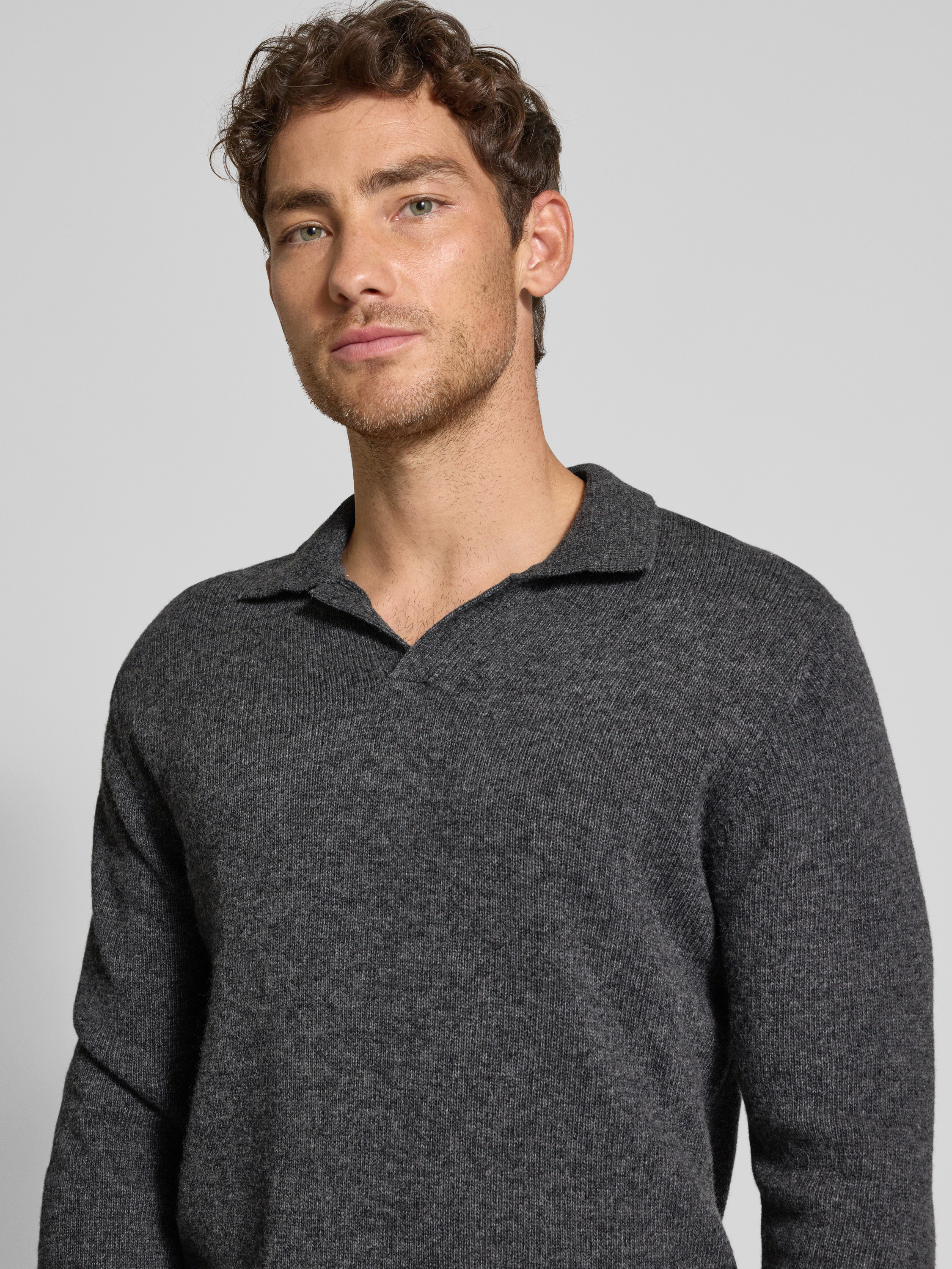 Sweter z dzianiny z mieszanki wełny z kołnierzykiem polo model ‘Karl’ - średnioszary