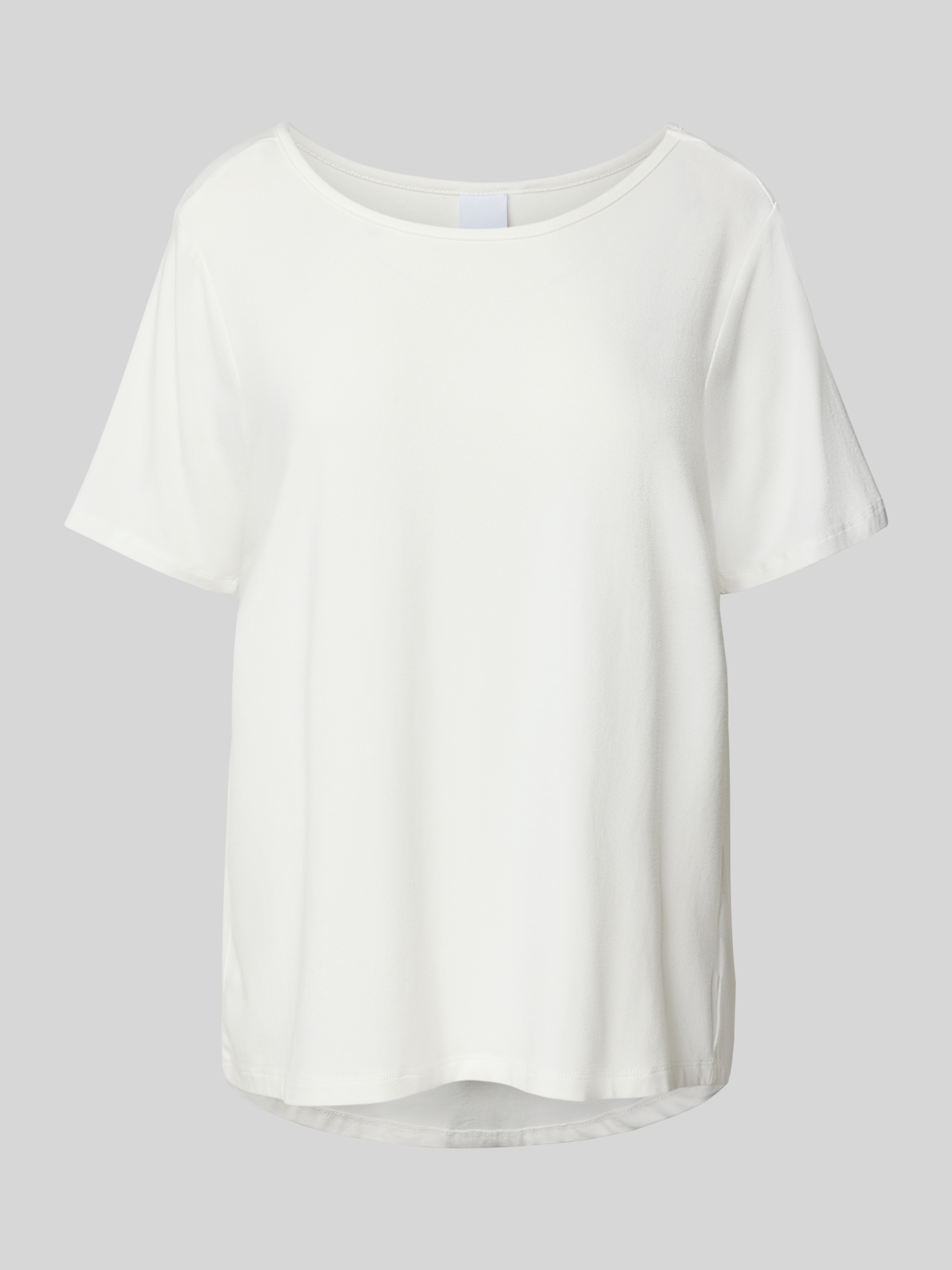 Góra od piżamy z prążkowanym, okrągłym dekoltem model ‘Bea’ - złamany biały