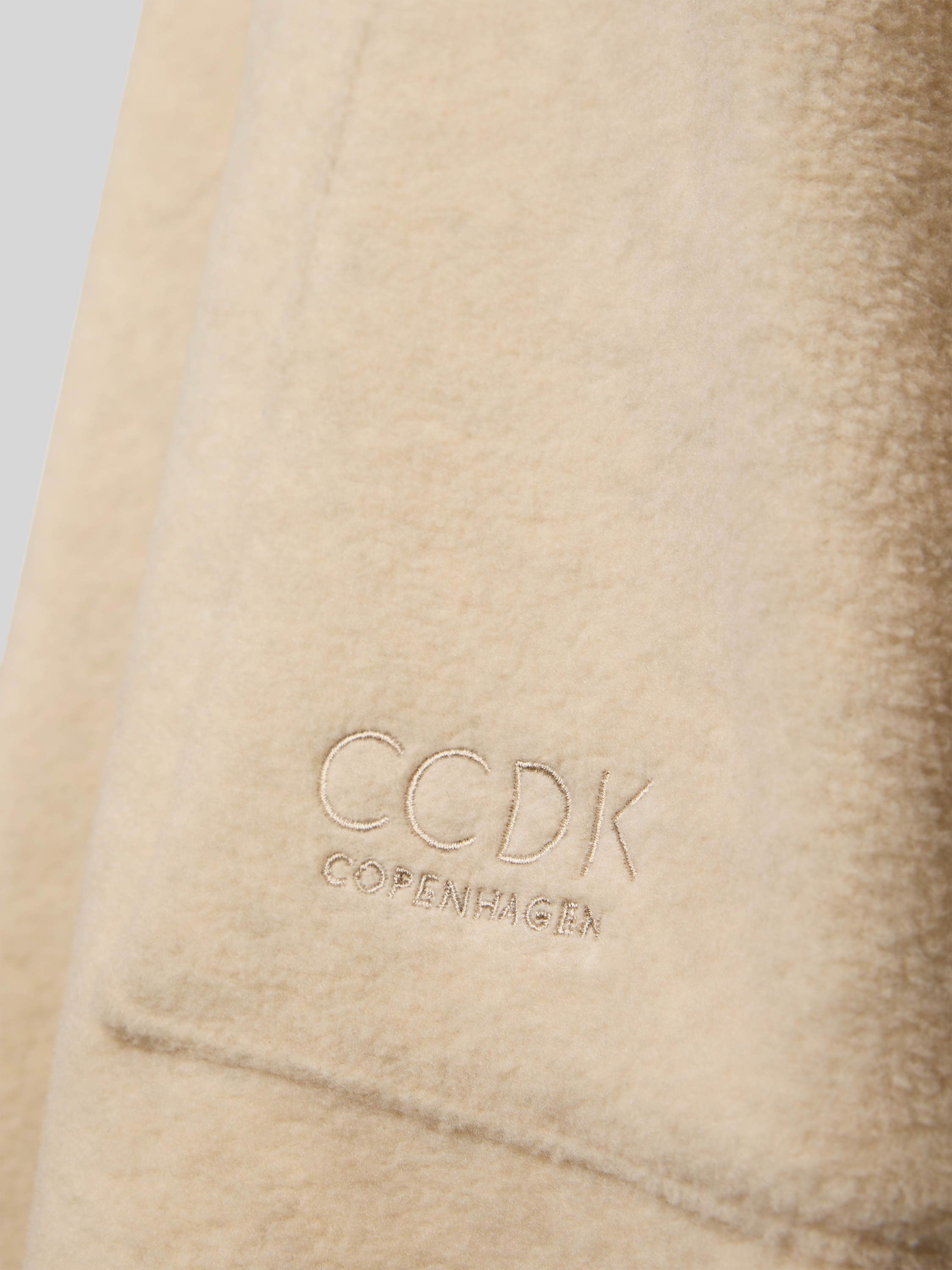 Szlafrok o kroju relaxed fit z wyhaftowanym logo model ‘Lisbeth’ - beżowy