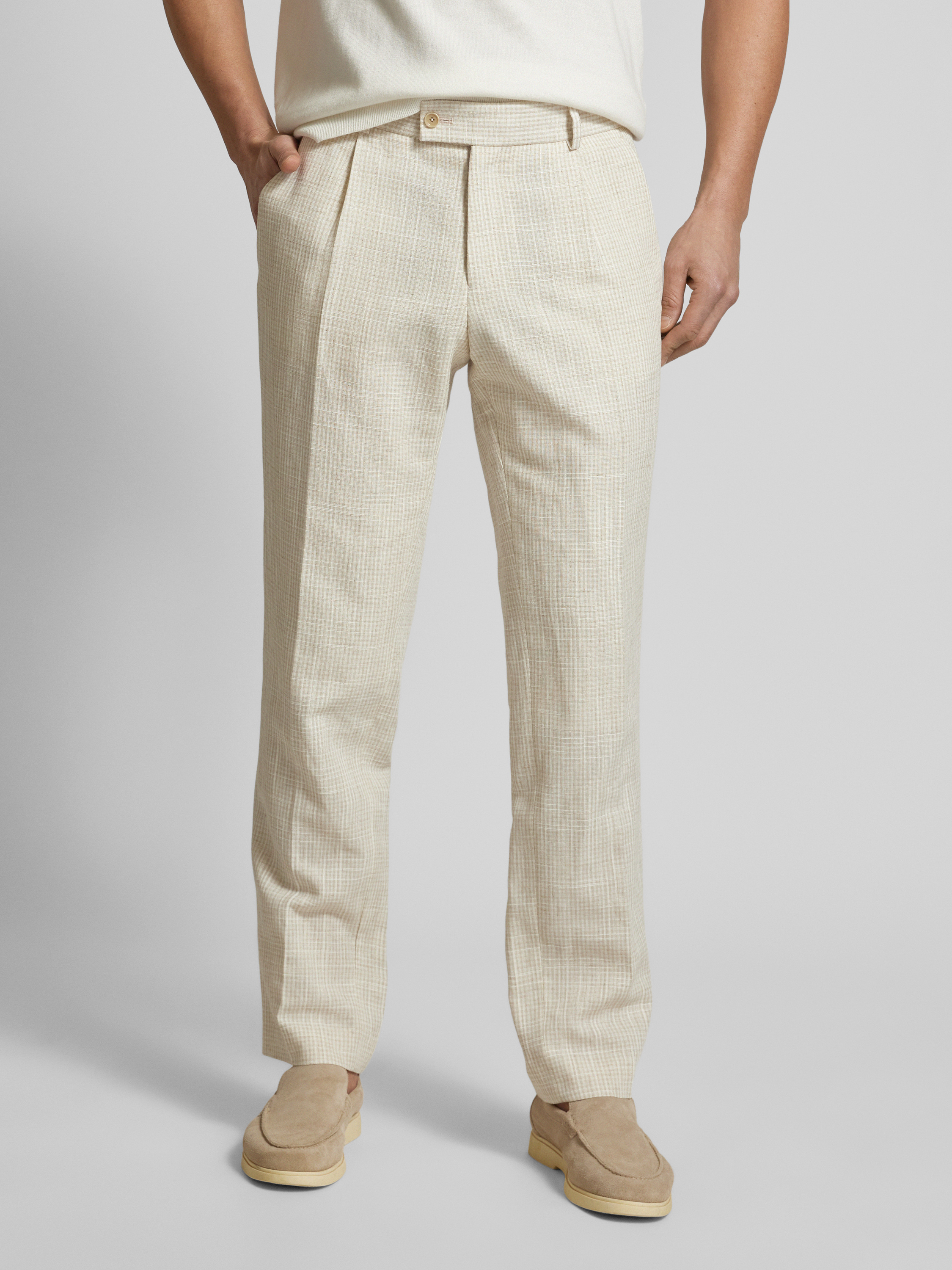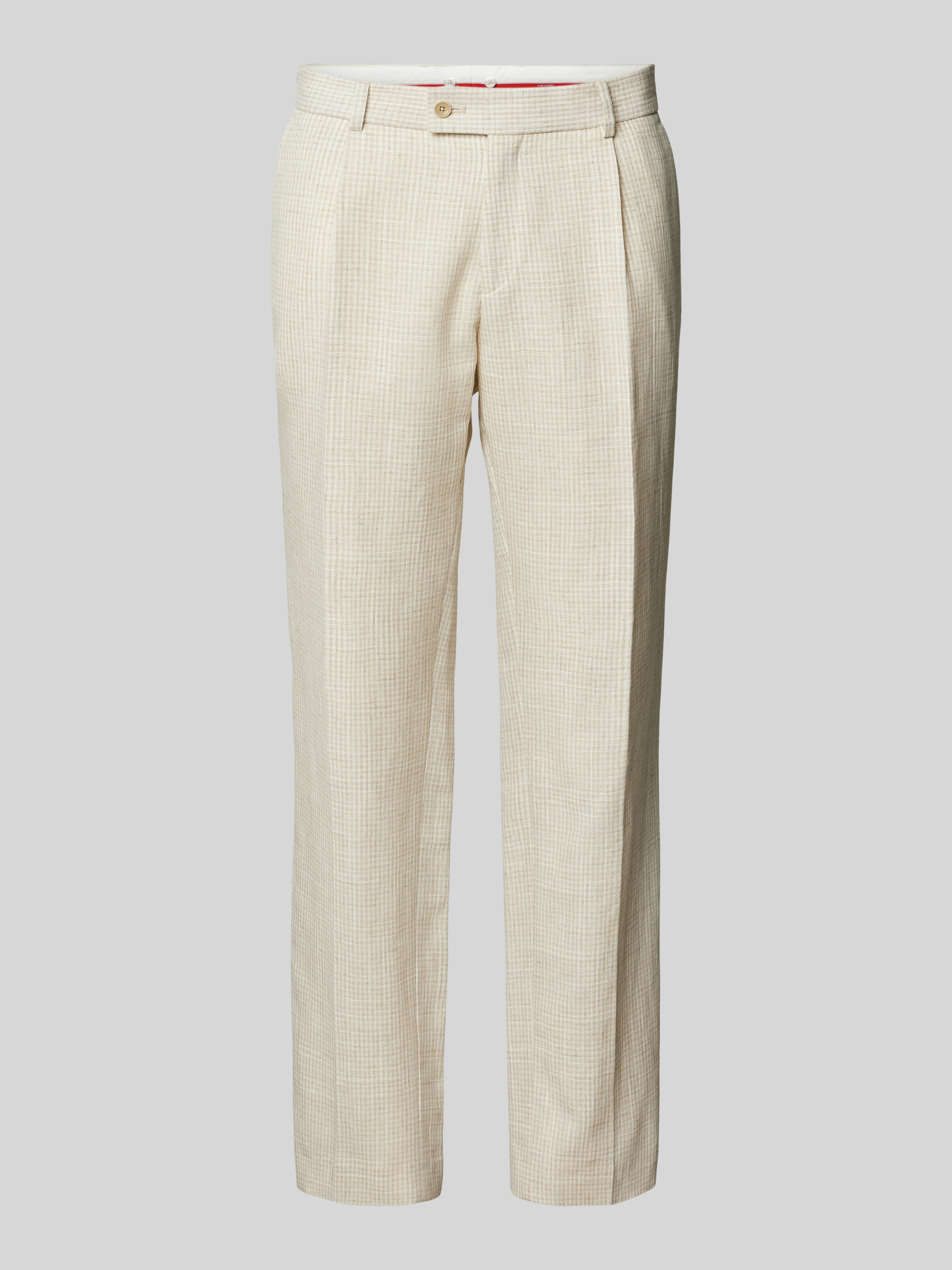 Spodnie do garnituru o kroju regular fit z zakładkami w pasie i kantem model ‘Peter’ - beżowy