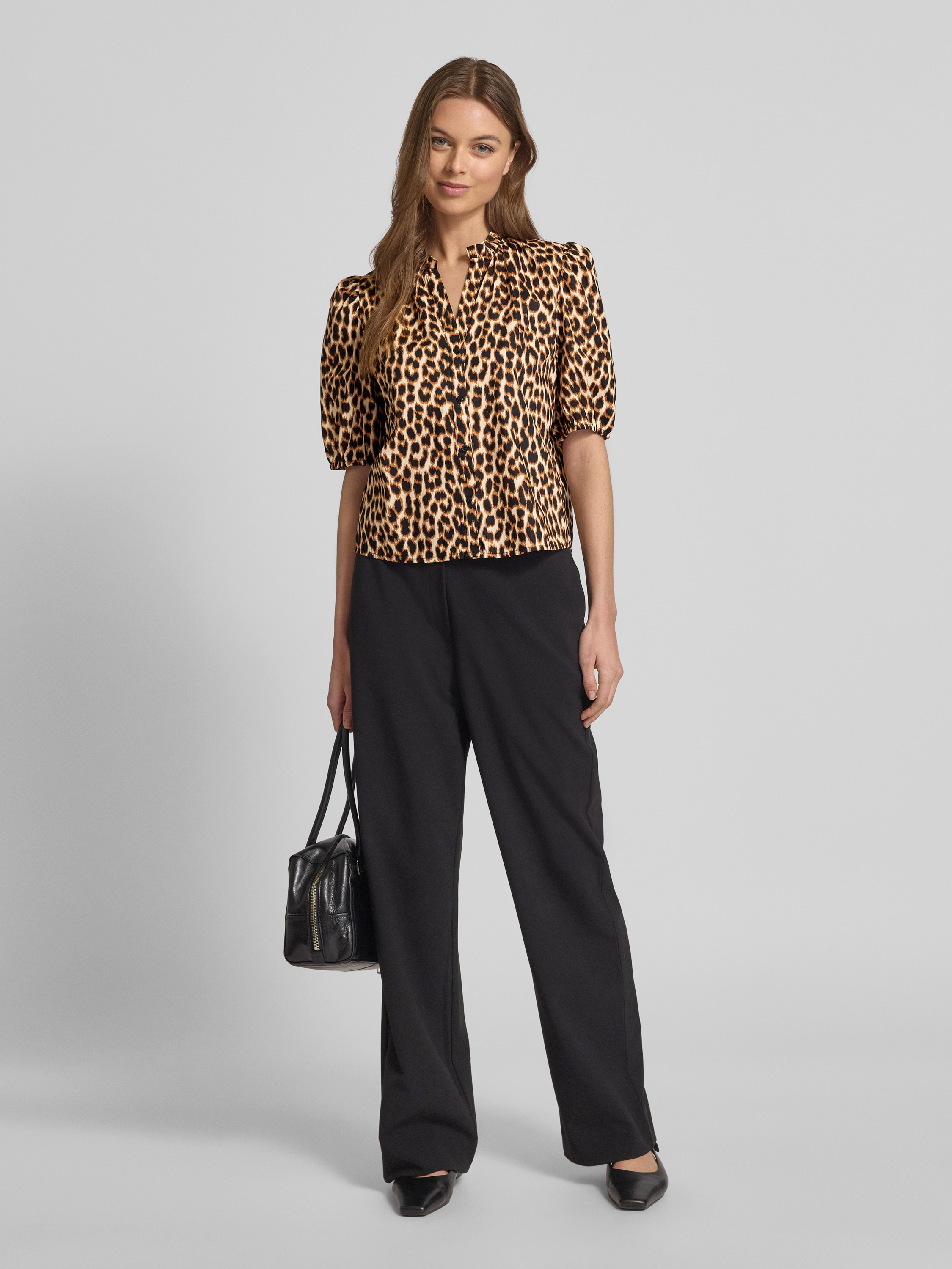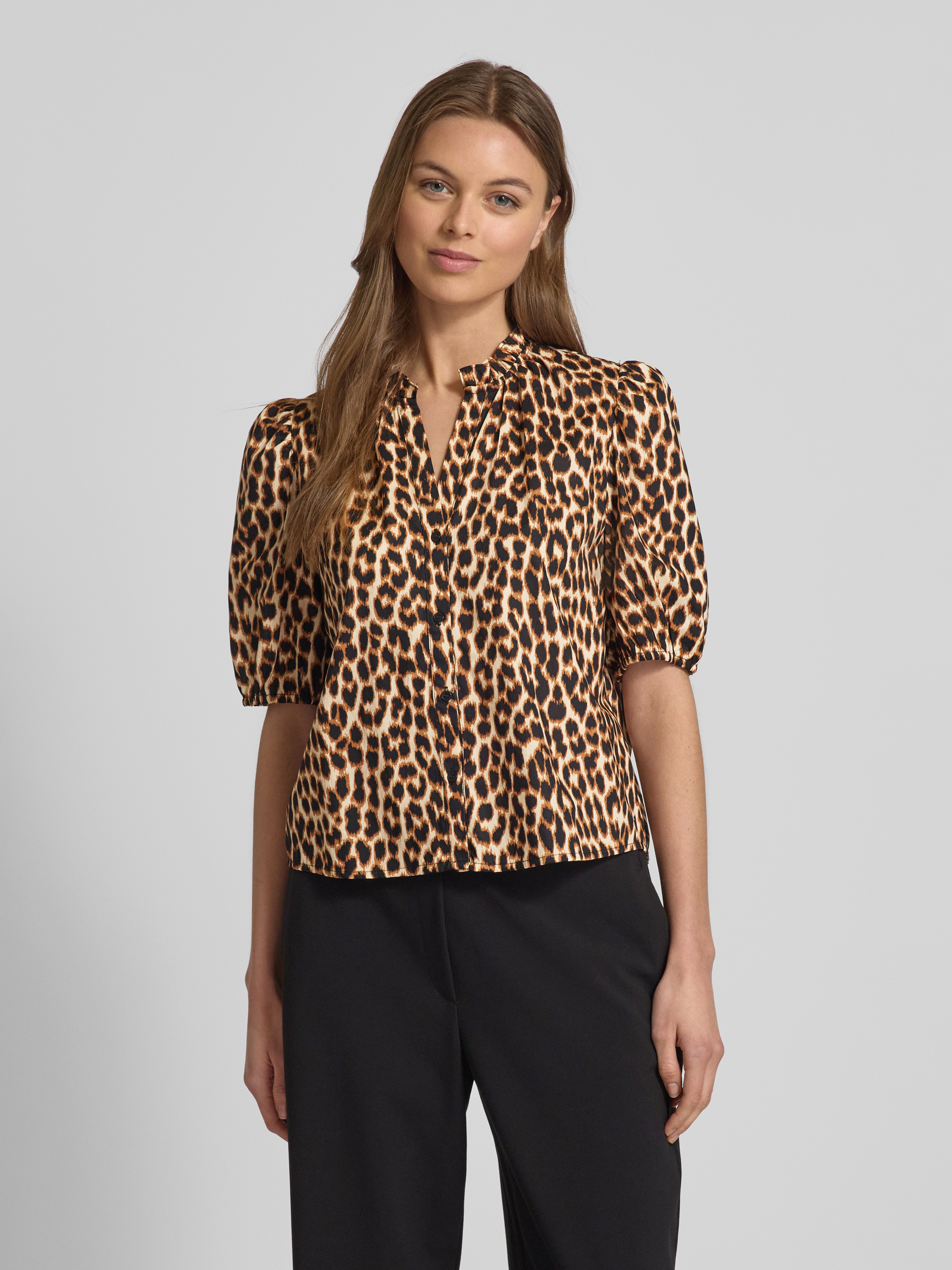Bluzka o kroju regular fit ze zwierzęcym wzorem i dekoltem w serek - beżowy