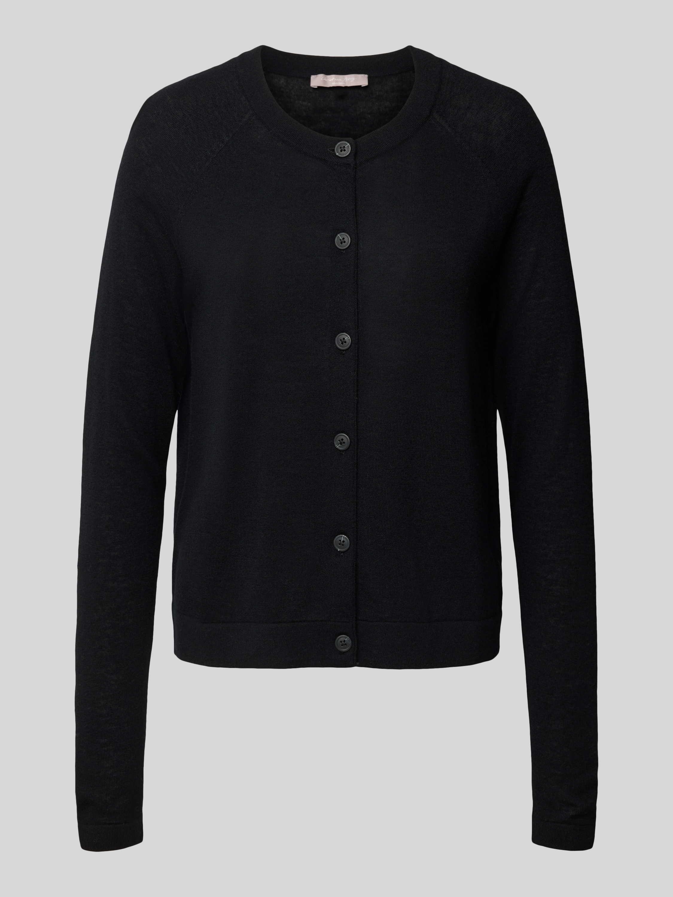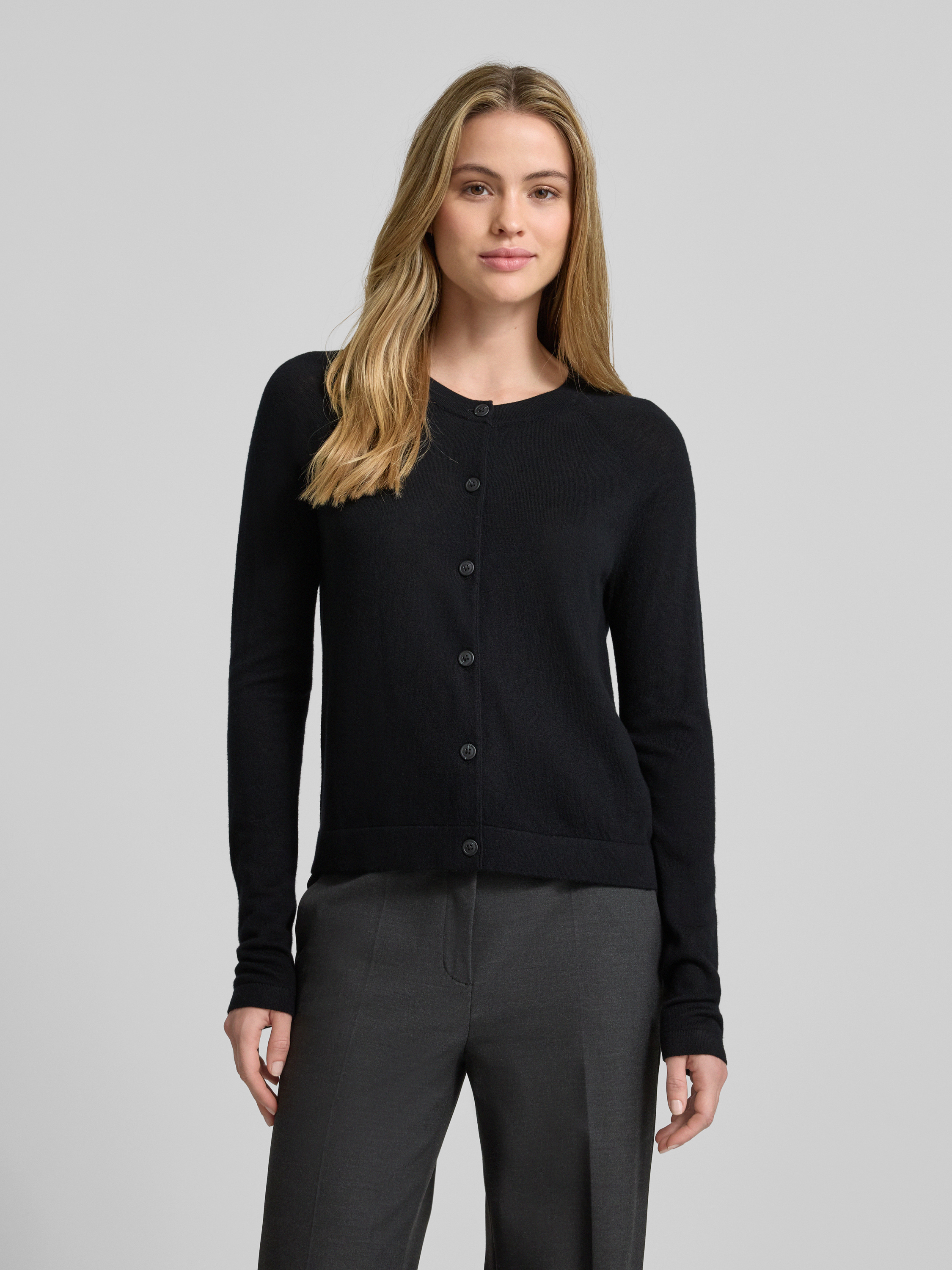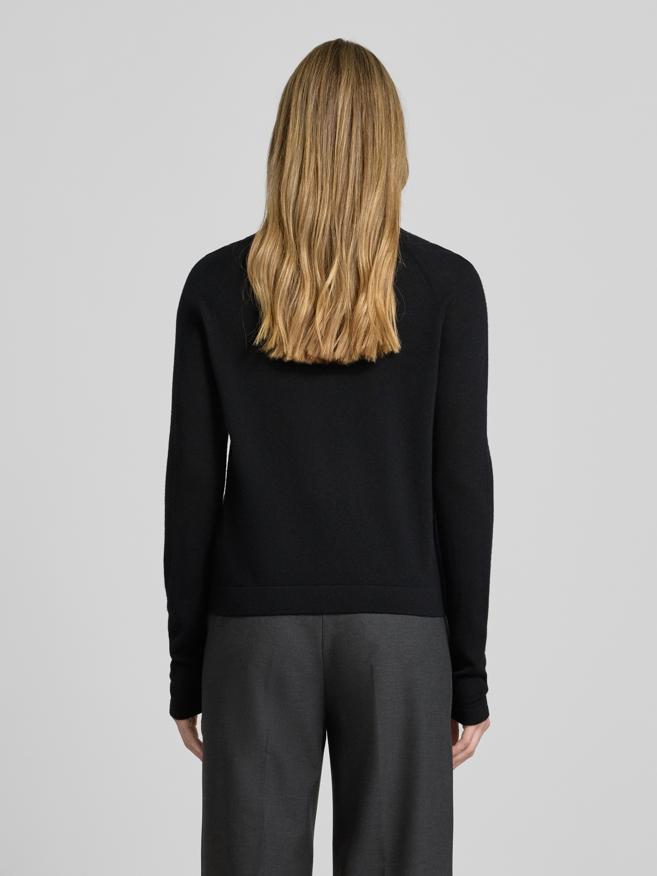 Kurtka z dzianiny z wełny z okrągłym dekoltem - czarny