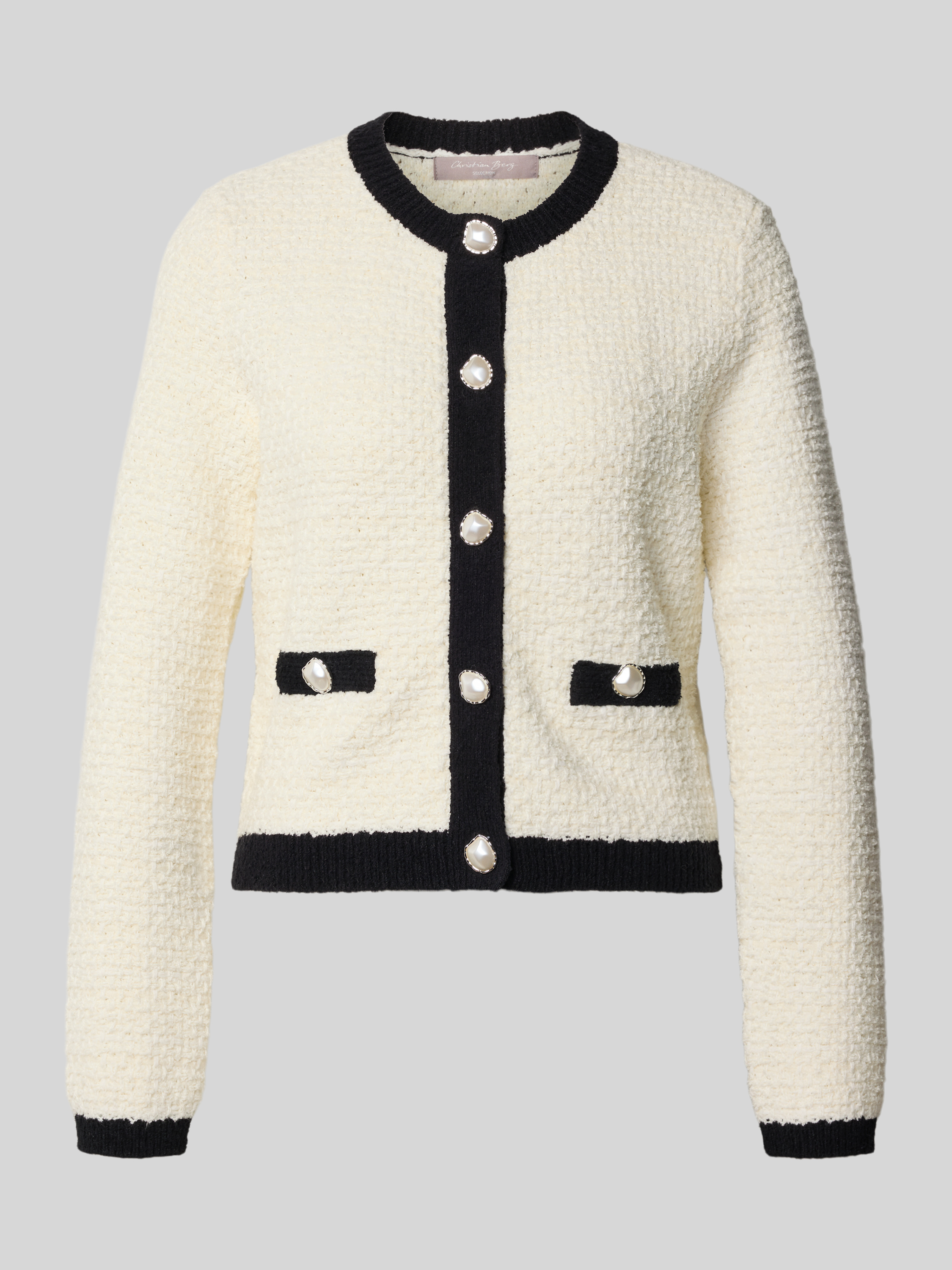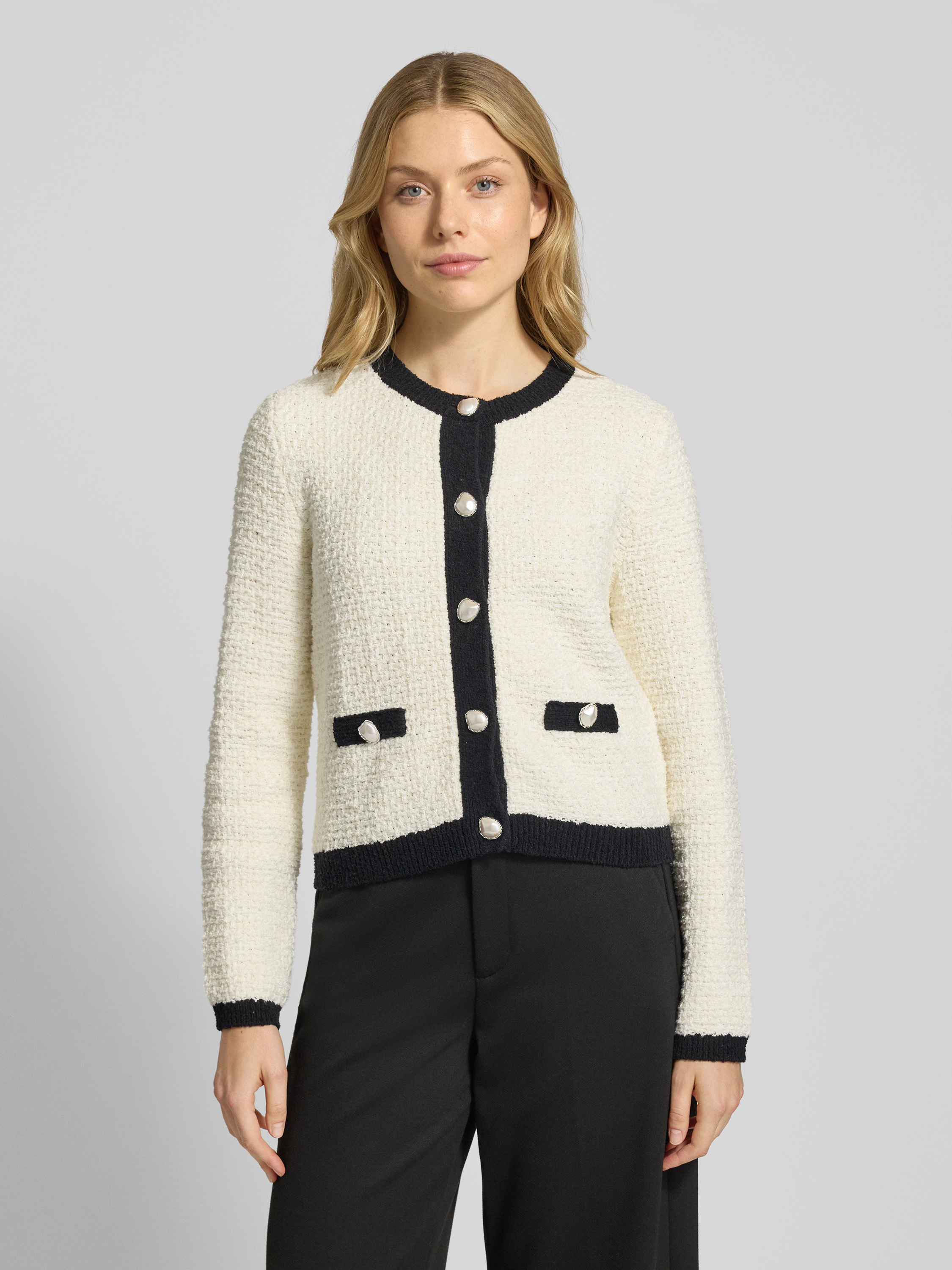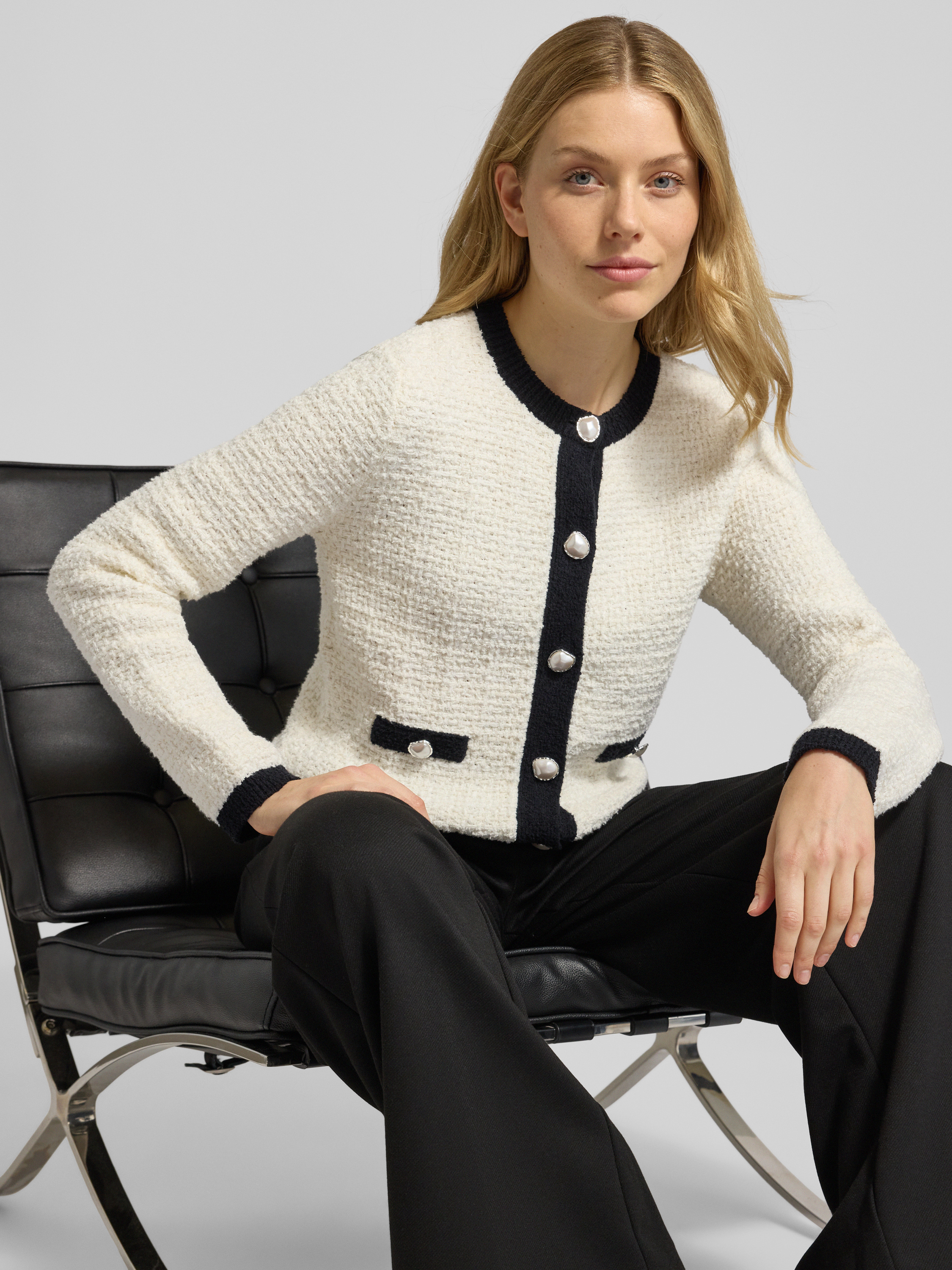 Kurtka z efektem bouclé i okrągłym dekoltem - écru