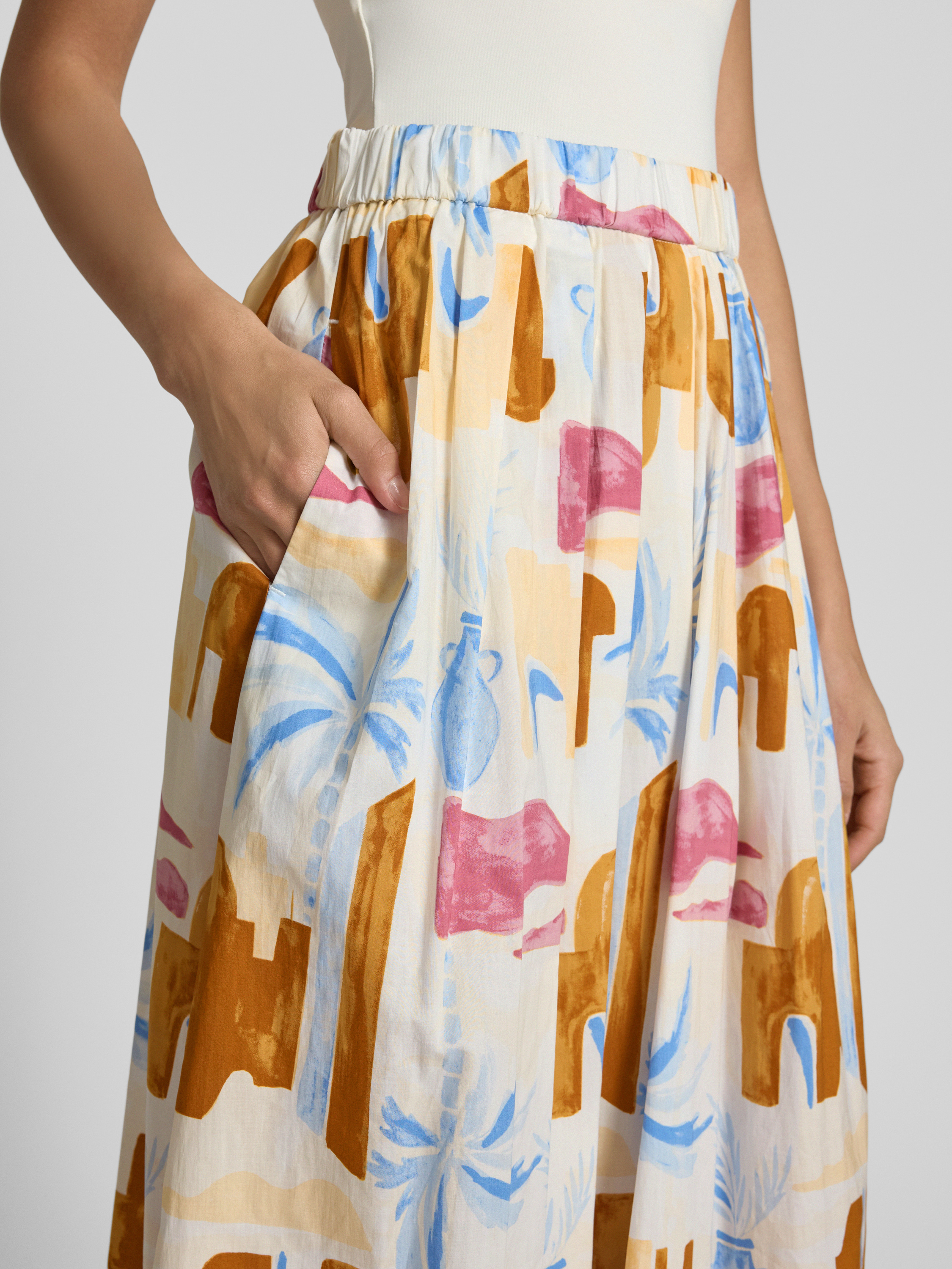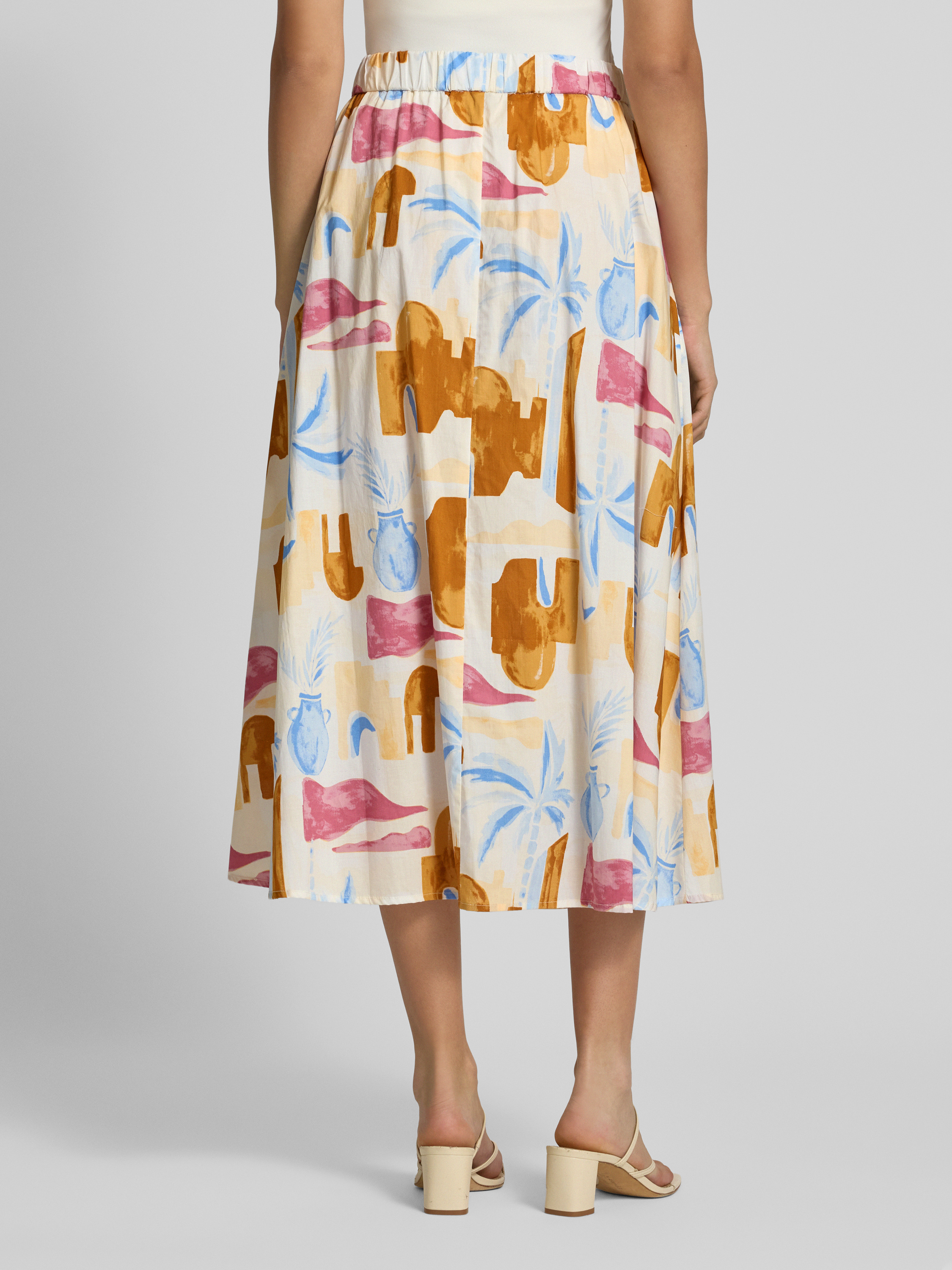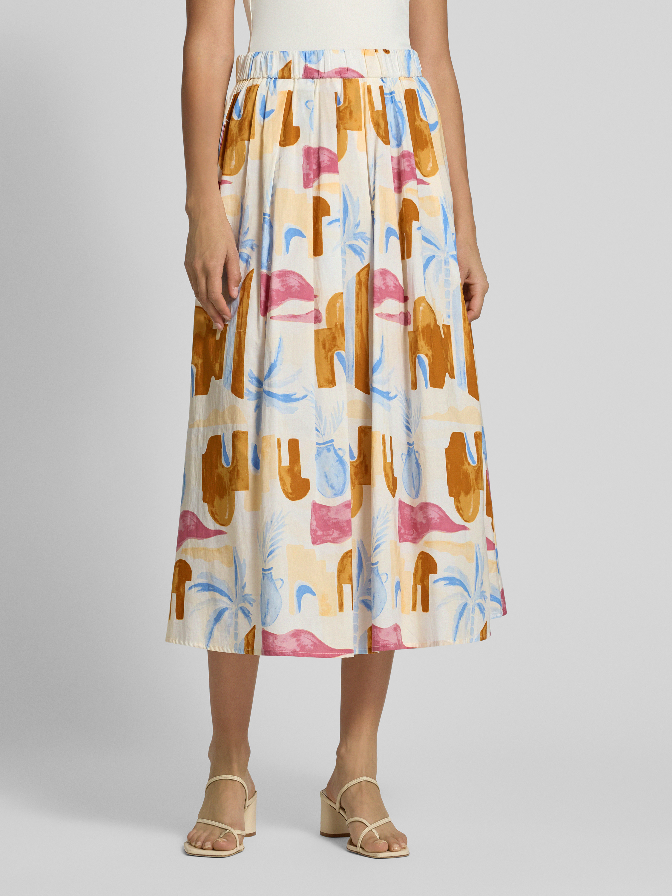 Spódnica midi o linii A z czystej bawełny z zakładkami w pasie - beżowy