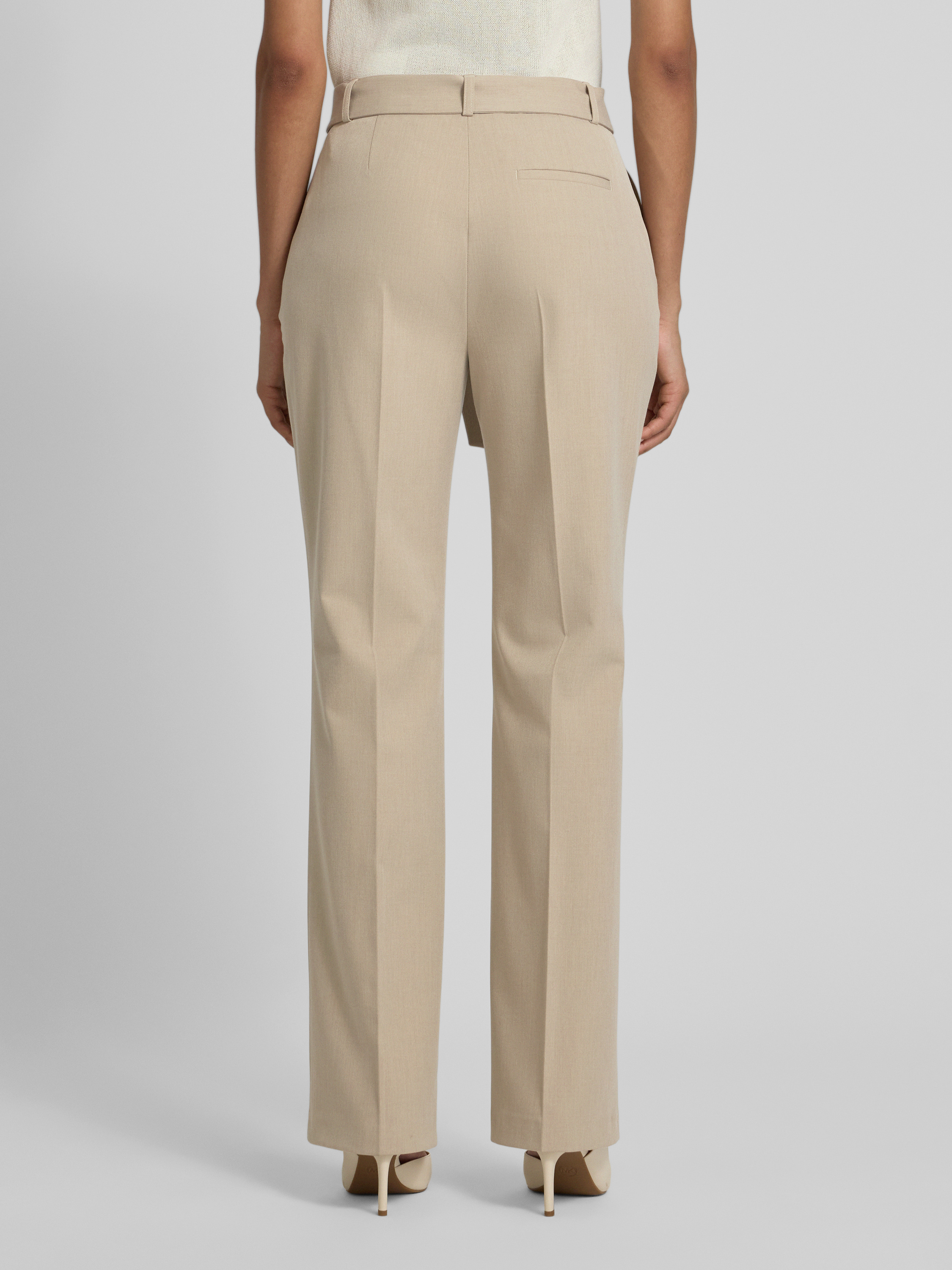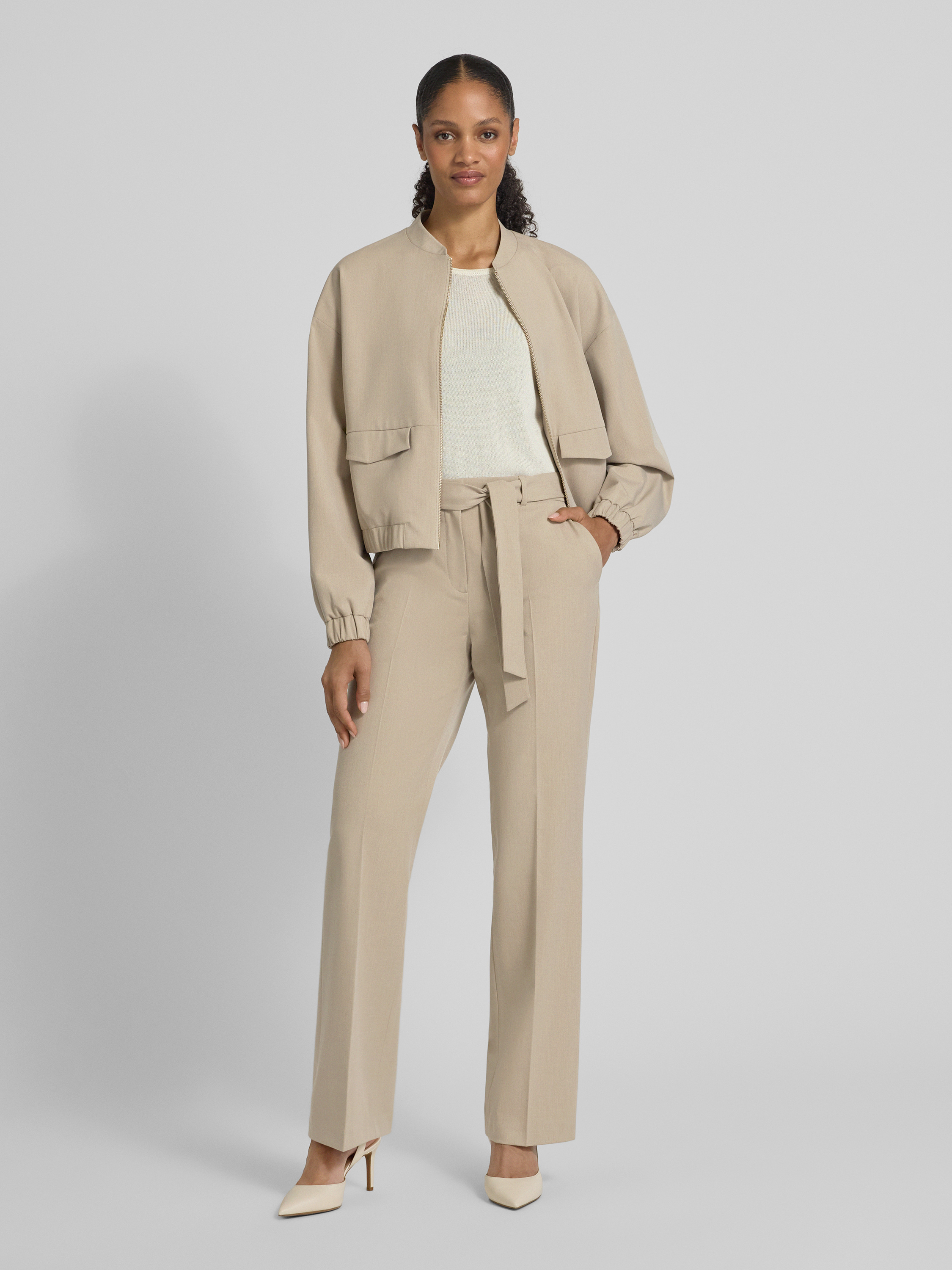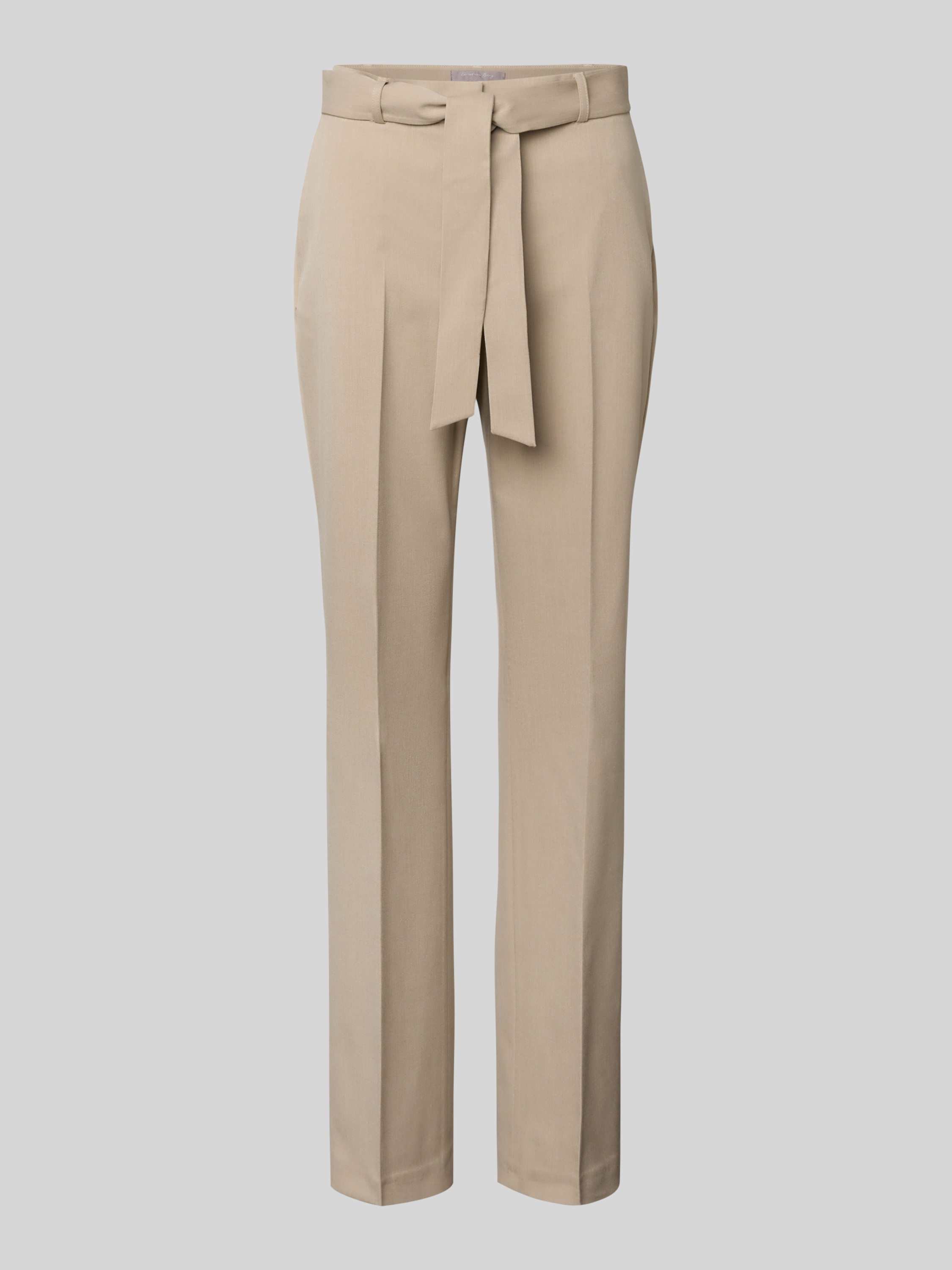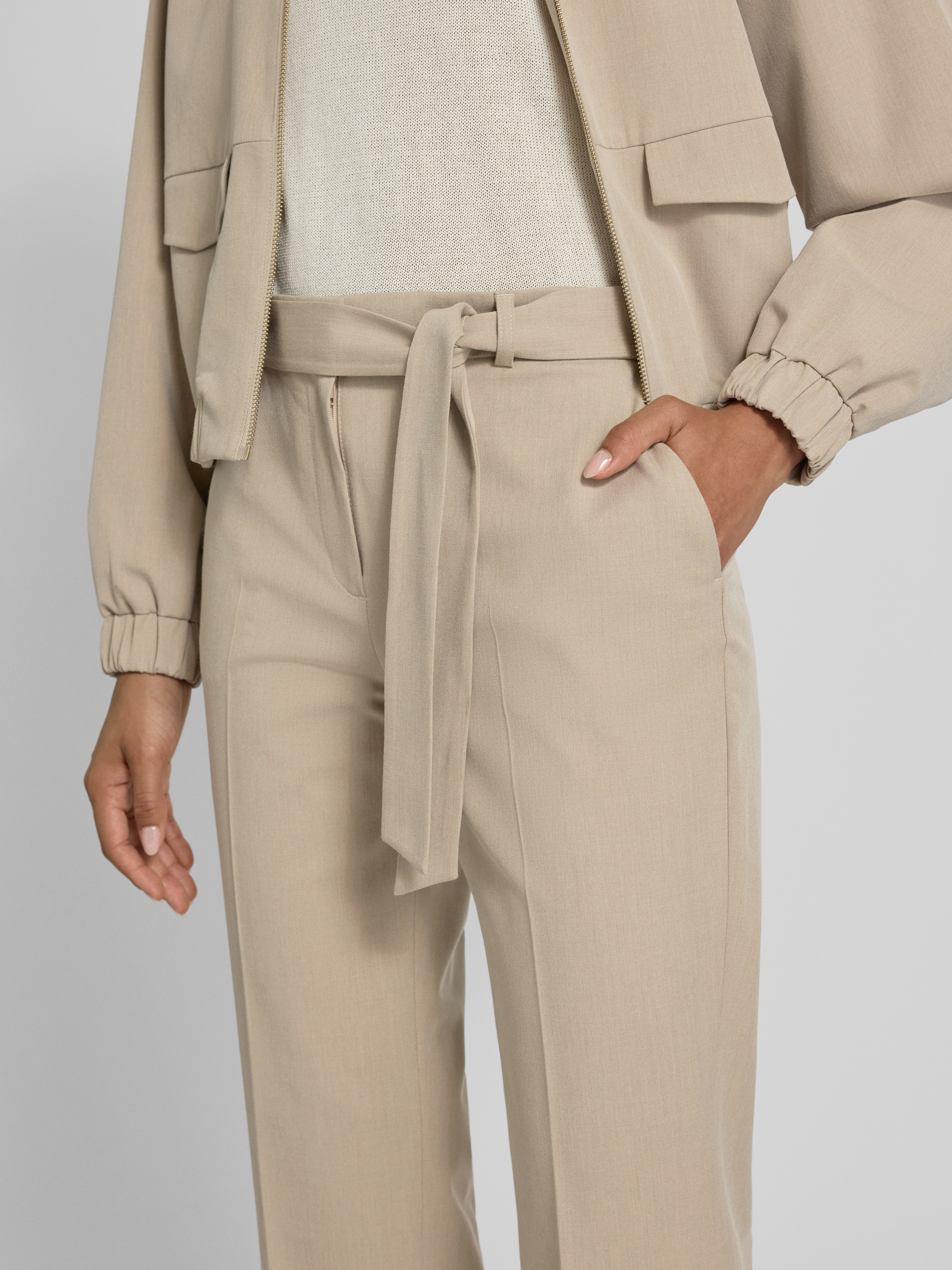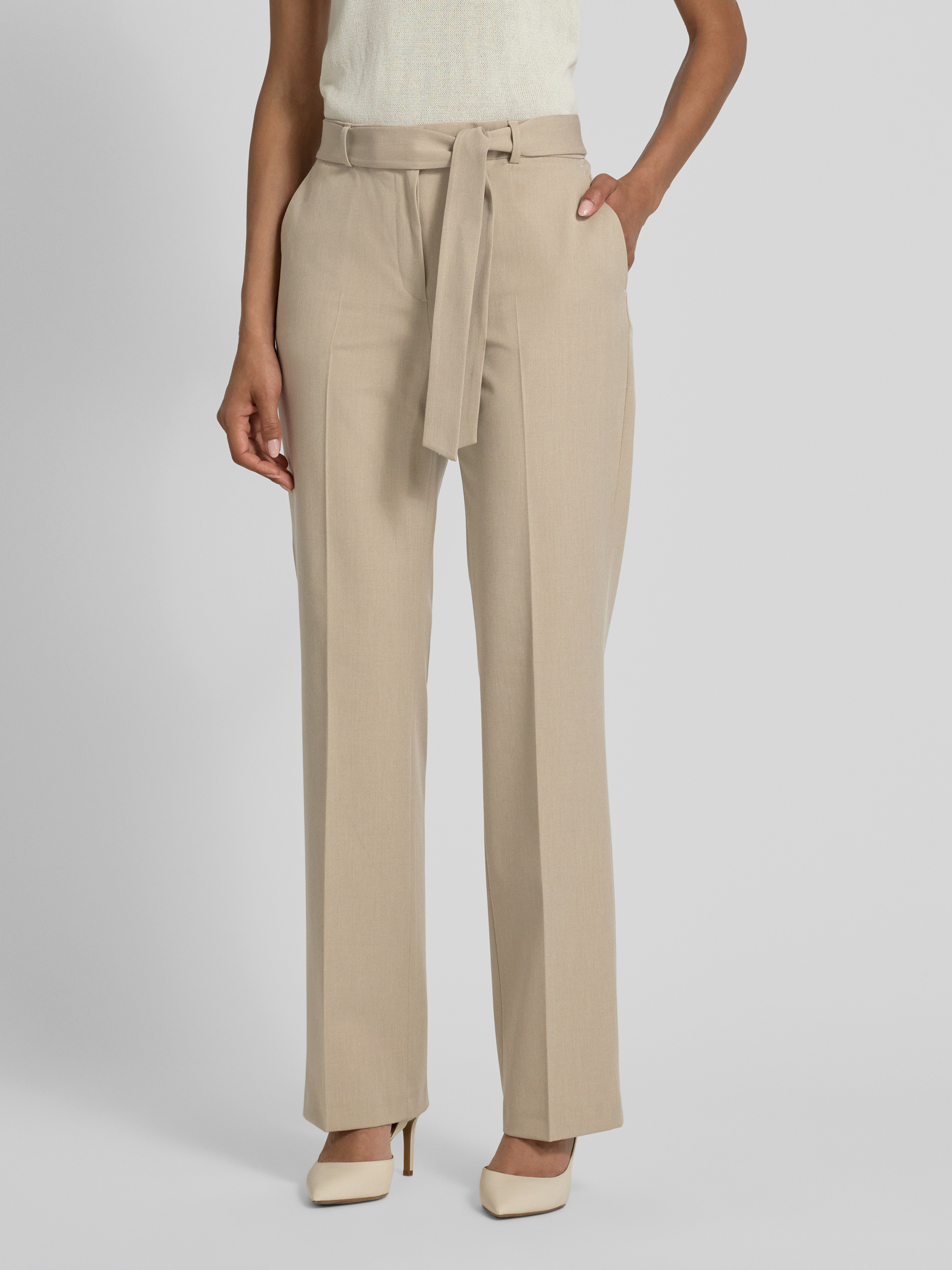 Spodnie do garnituru o kroju straight fit z dodatkiem wiskozy i tasiemką w talii - piaskowy