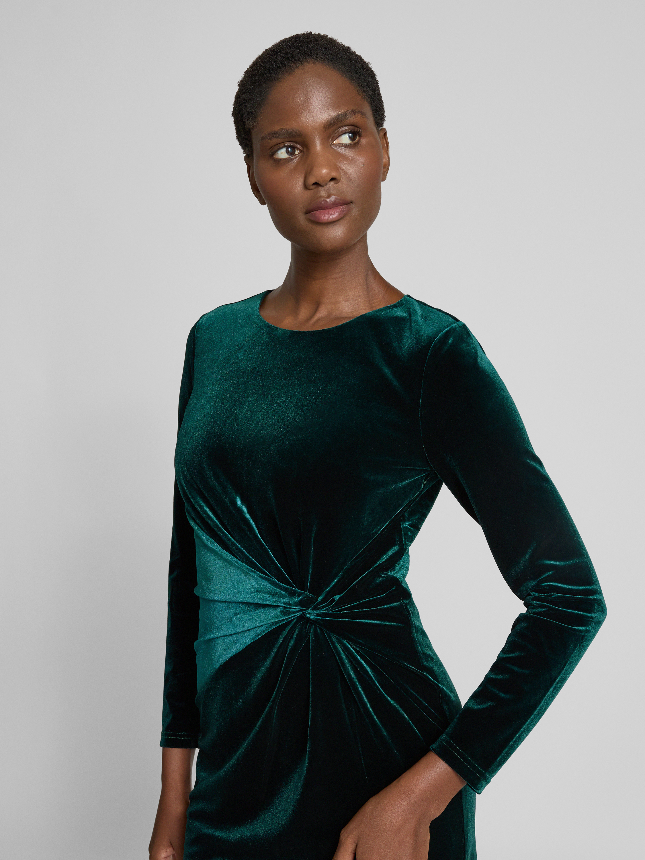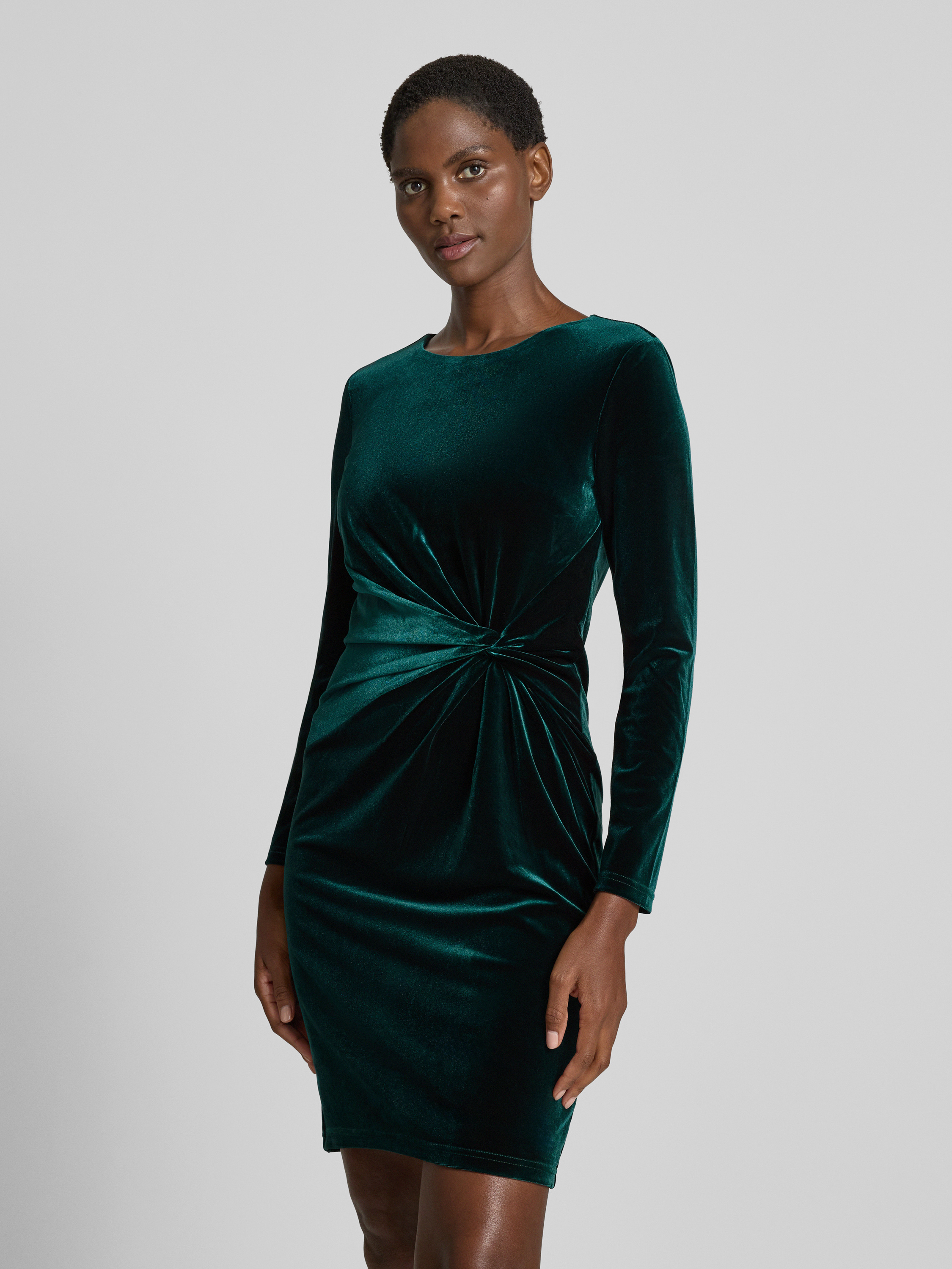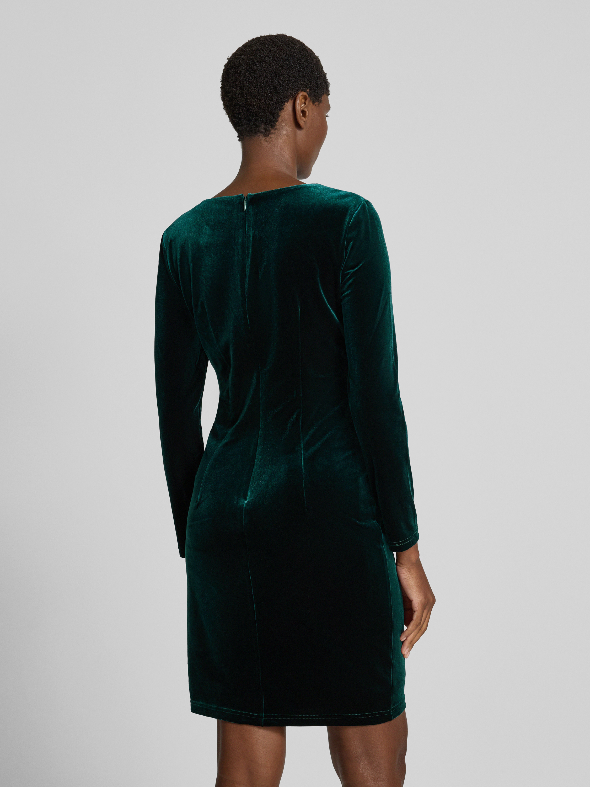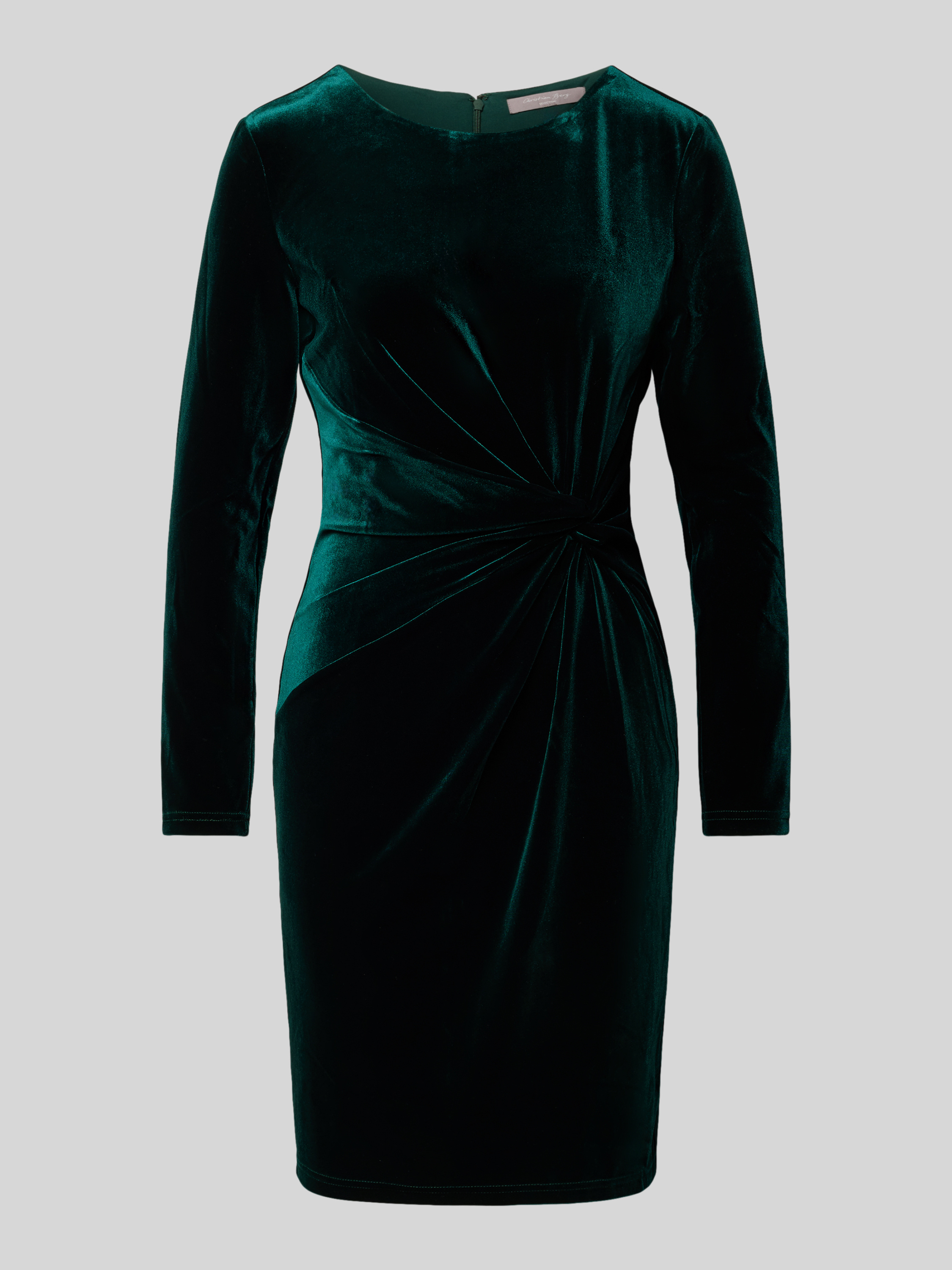 Sukienka o długości do kolan z aksamitu z okrągłym dekoltem - zielony