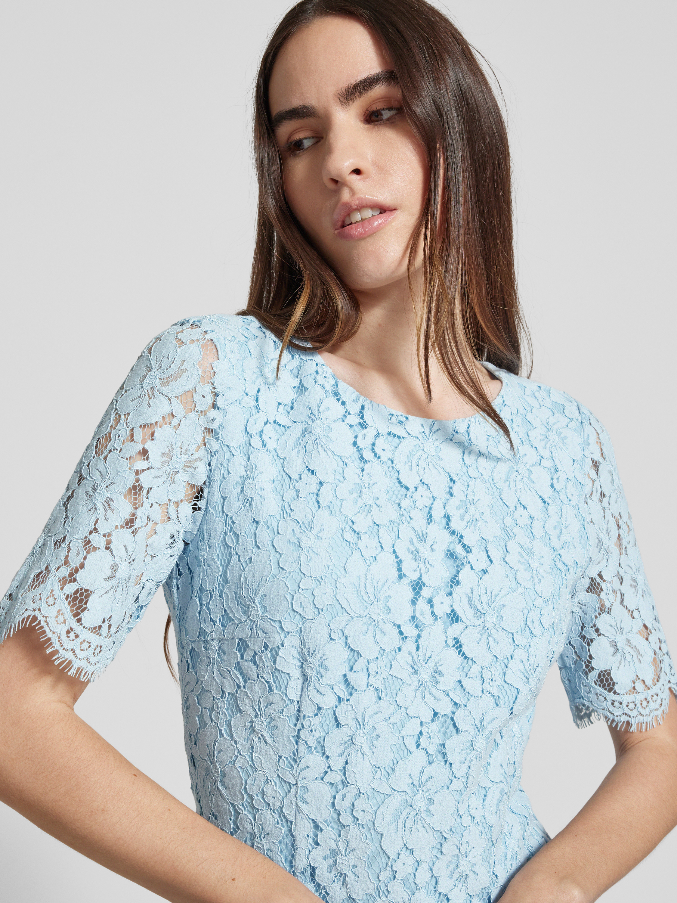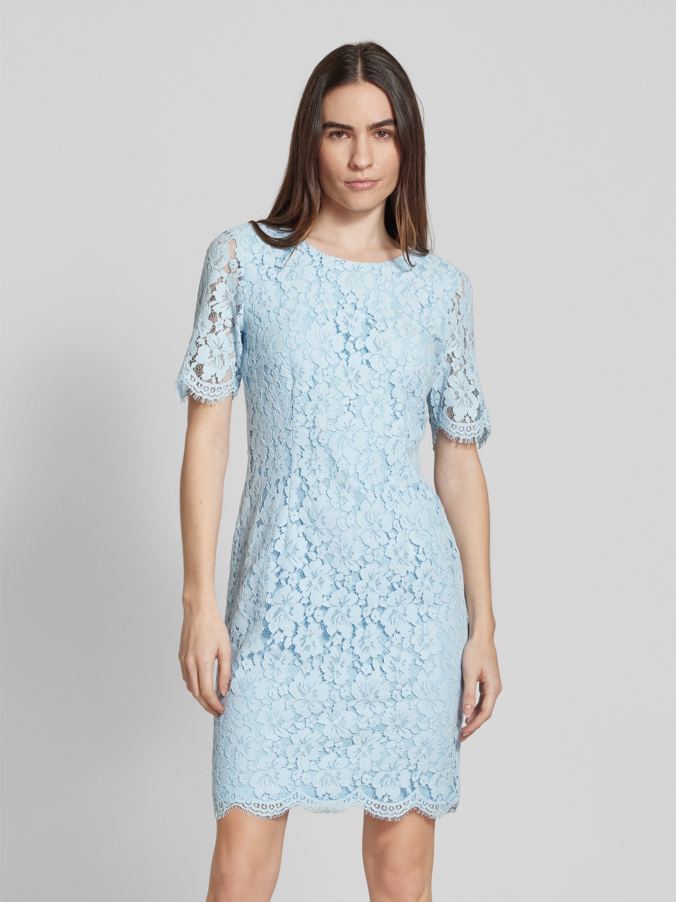 Sukienka o długości do kolan z efektem podpalenia - jasnoniebieski