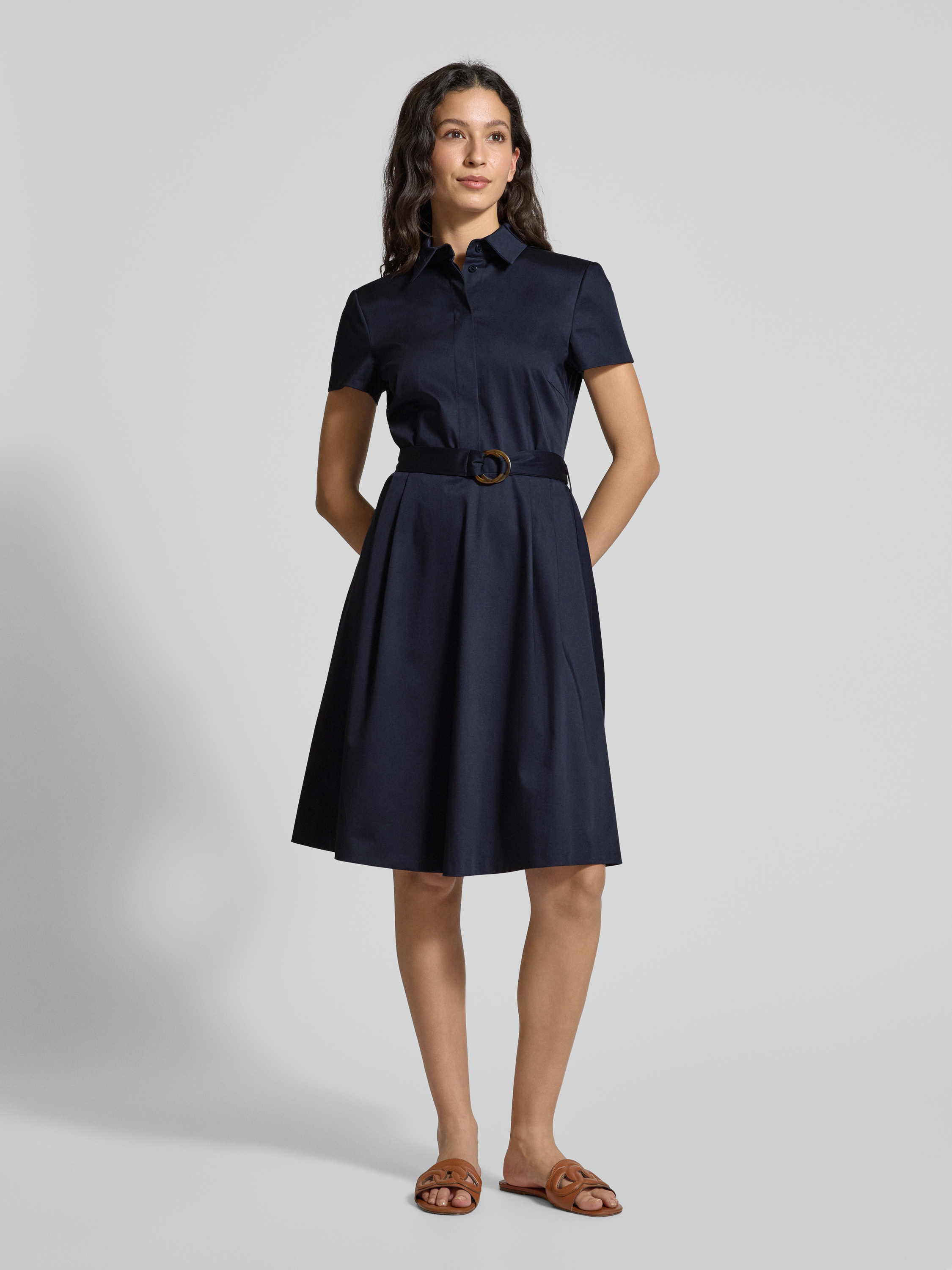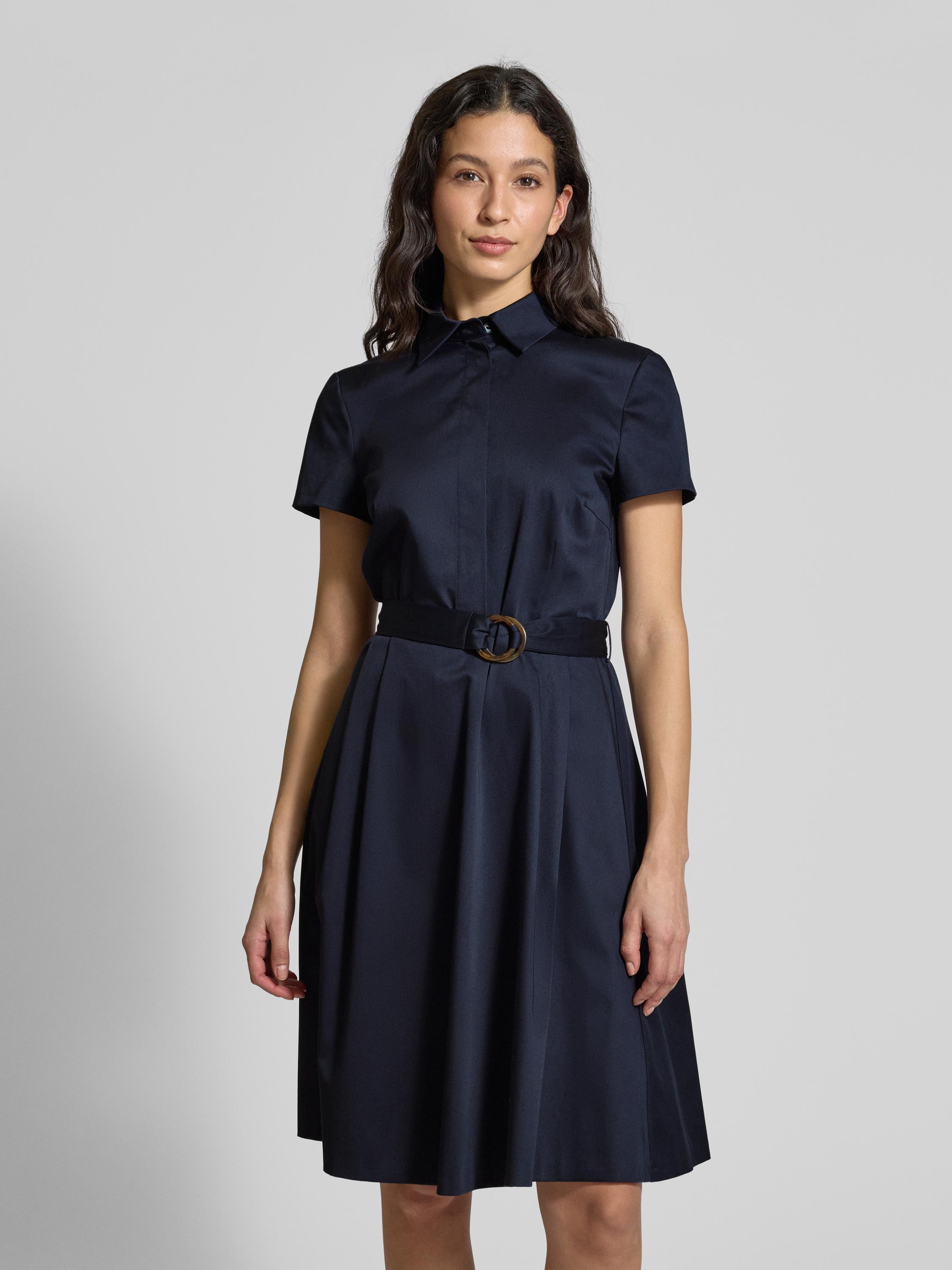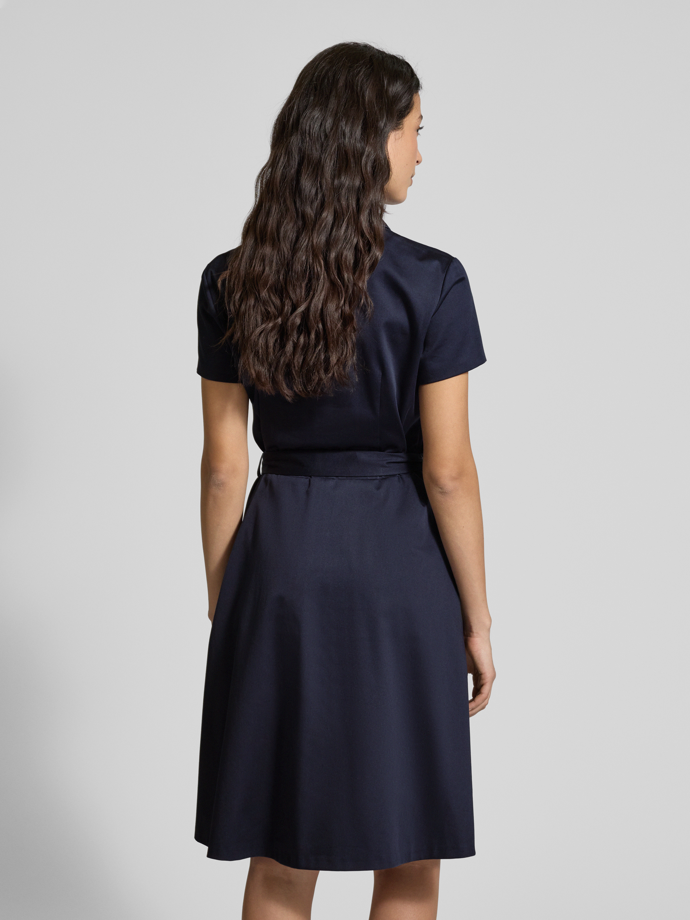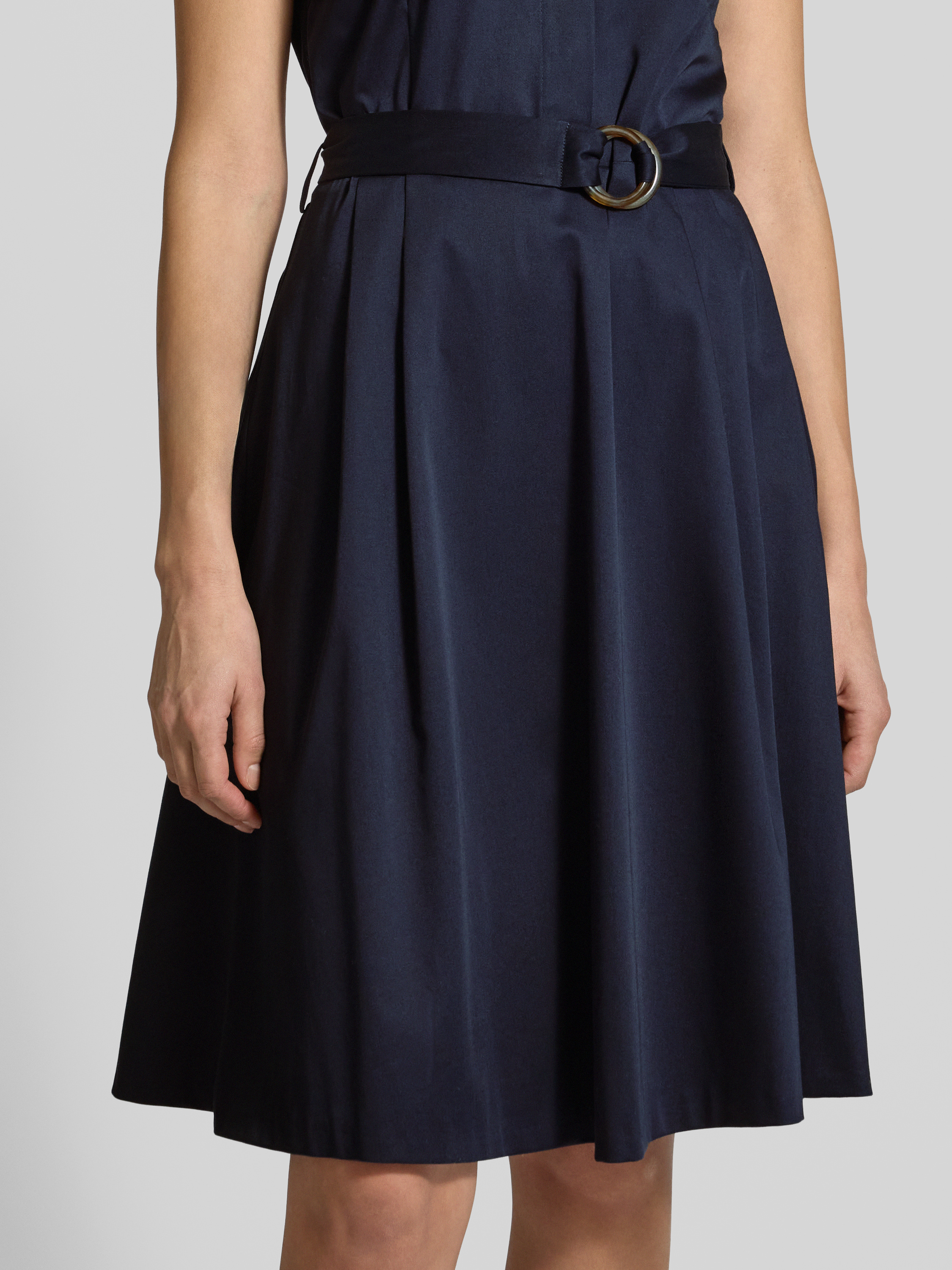 Sukienka o długości do kolan z paskiem w talii - granatowy