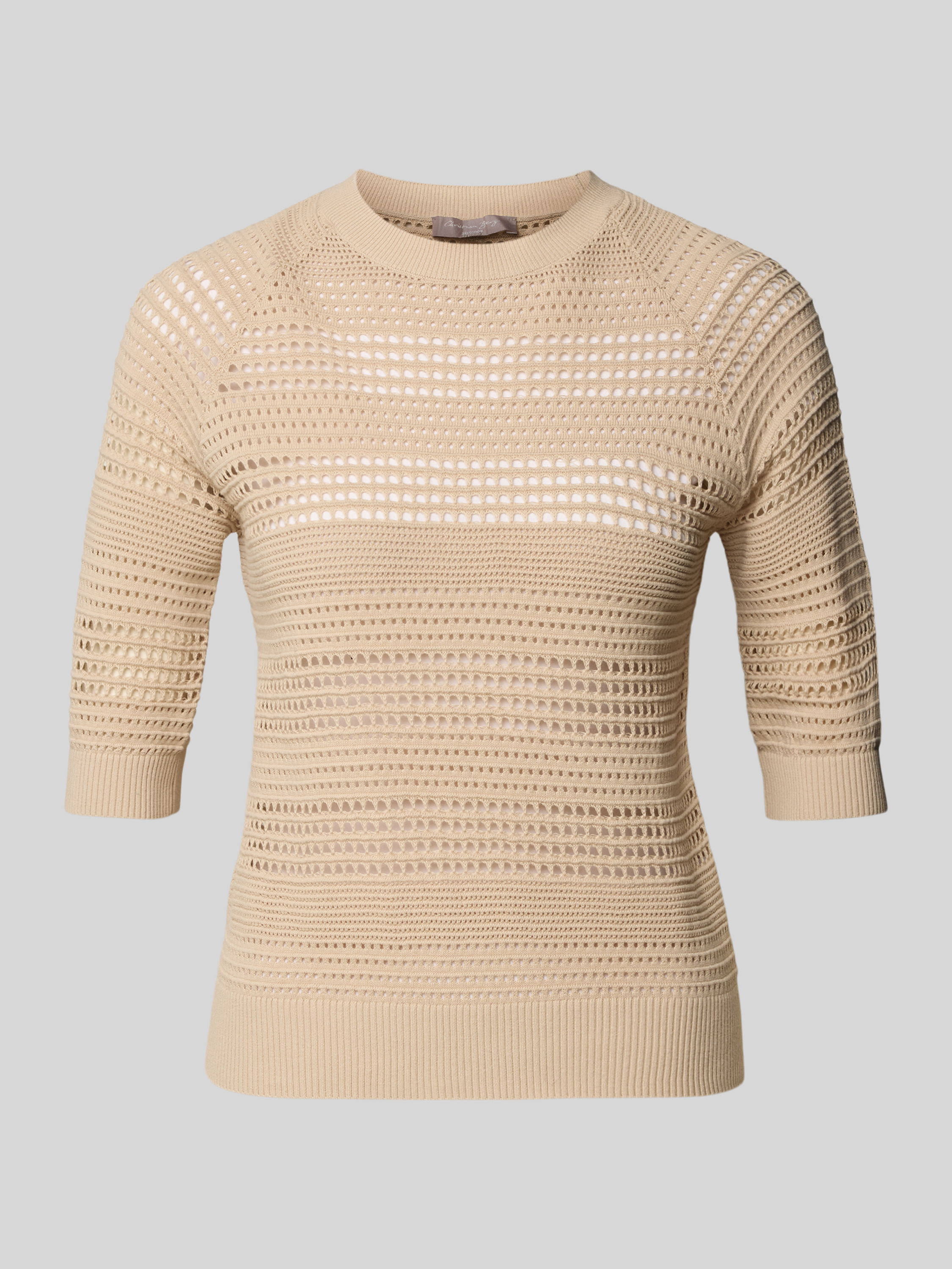Sweter z dzianiny z okrągłym dekoltem - piaskowy