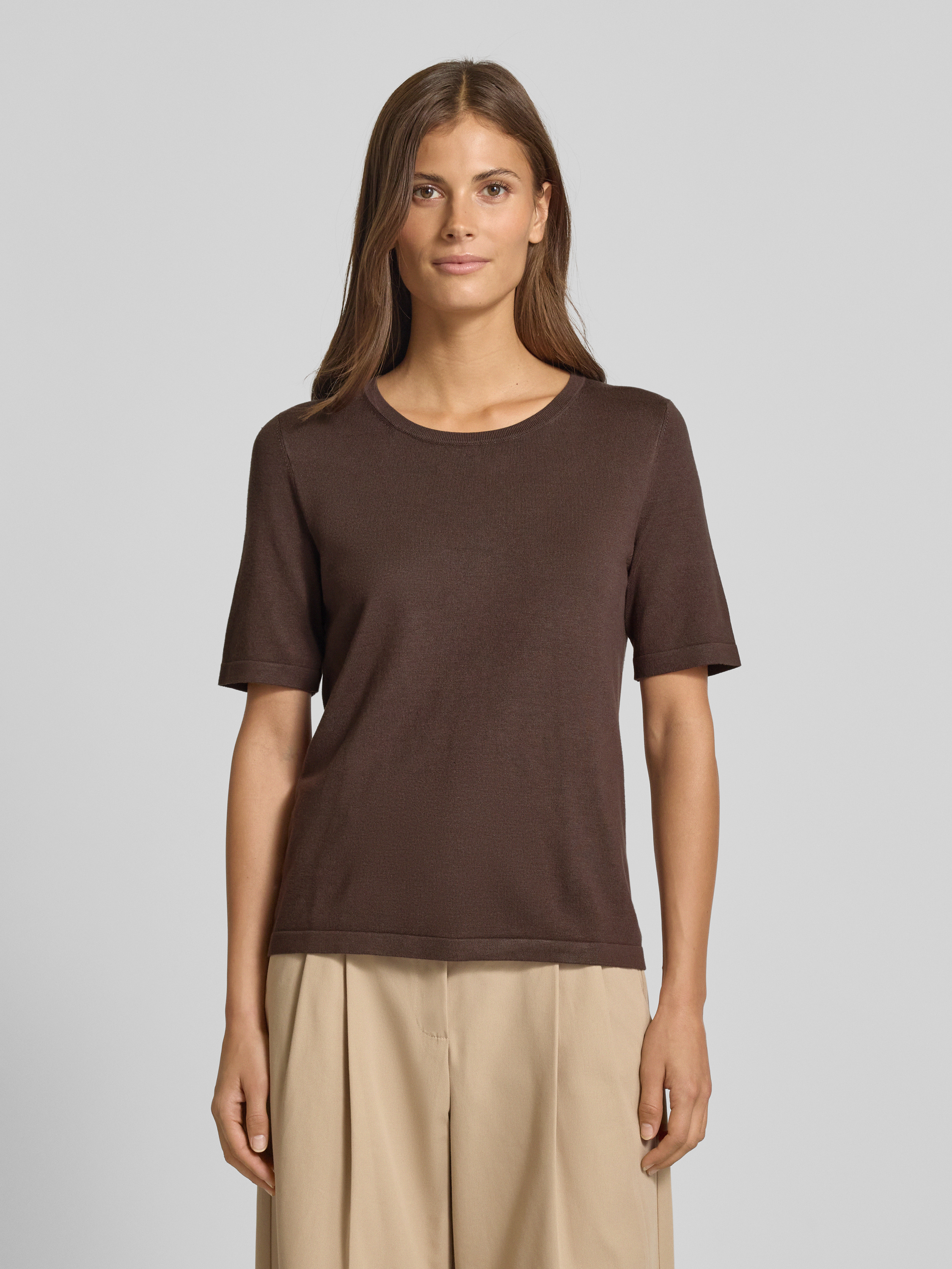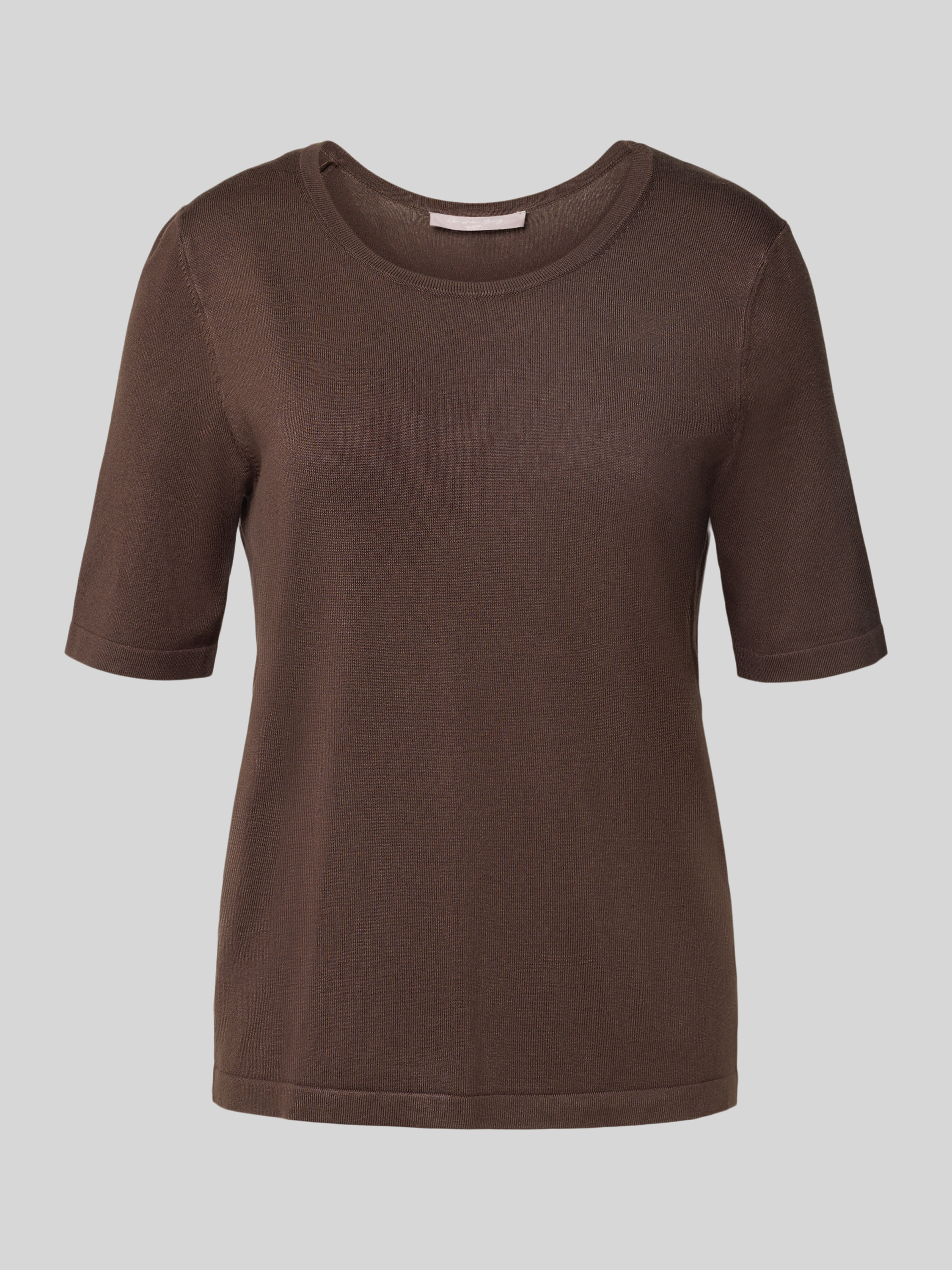 Sweter z dzianiny z rękawem o dł. 1/2 - ciemnobrązowy