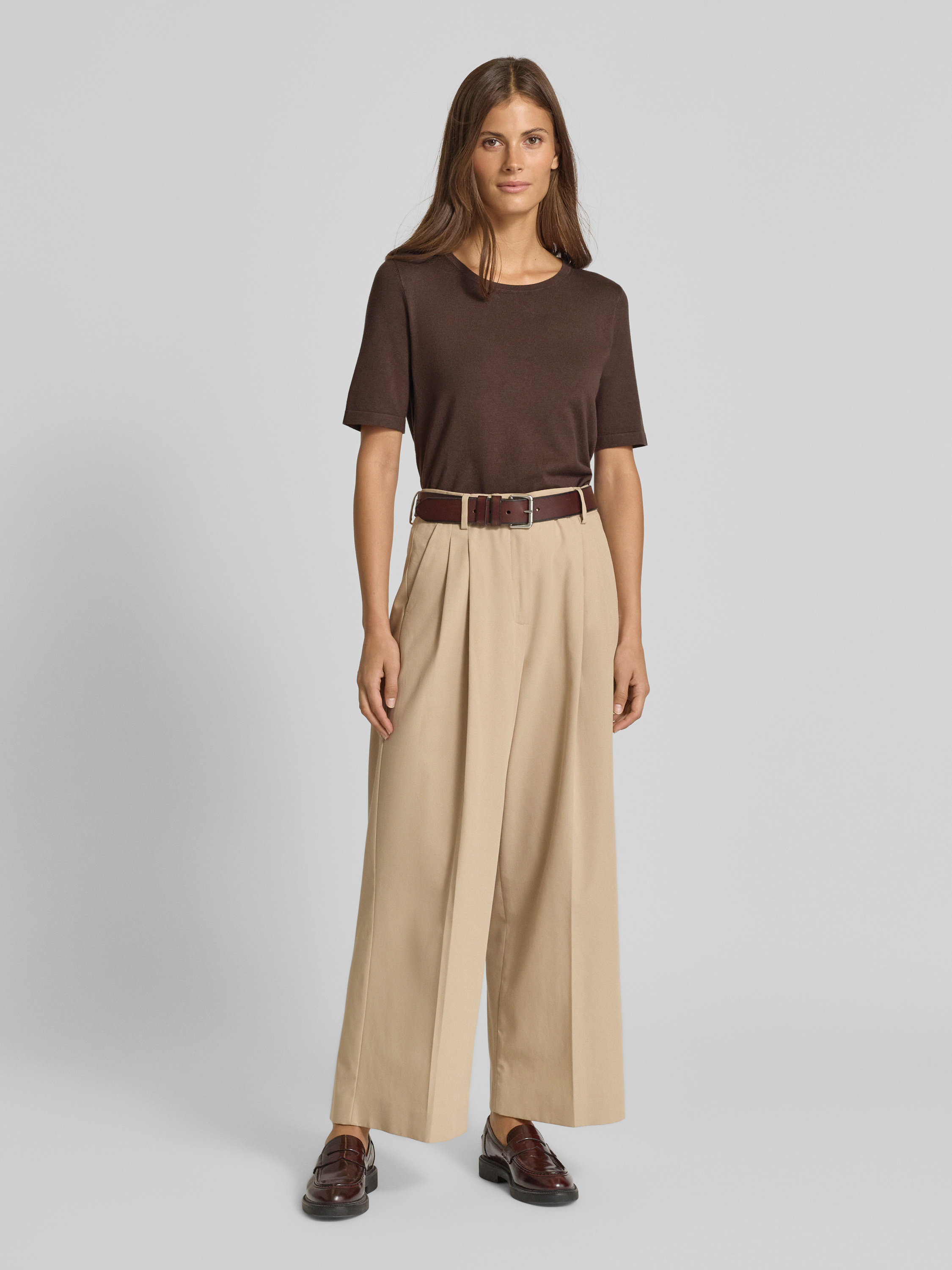 Spodnie z zakładkami w pasie z szeroką nogawką z czystej bawełny model ‘VETTURA’