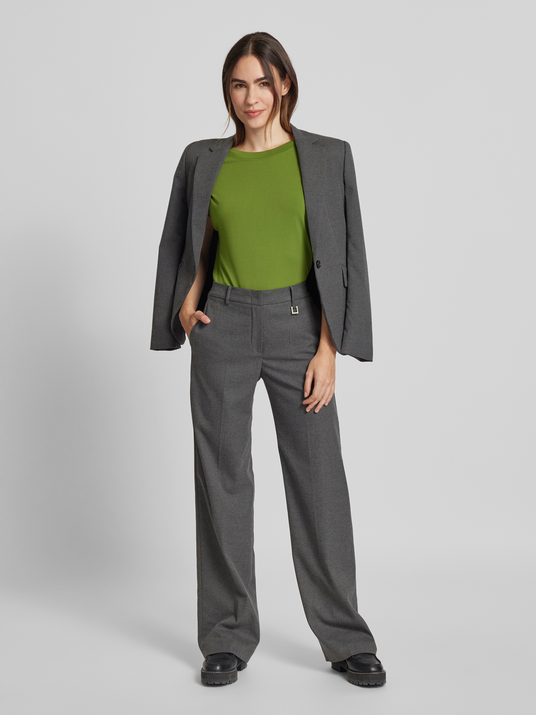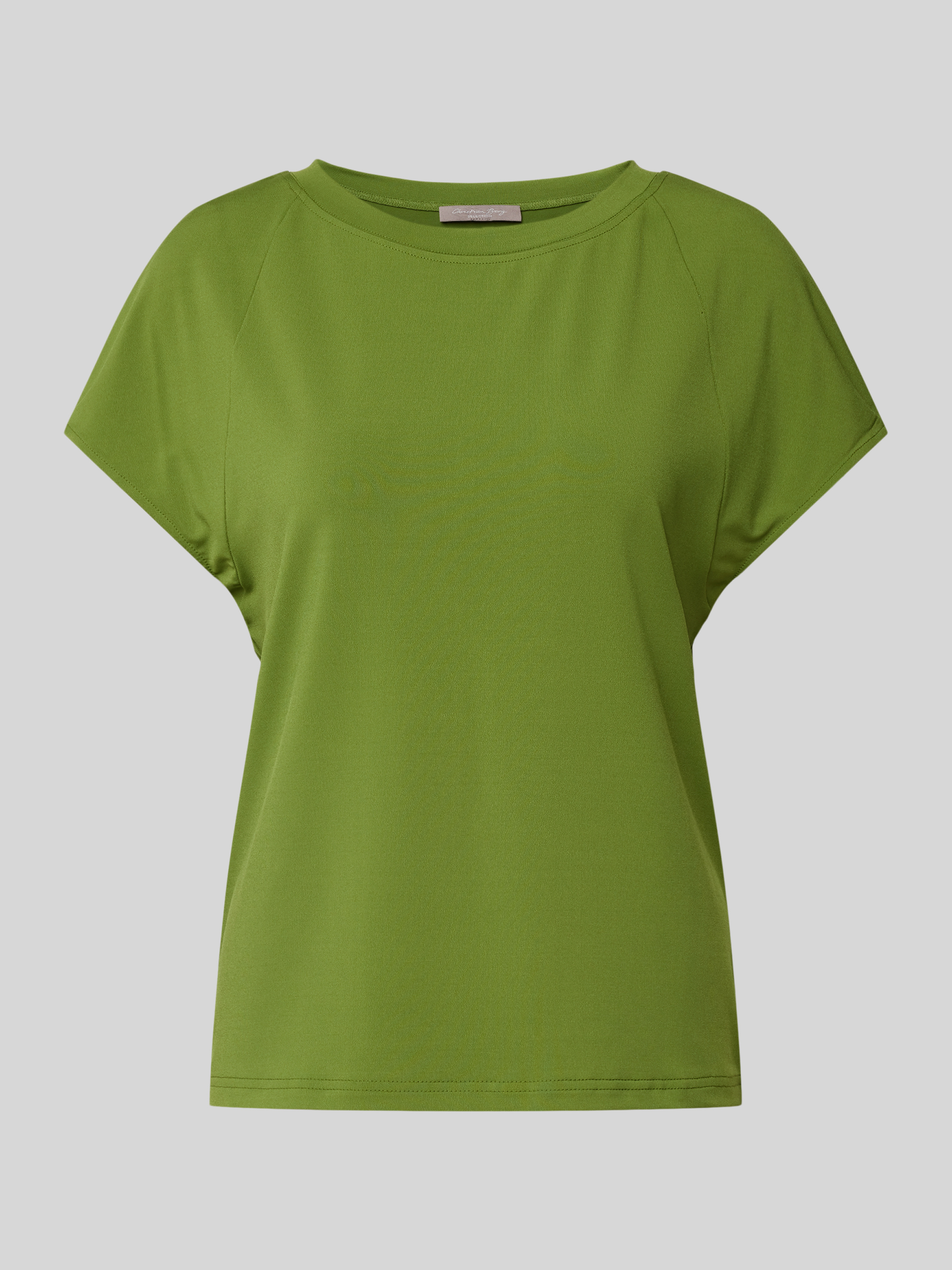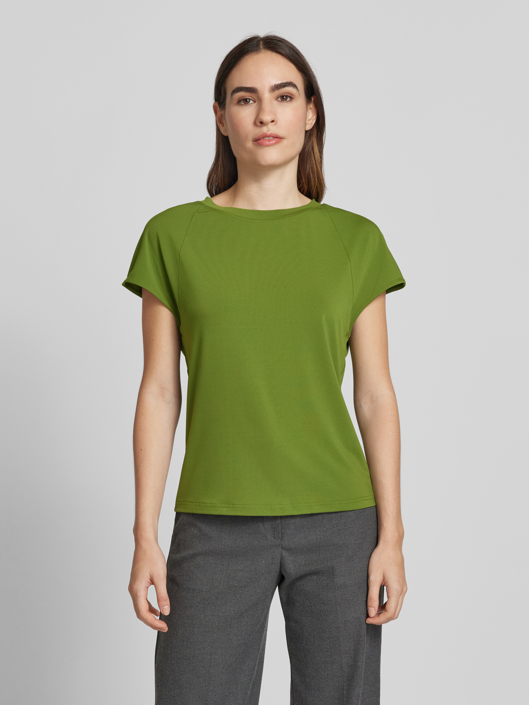 T-shirt z prążkowanym okrągłym dekoltem - zielony