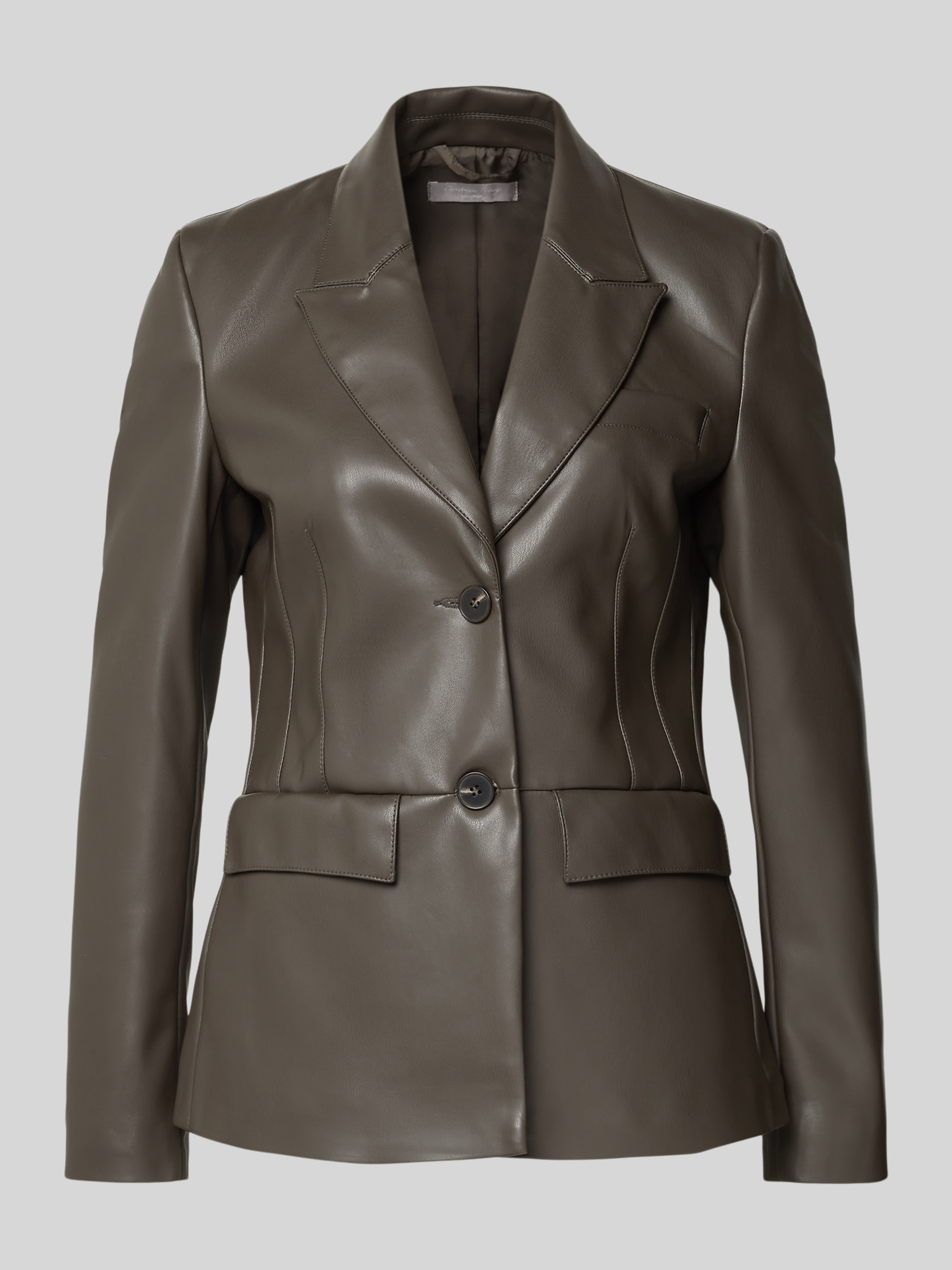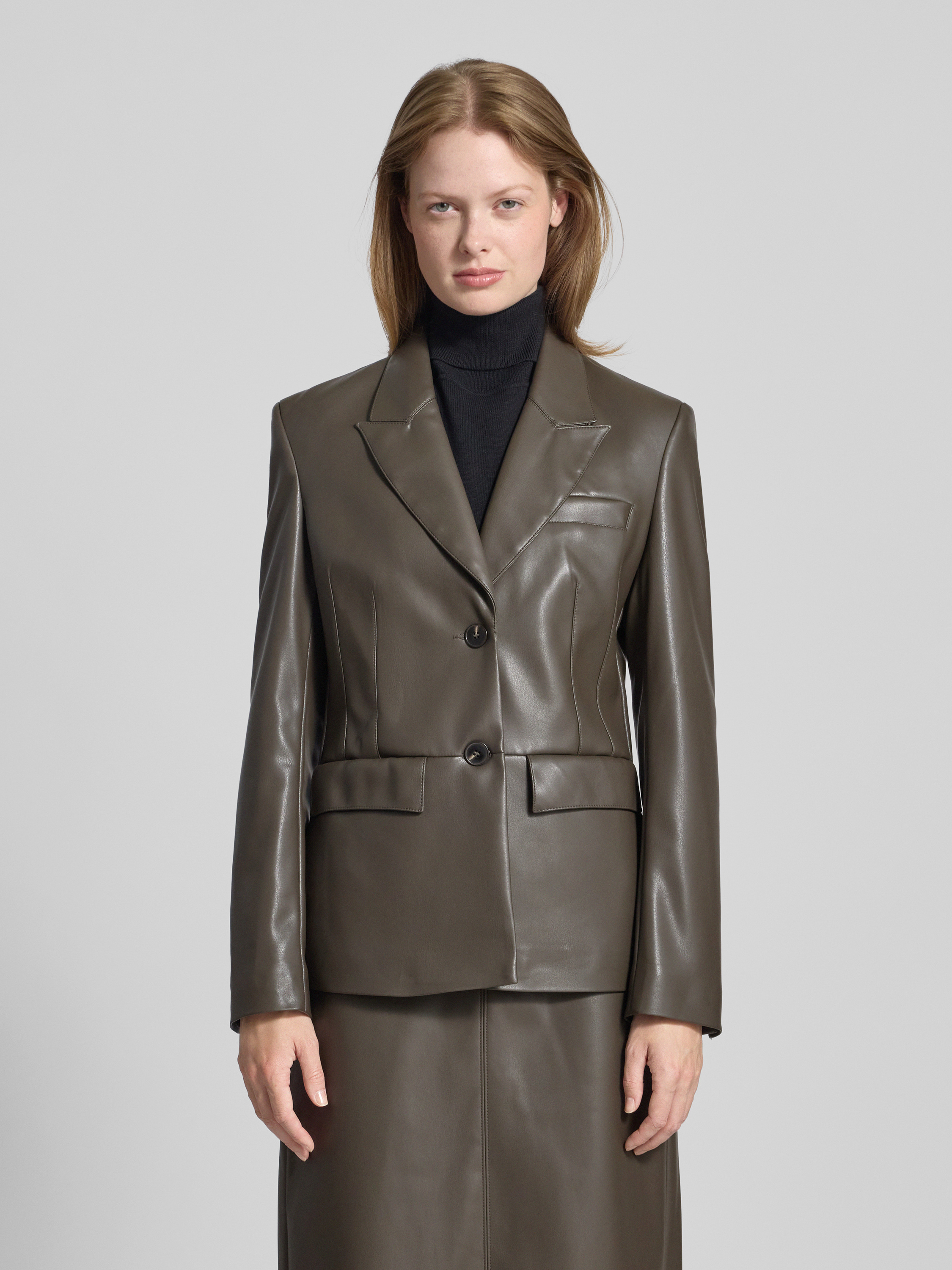 Żakiet o kroju slim fit z imitacji skóry z kieszeniami z patką - ciemnobrązowy