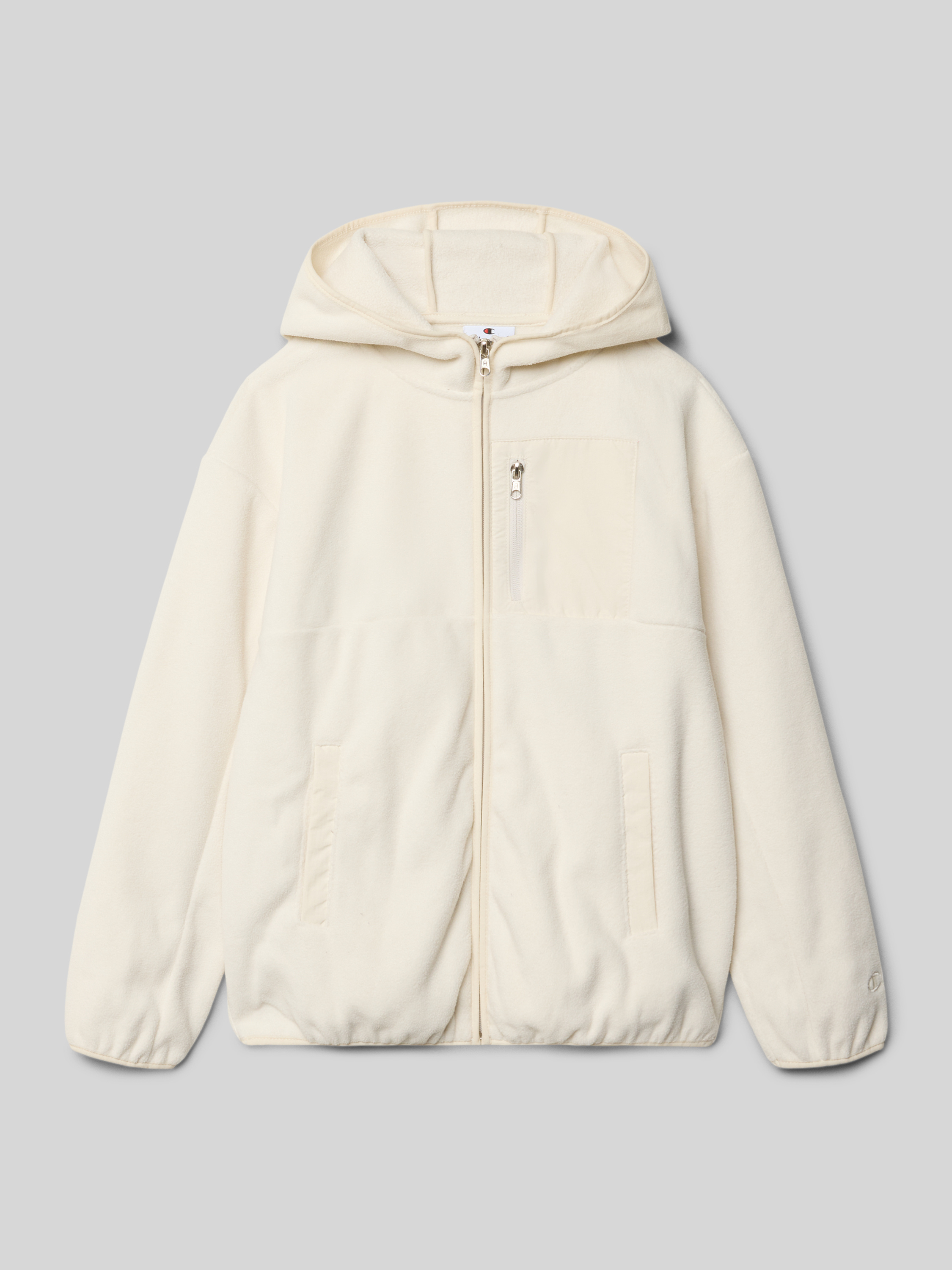 Bluza rozpinana z kapturem i wpuszczanymi kieszeniami - écru