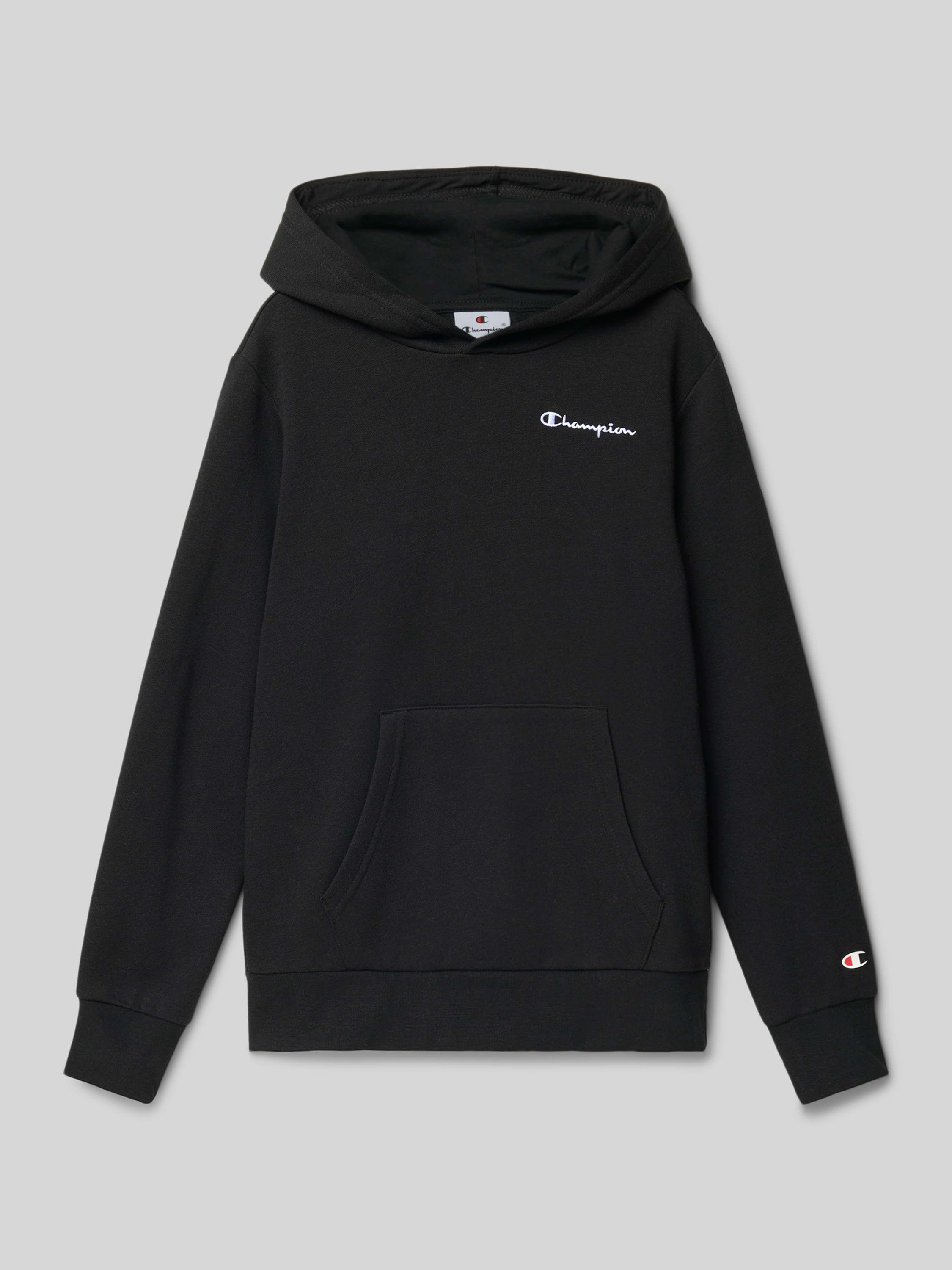 Bluza z kapturem, wyhaftowanym logo i kieszenią kangurką - czarny