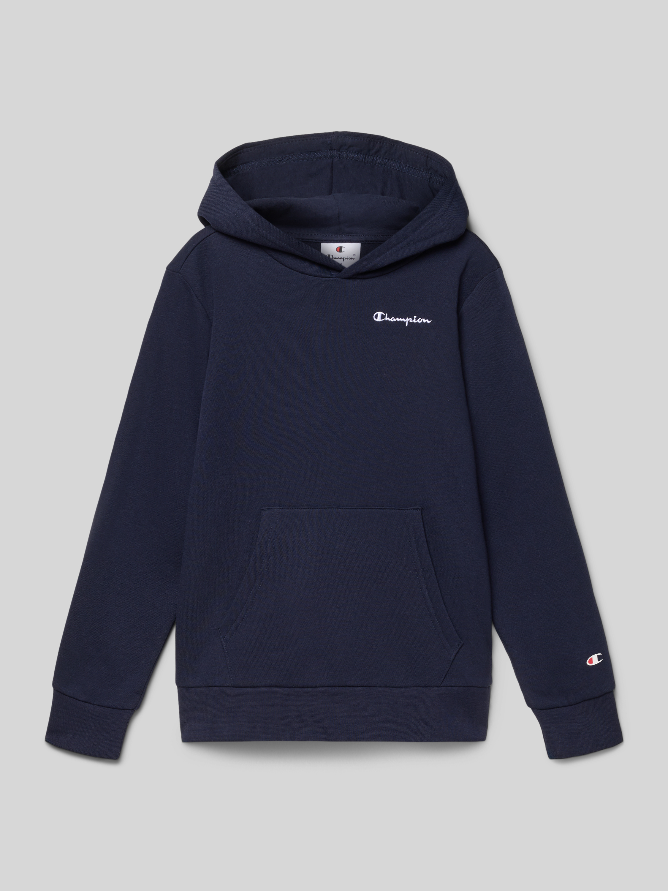 Bluza z kapturem, wyhaftowanym logo i kieszenią kangurką - granatowy