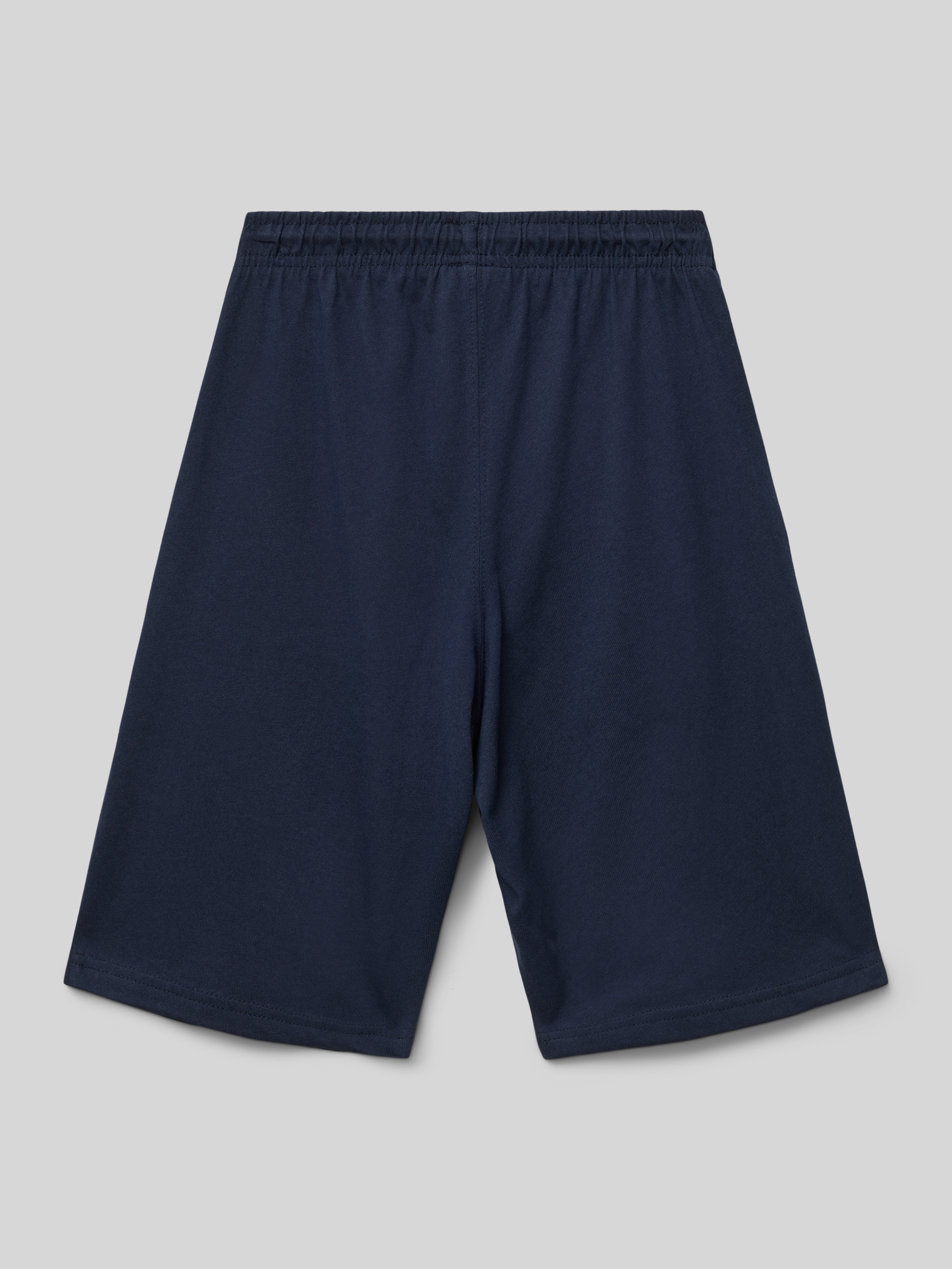 Szorty z dzianiny dresowej o kroju regular fit z nadrukiem z logo - granatowy