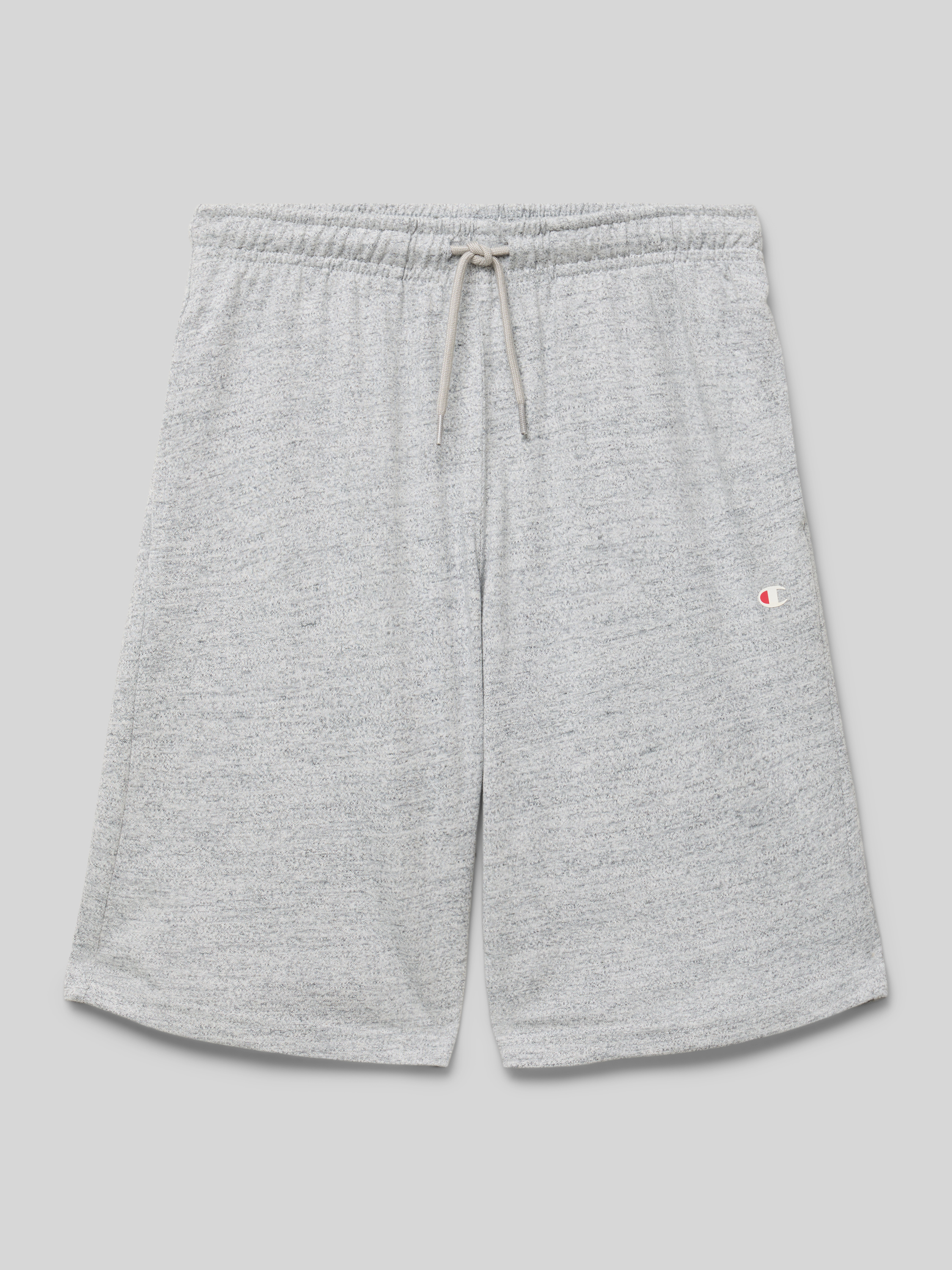 Szorty z dzianiny dresowej o kroju regular fit z nadrukiem z logo - średnioszary melanż