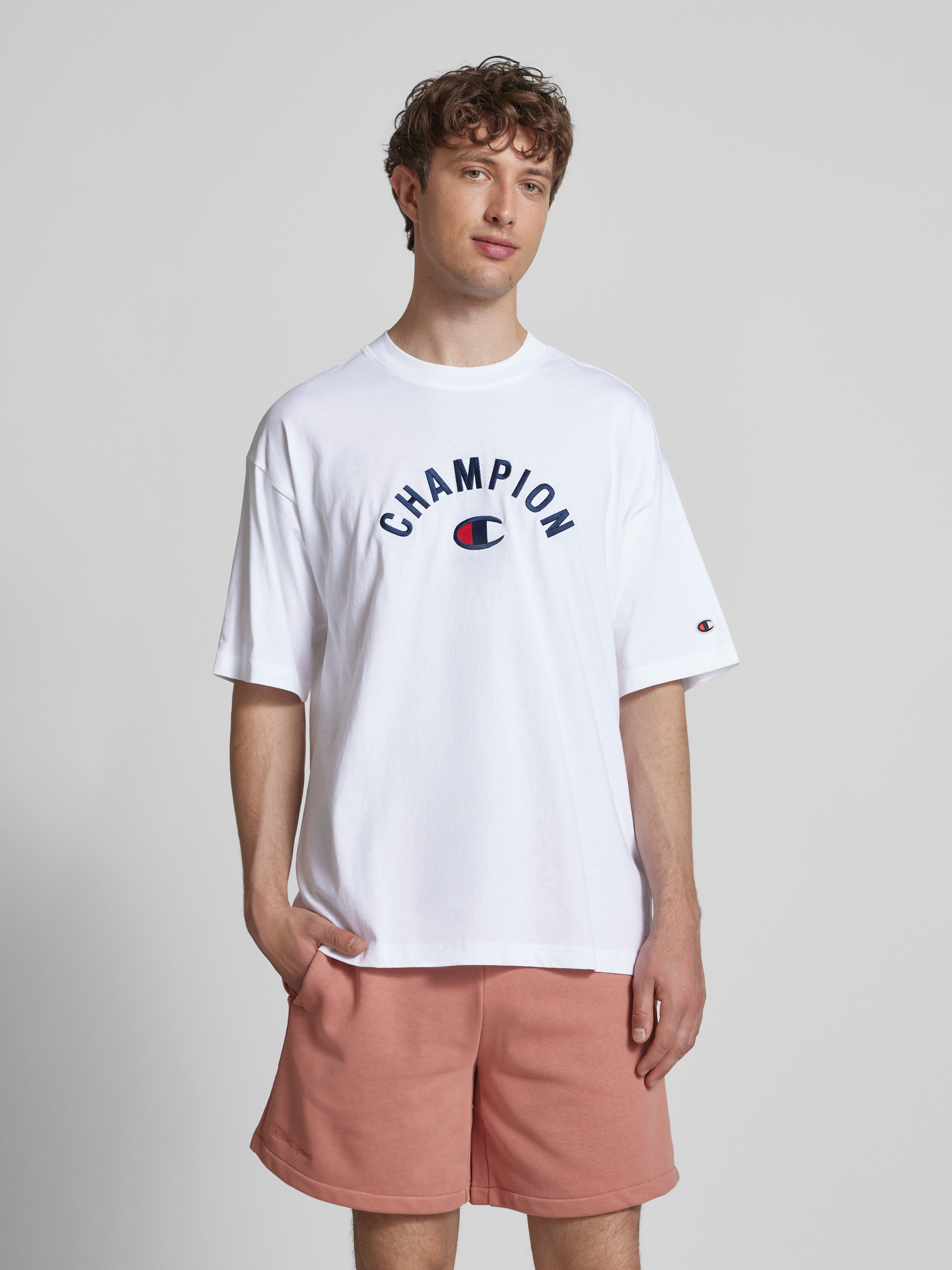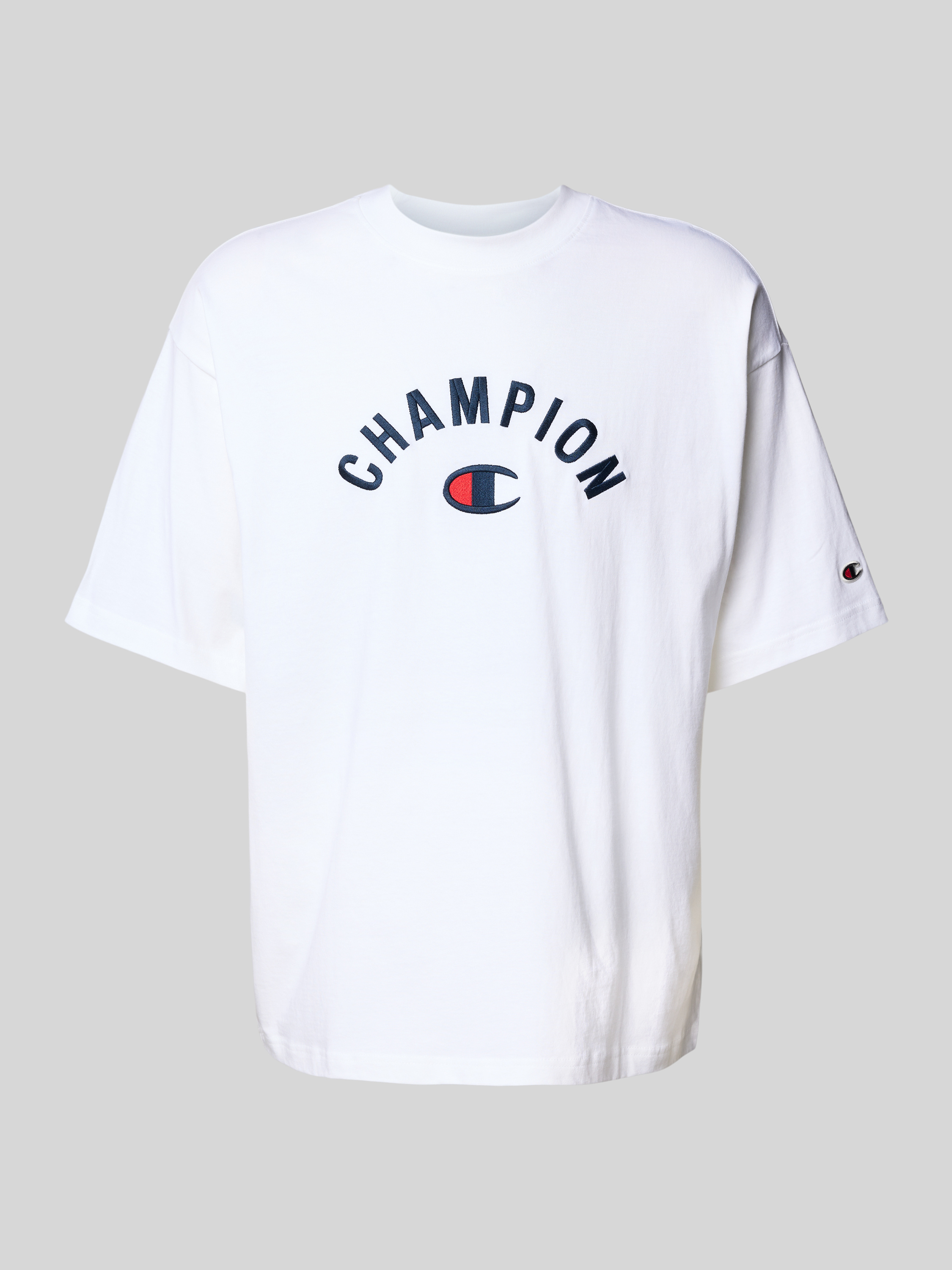 T-shirt o kroju relaxed fit z wyhaftowanym logo - biały