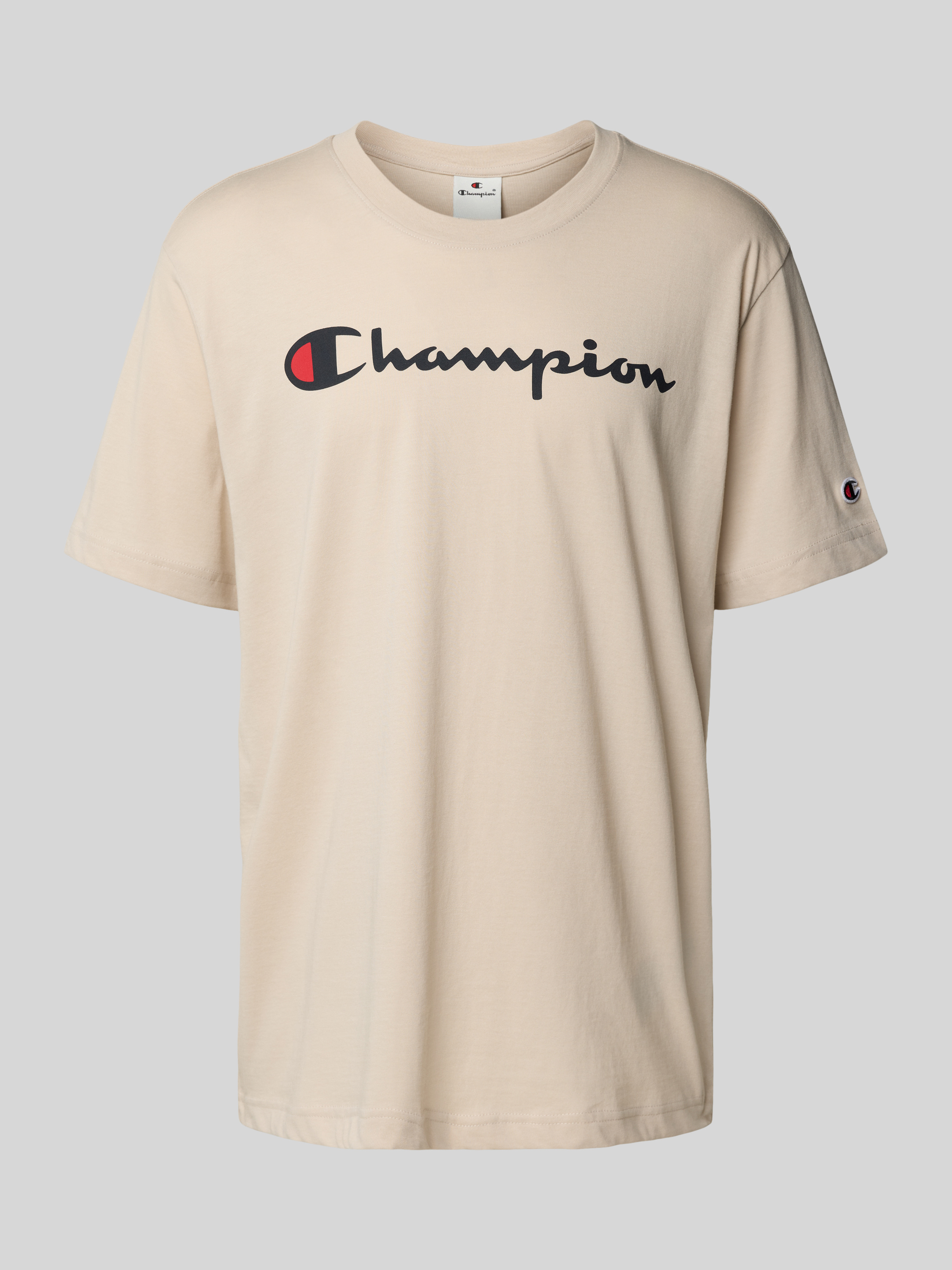 T-shirt z logo i okrągłym dekoltem - beżowy