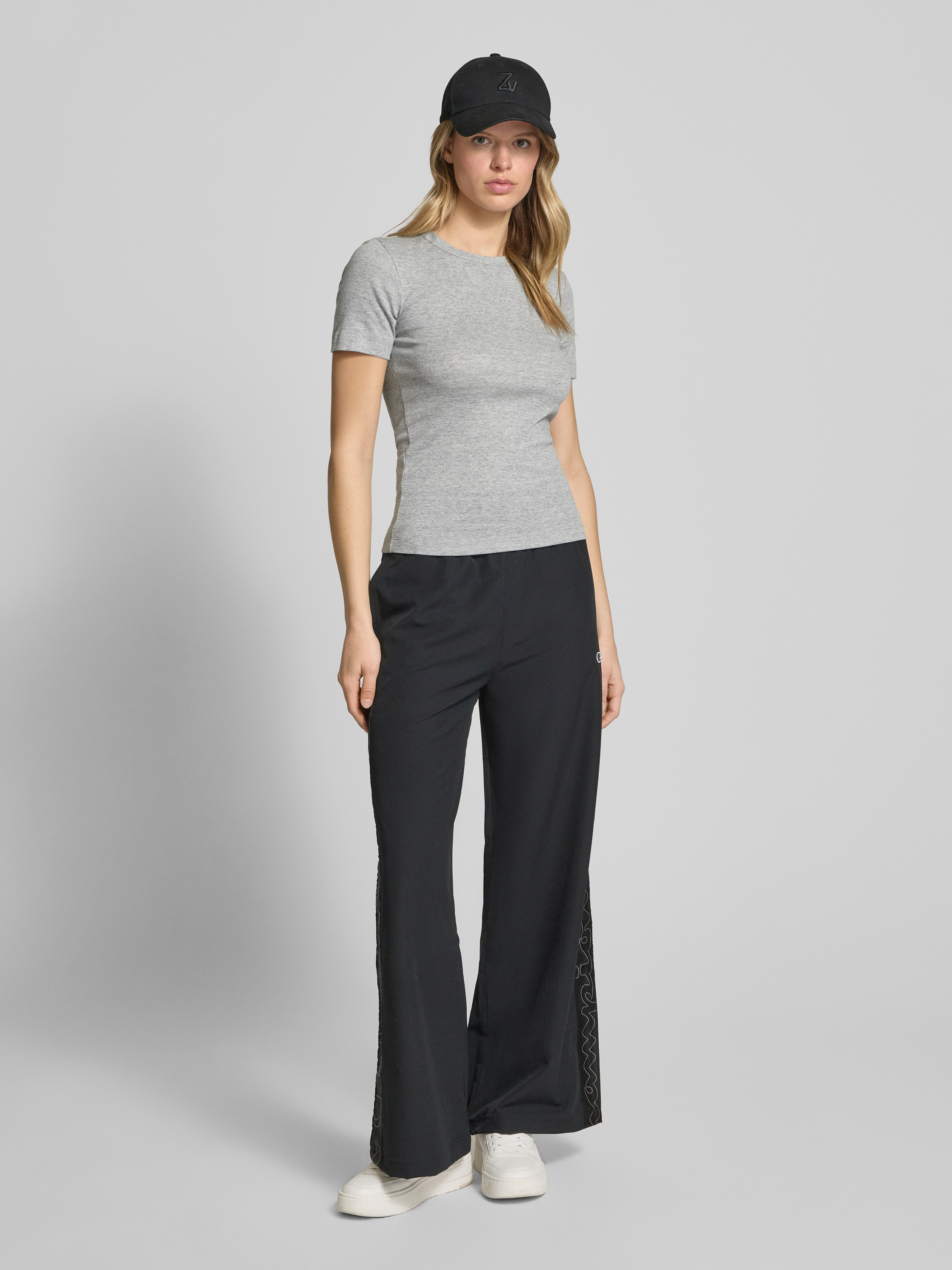 Spodnie typu track pants z szeroką nogawką i lampasami