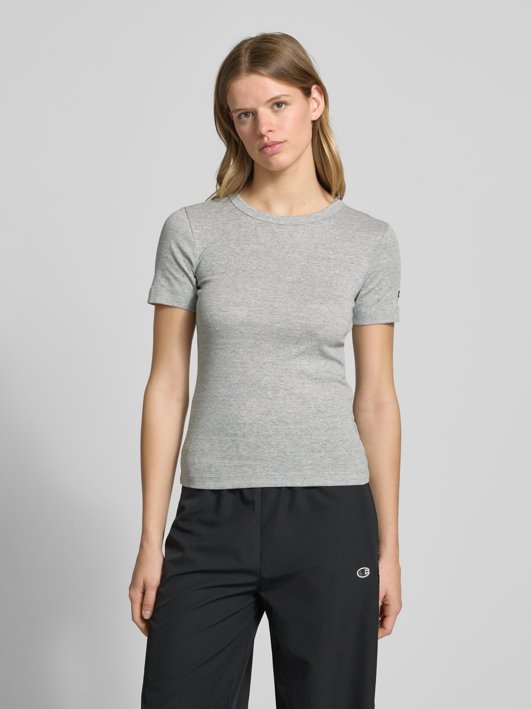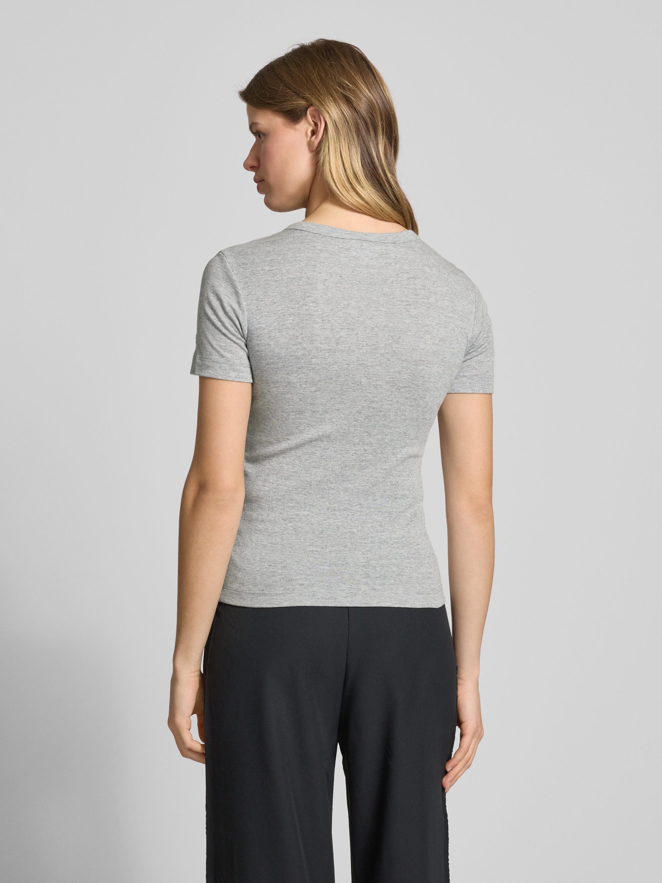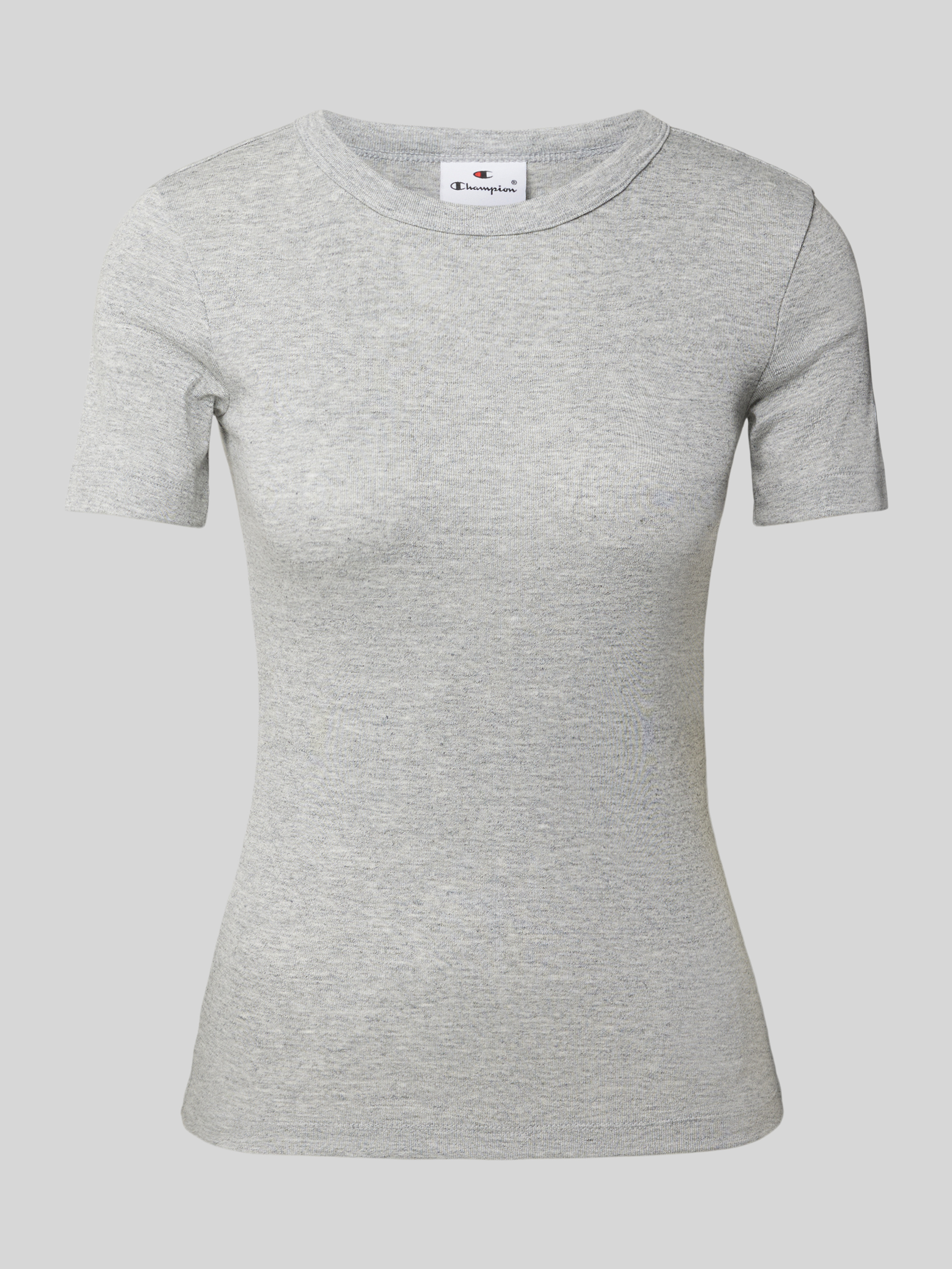 T-shirt z prążkowanym okrągłym dekoltem - jasnoszary