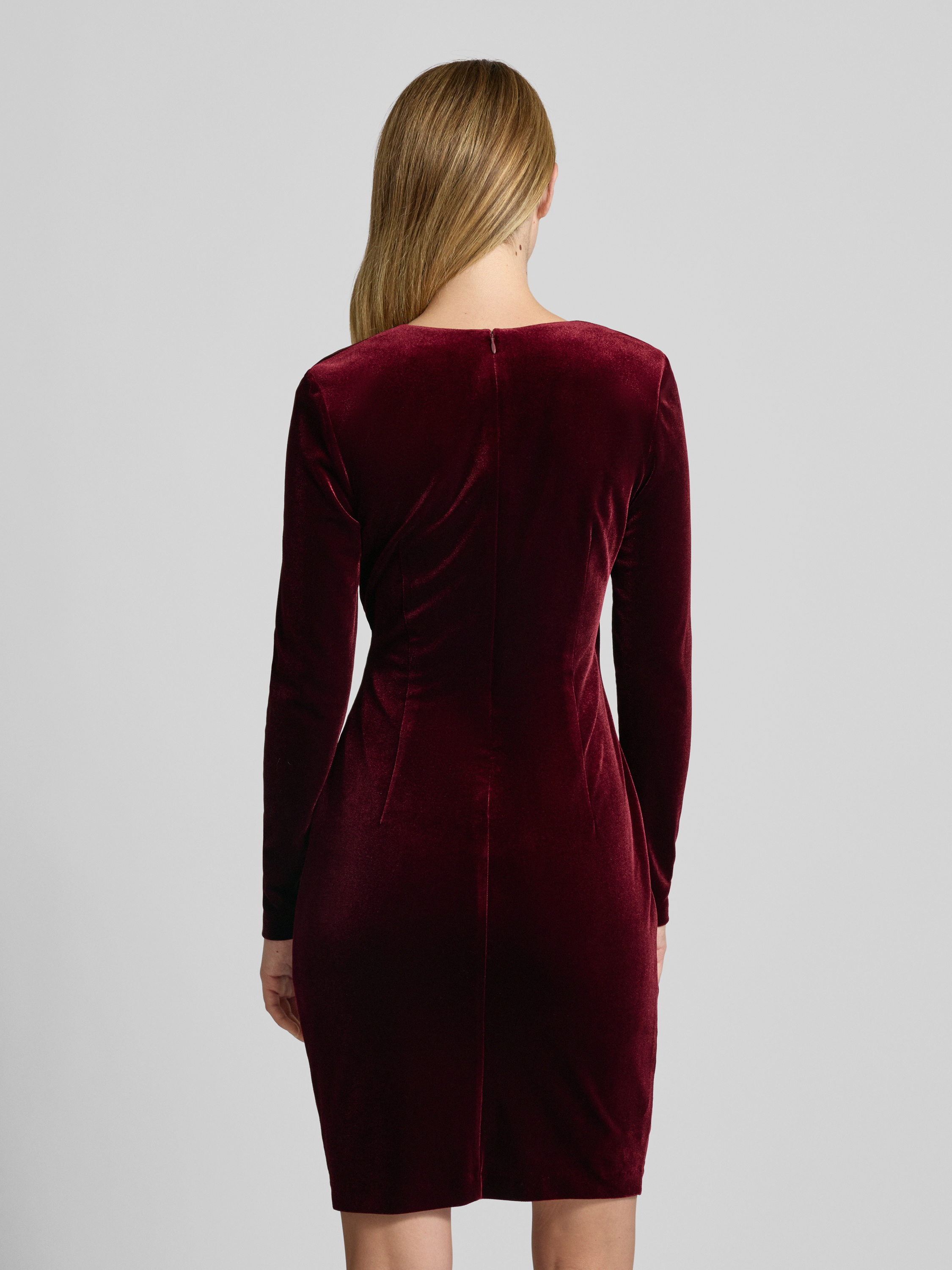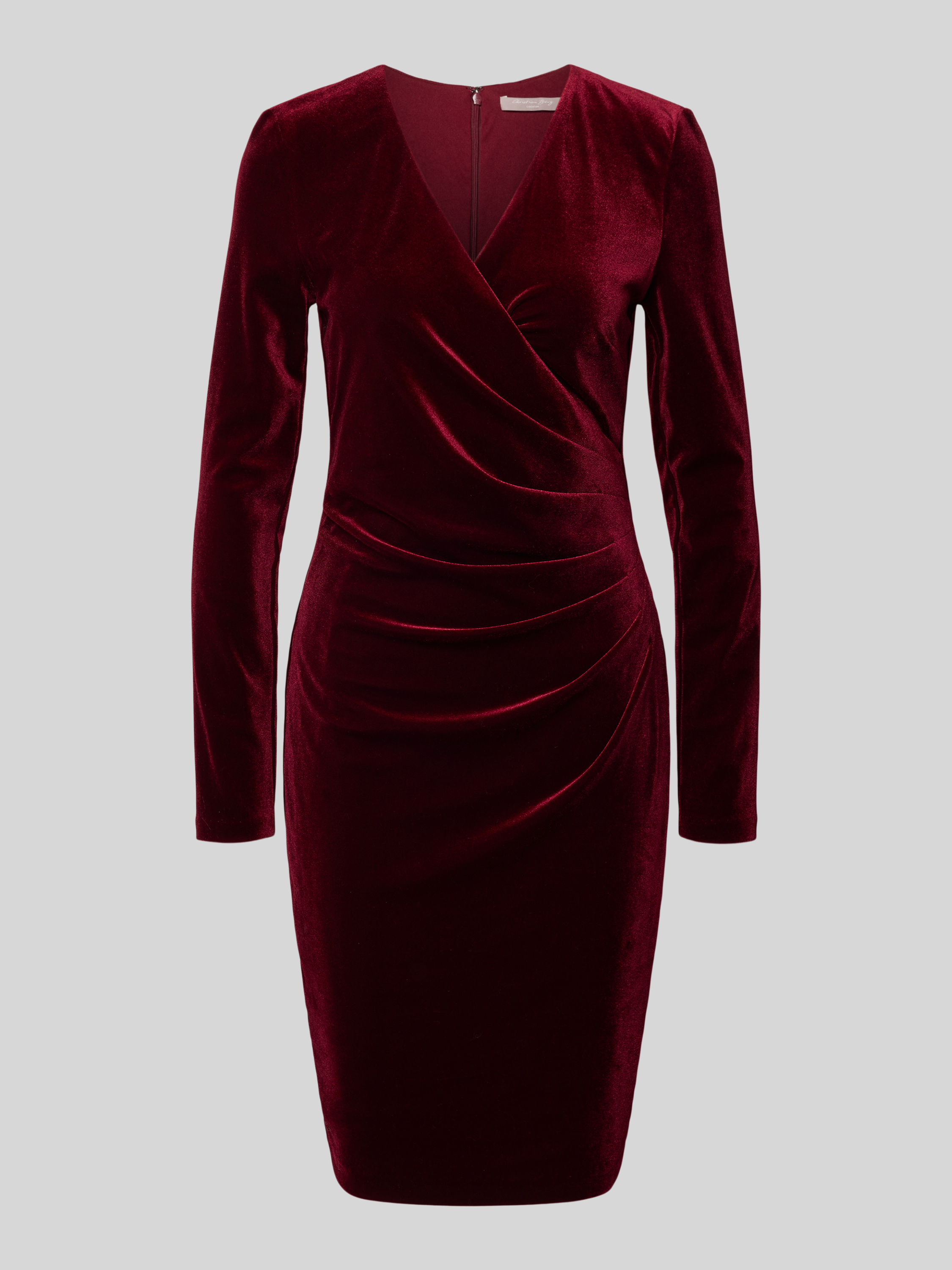 Sukienka koktajlowa o długości do kolan z dekoltem w serek - bordowy melanż