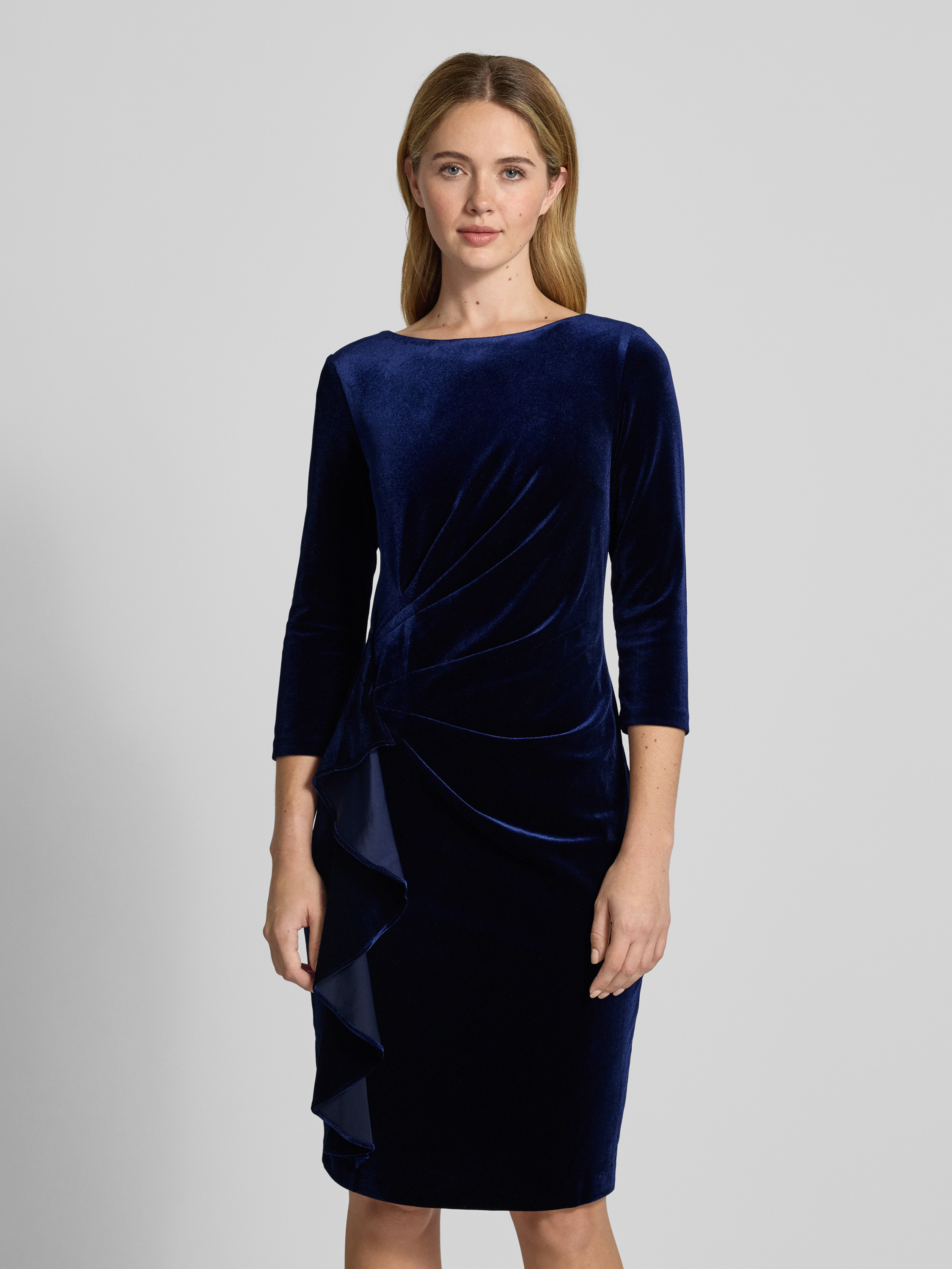 Sukienka koktajlowa o długości do kolan z okrągłym dekoltem - ciemnoniebieski melanż