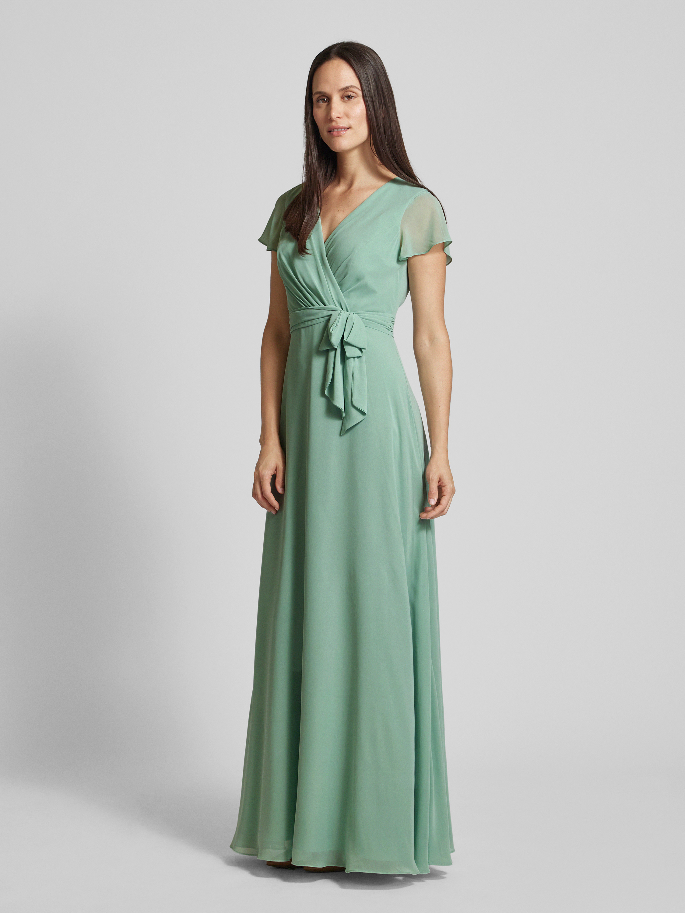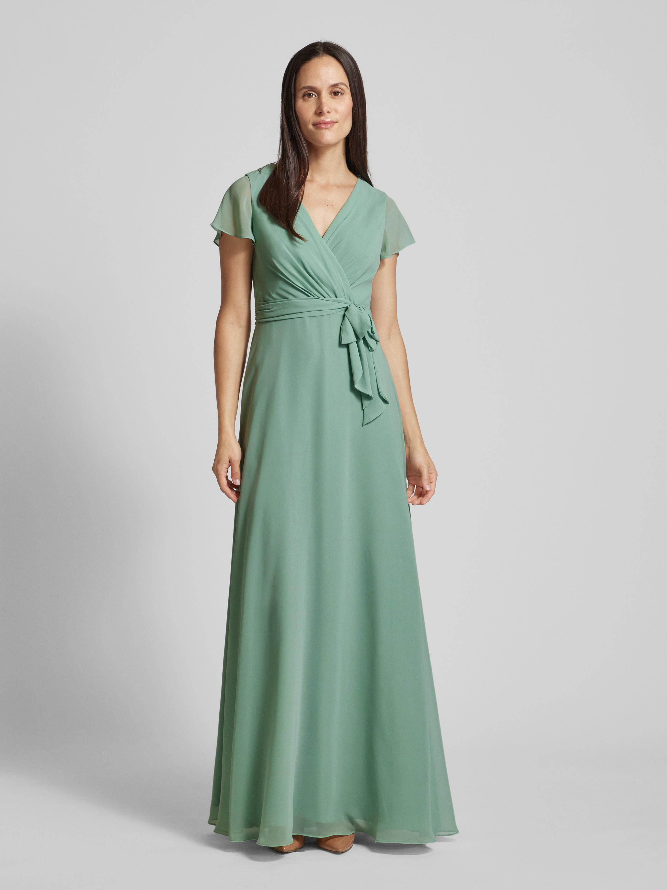 Sukienka wieczorowa w stylu kopertowym - jabłkowozielony