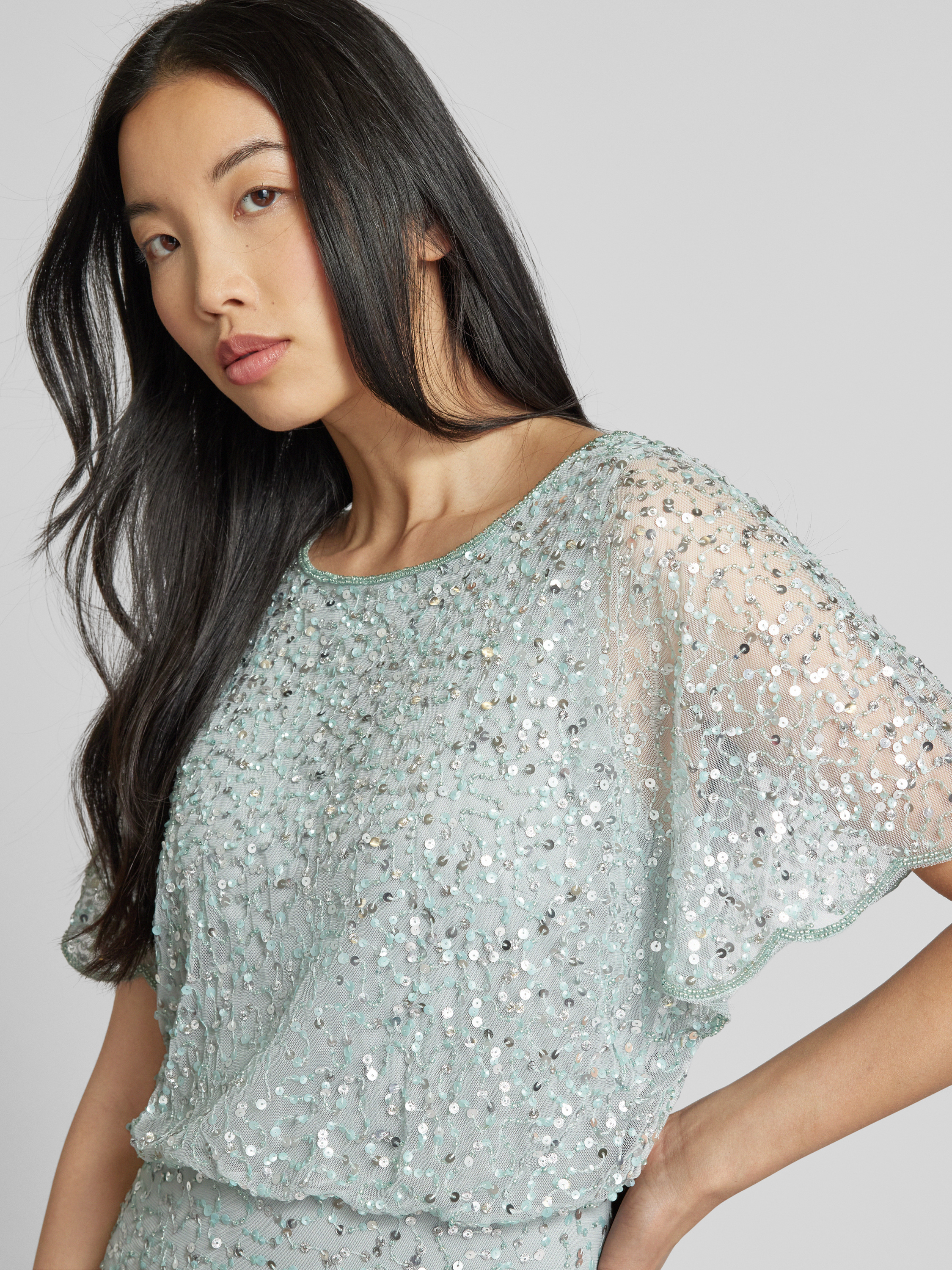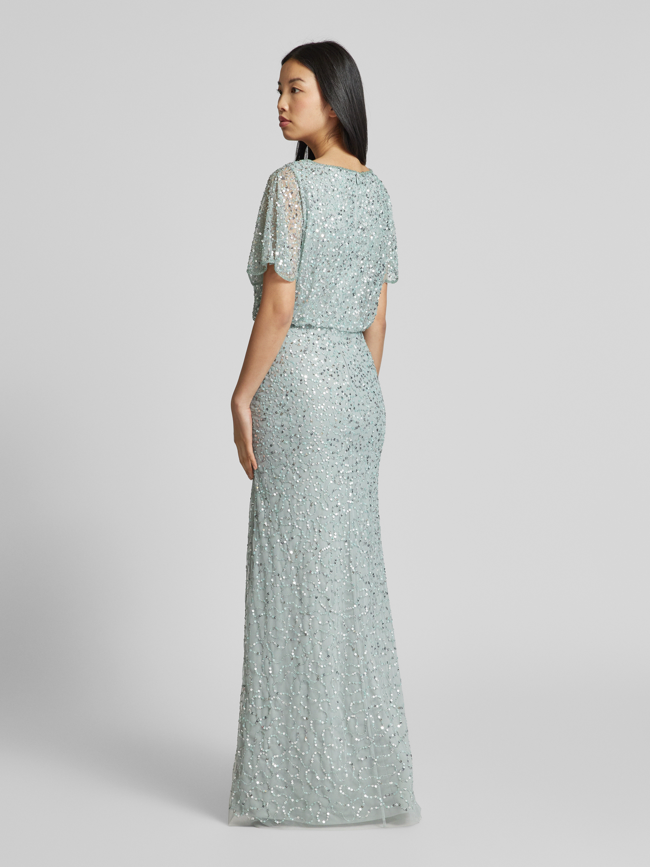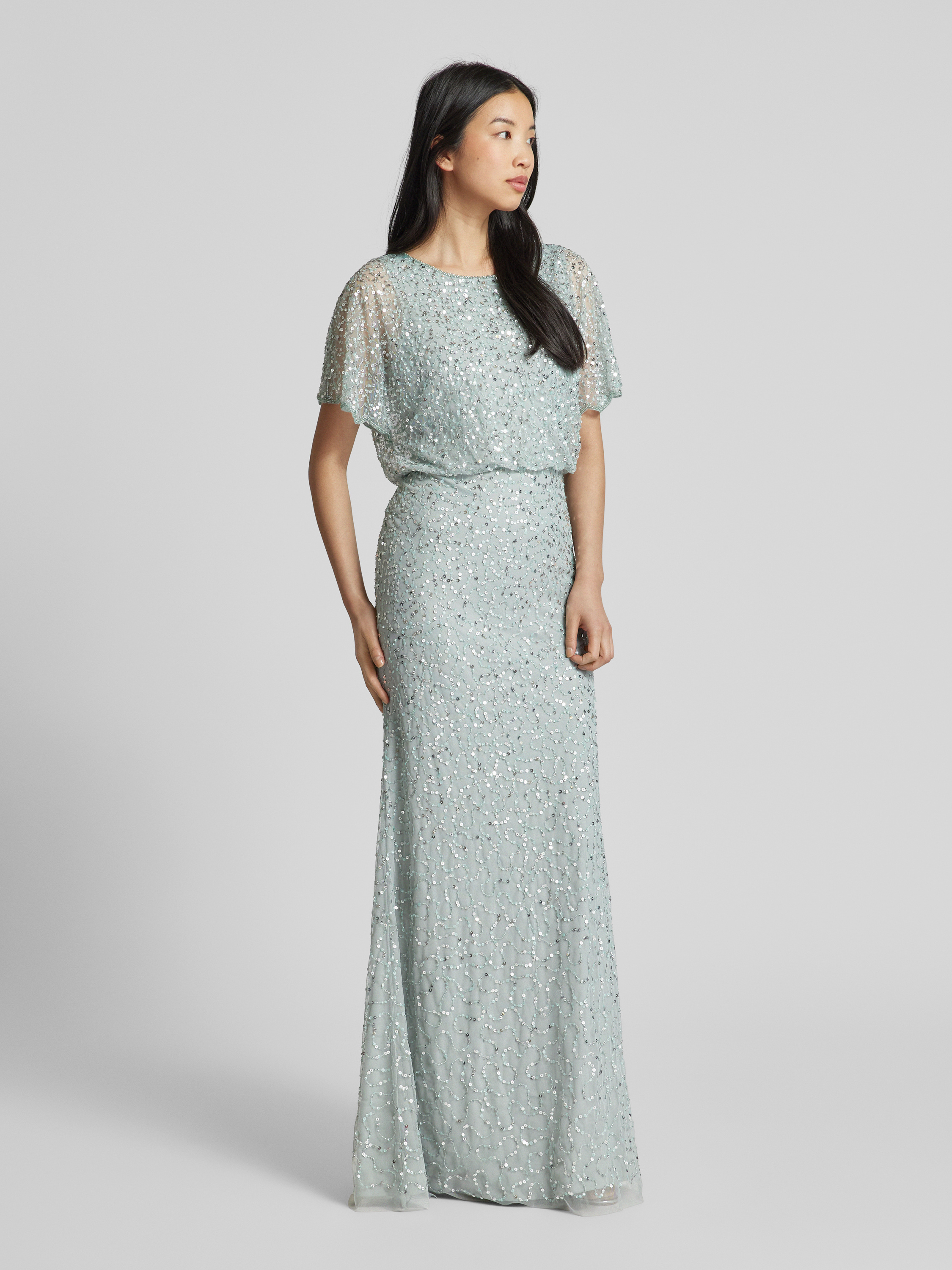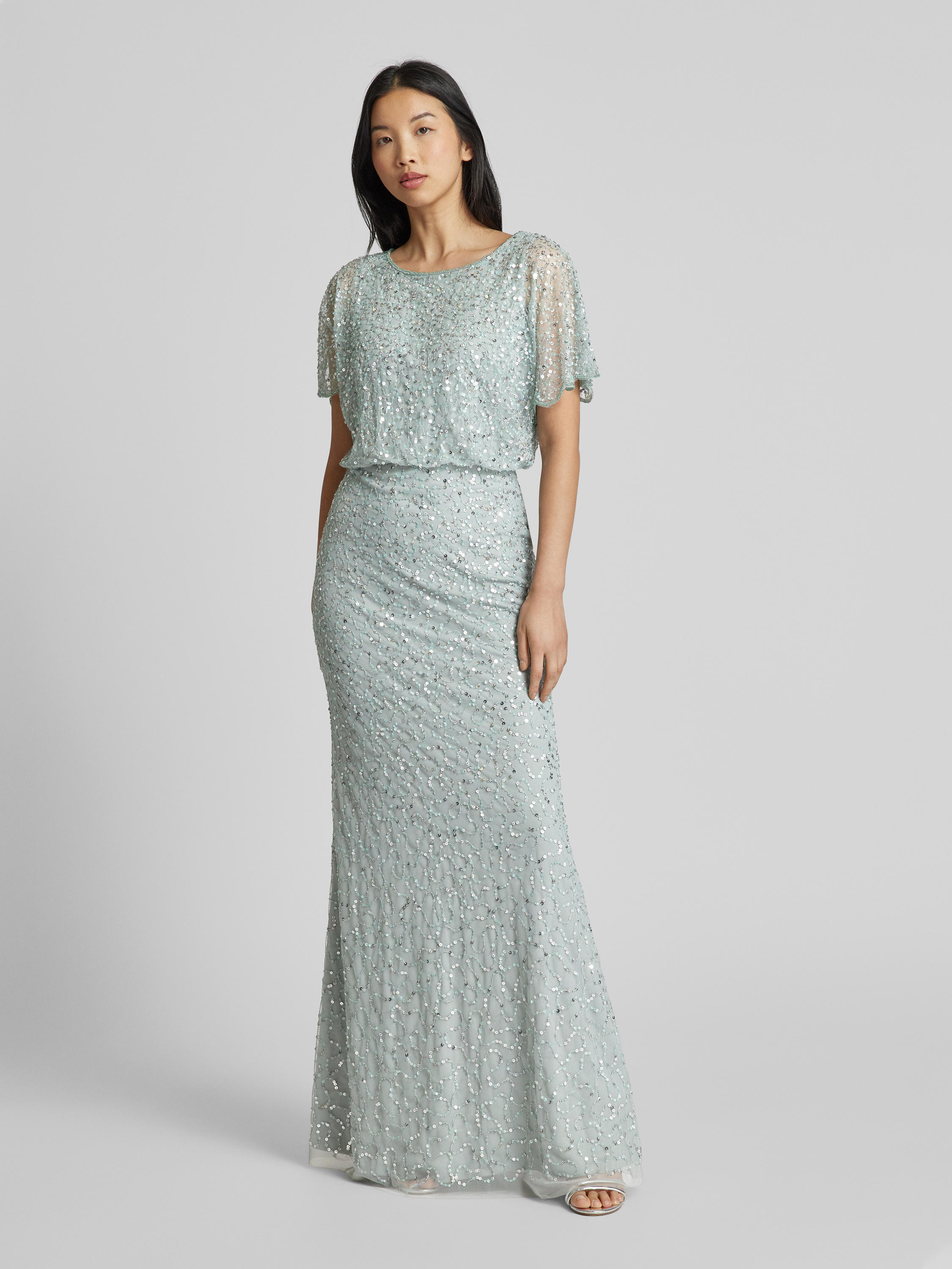 Sukienka wieczorowa z okrągłym dekoltem - trzcinowy