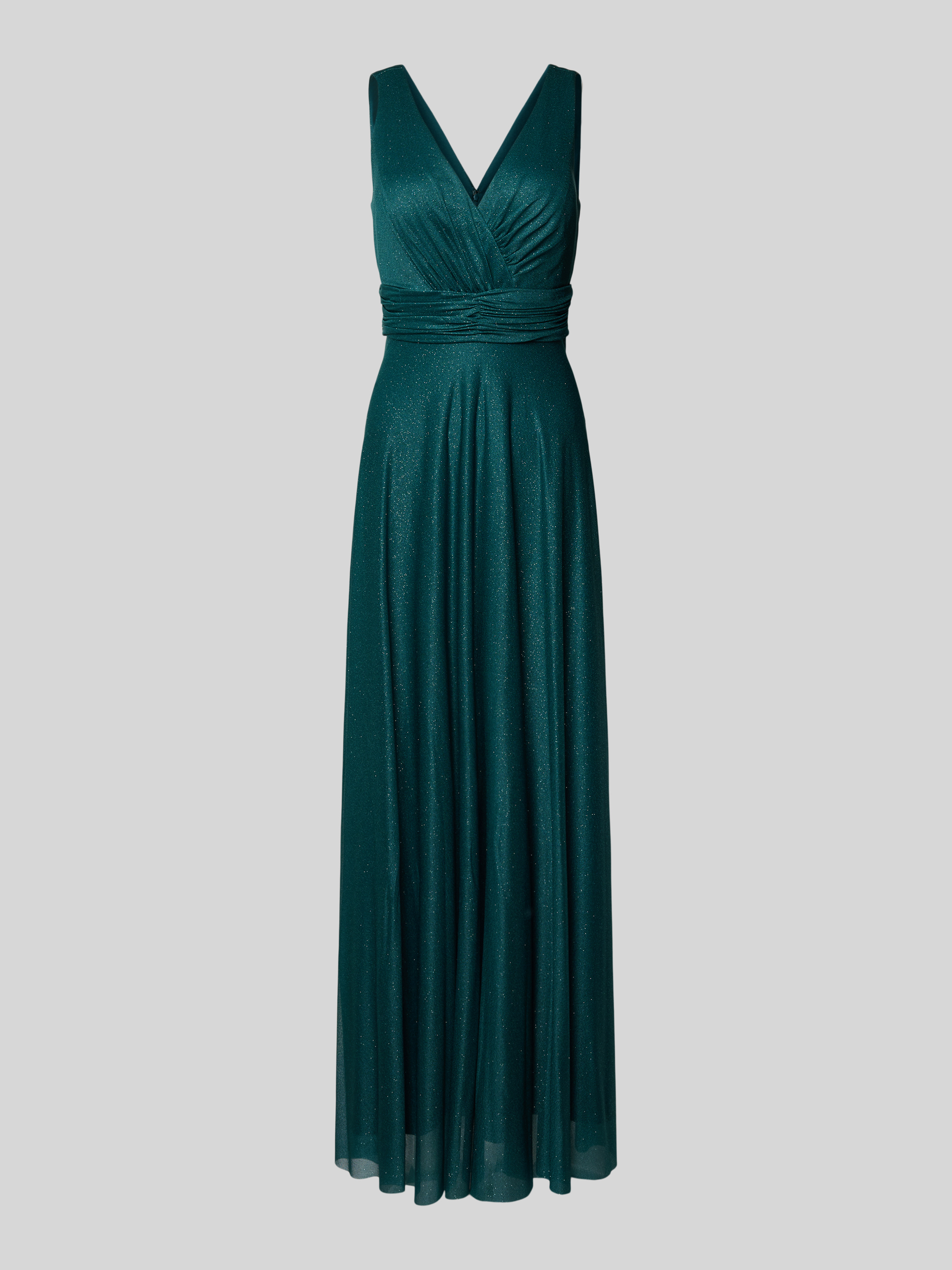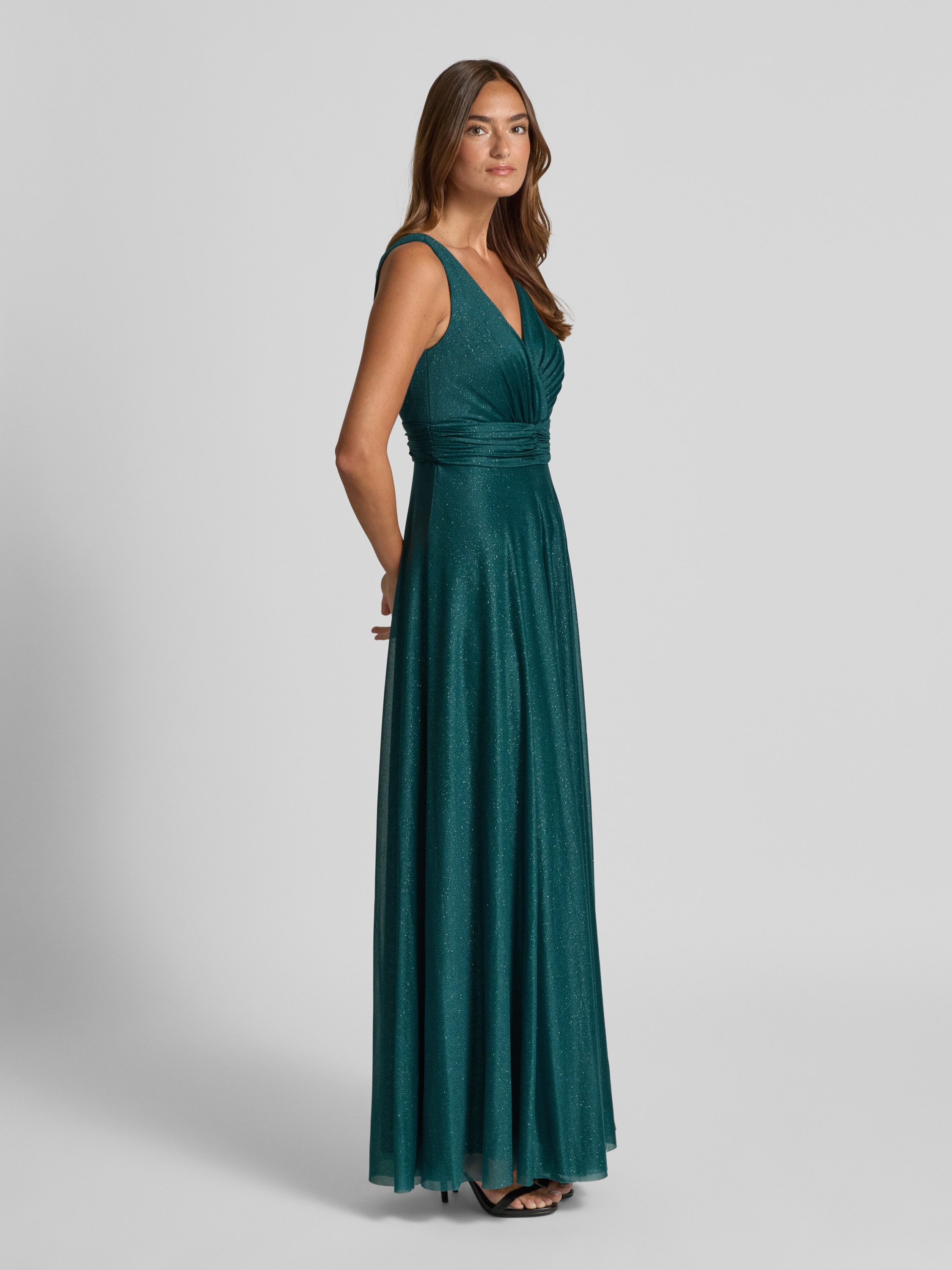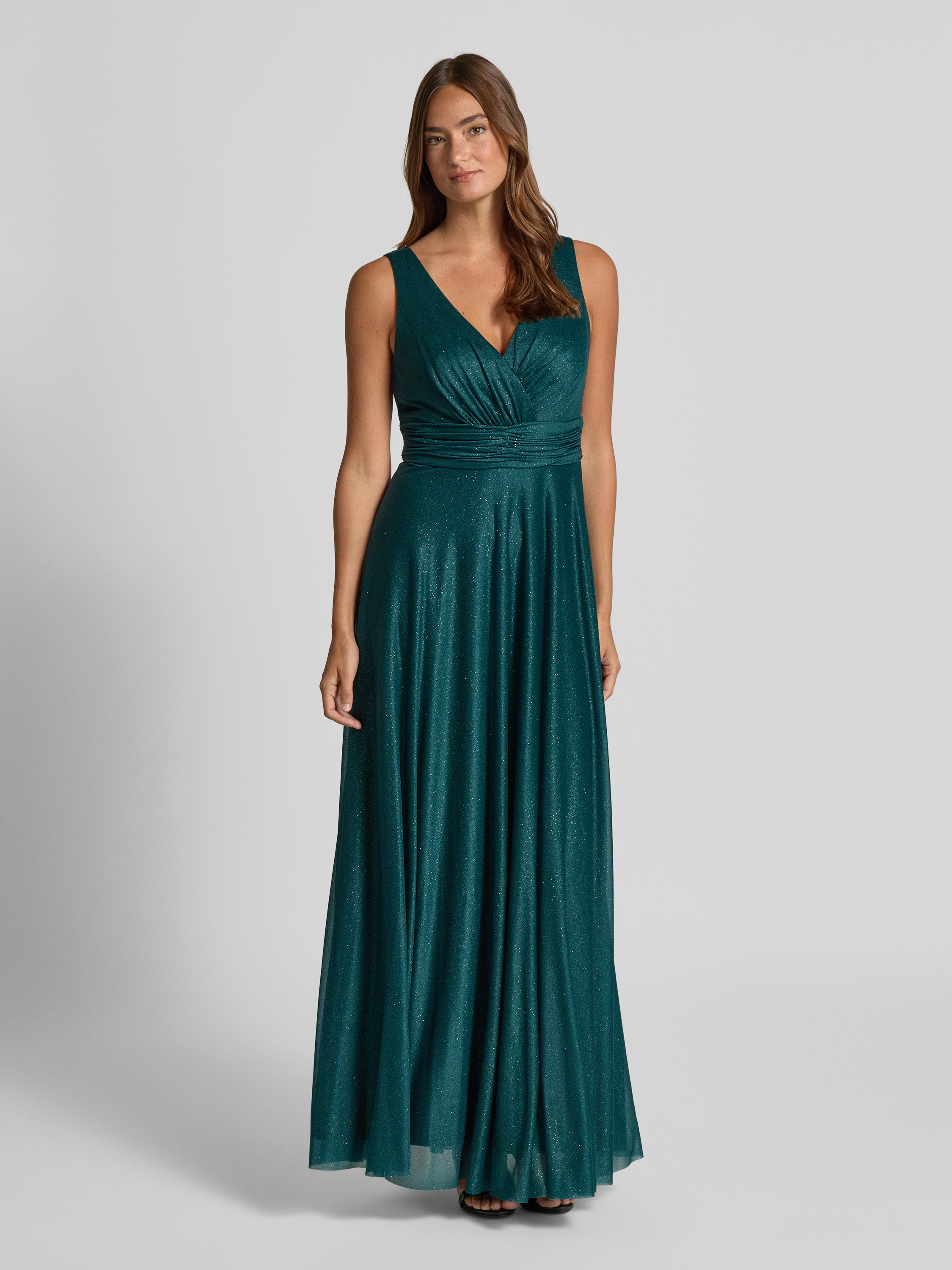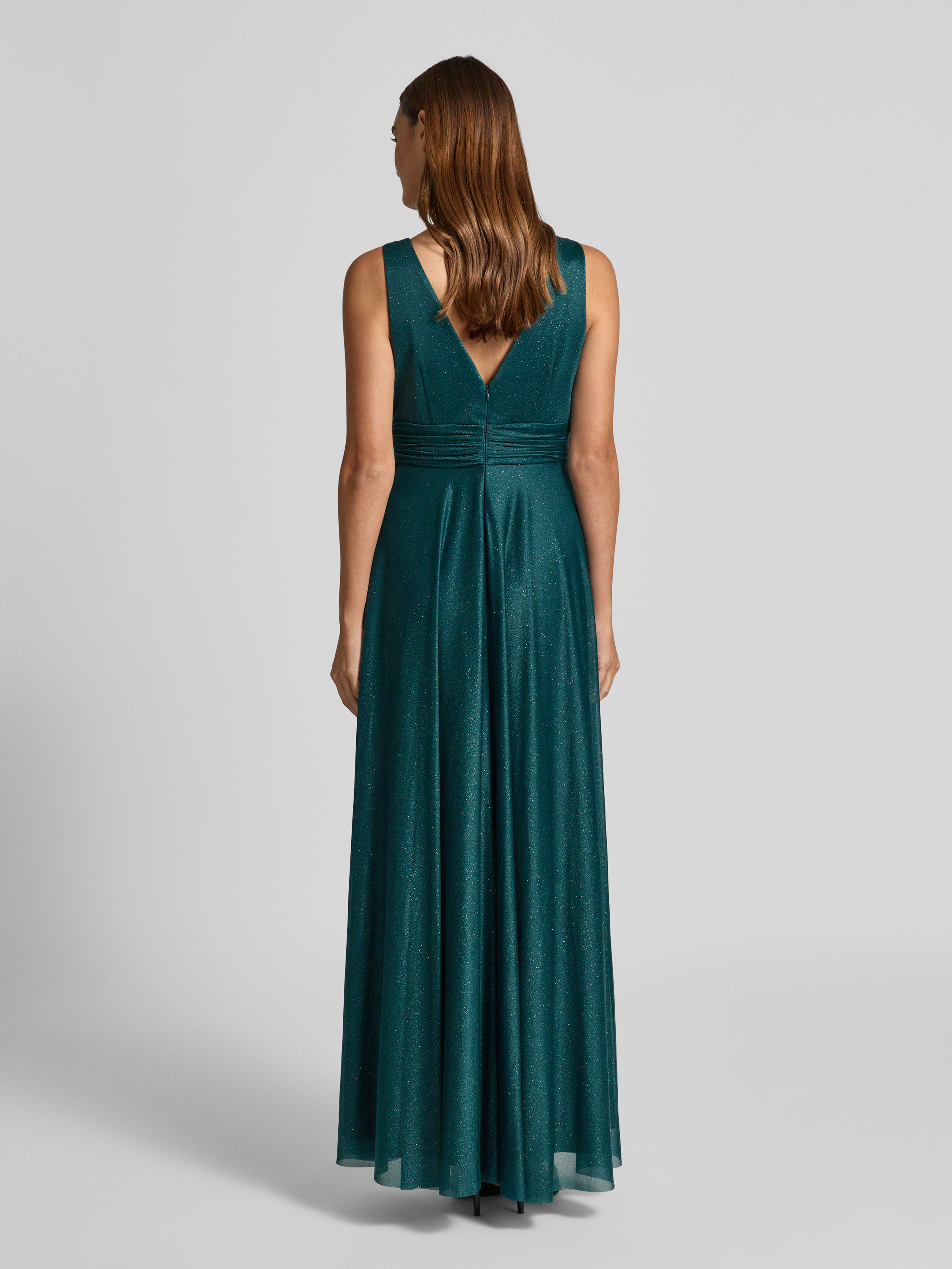 Sukienka wieczorowa z tasiemką w talii - ciemnozielony melanż